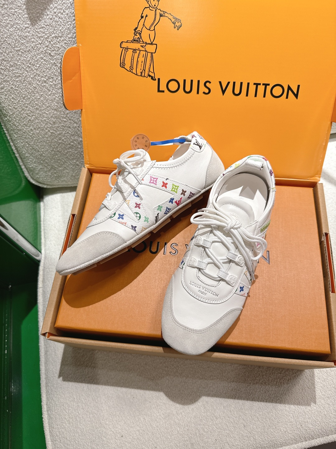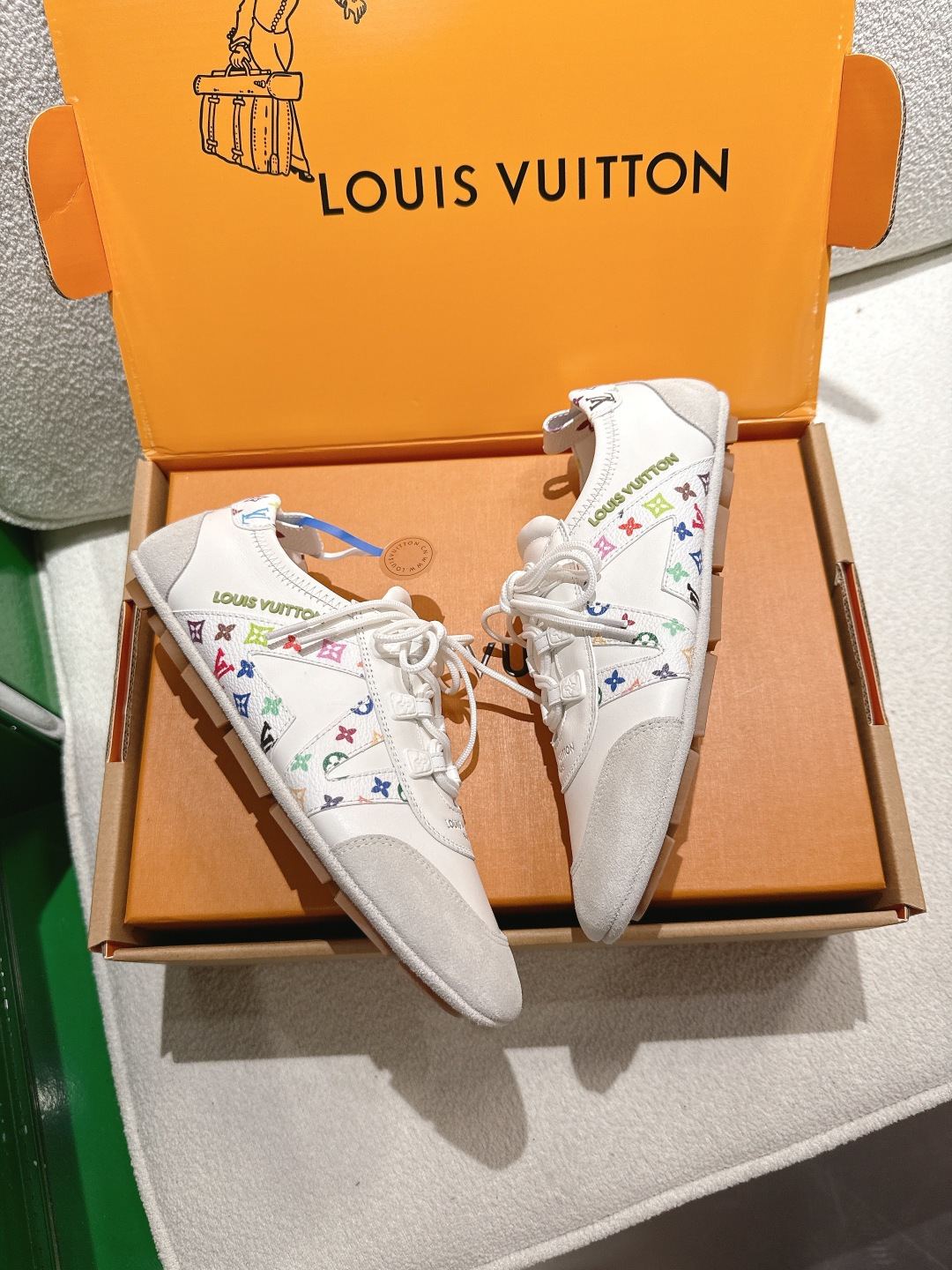 這款鞋子是AAAAA 1:1 質量(非常棒). 使用了和原版一模一樣的材料. 商標部分也保持了和路易威登/Louis Vuitton一樣. 圖片拍攝是實物鞋子拍攝, 您所收到的實物保證和我們圖片一模一樣.