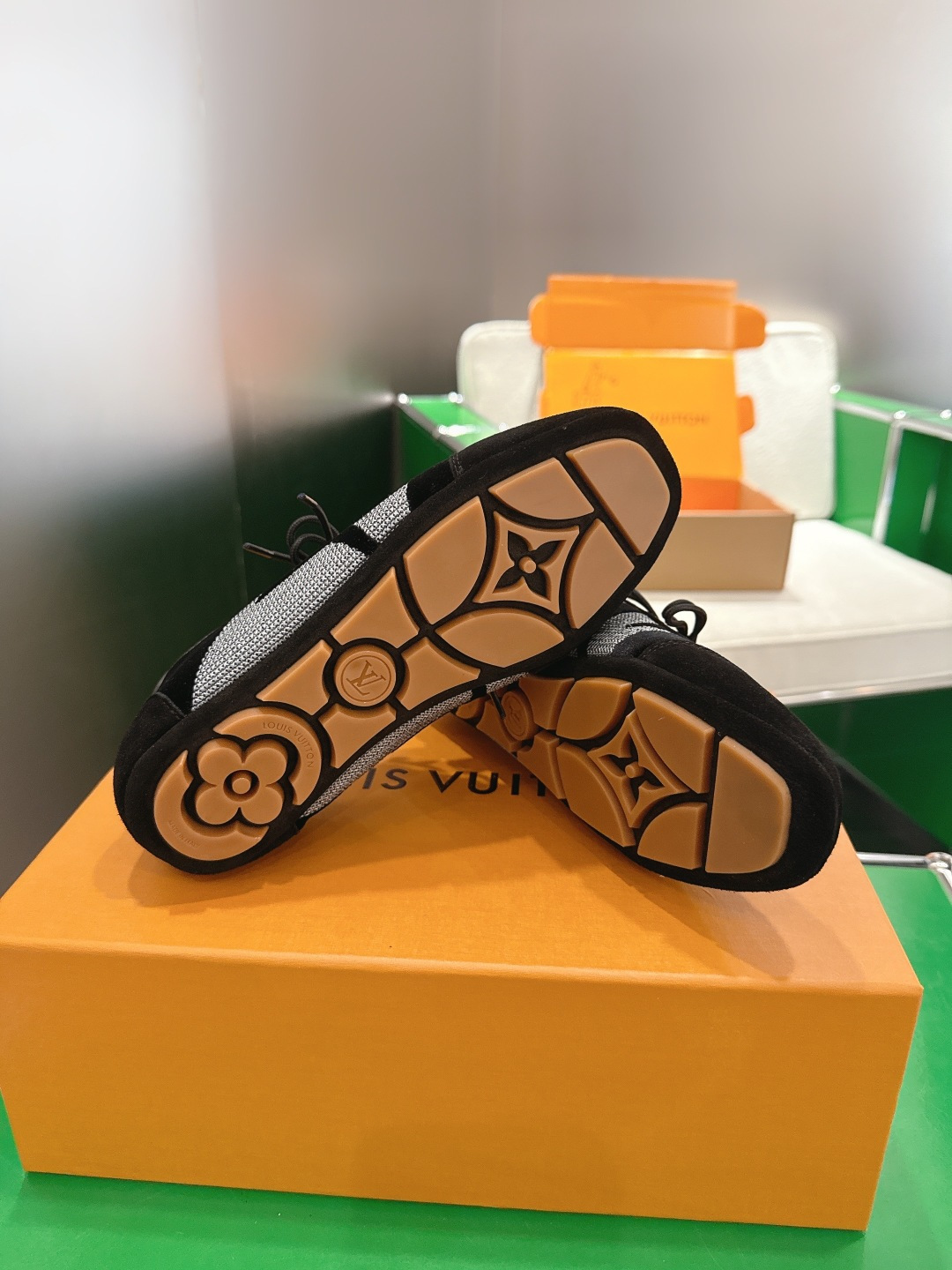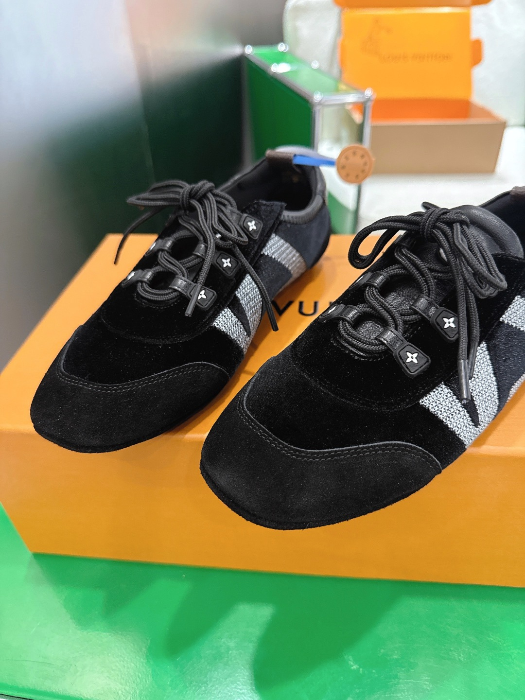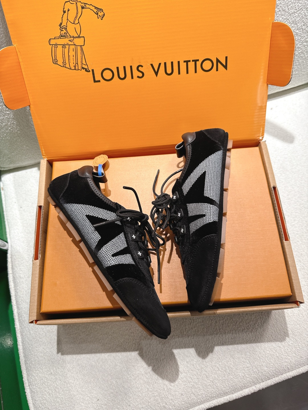這款鞋子是AAAAA 1:1 質量(非常棒). 使用了和原版一模一樣的材料. 商標部分也保持了和路易威登/Louis Vuitton一樣. 圖片拍攝是實物鞋子拍攝, 您所收到的實物保證和我們圖片一模一樣.