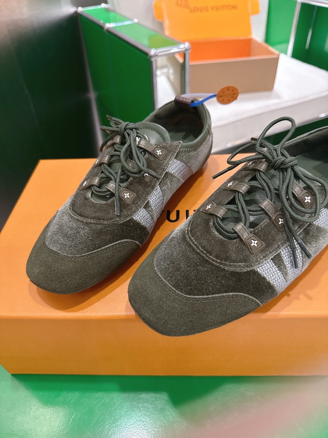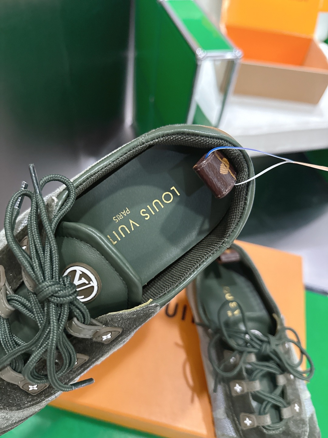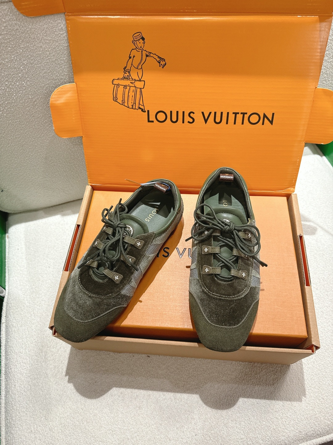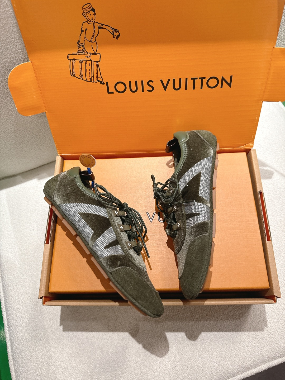 這款鞋子是AAAAA 1:1 質量(非常棒). 使用了和原版一模一樣的材料. 商標部分也保持了和路易威登/Louis Vuitton一樣. 圖片拍攝是實物鞋子拍攝, 您所收到的實物保證和我們圖片一模一樣.