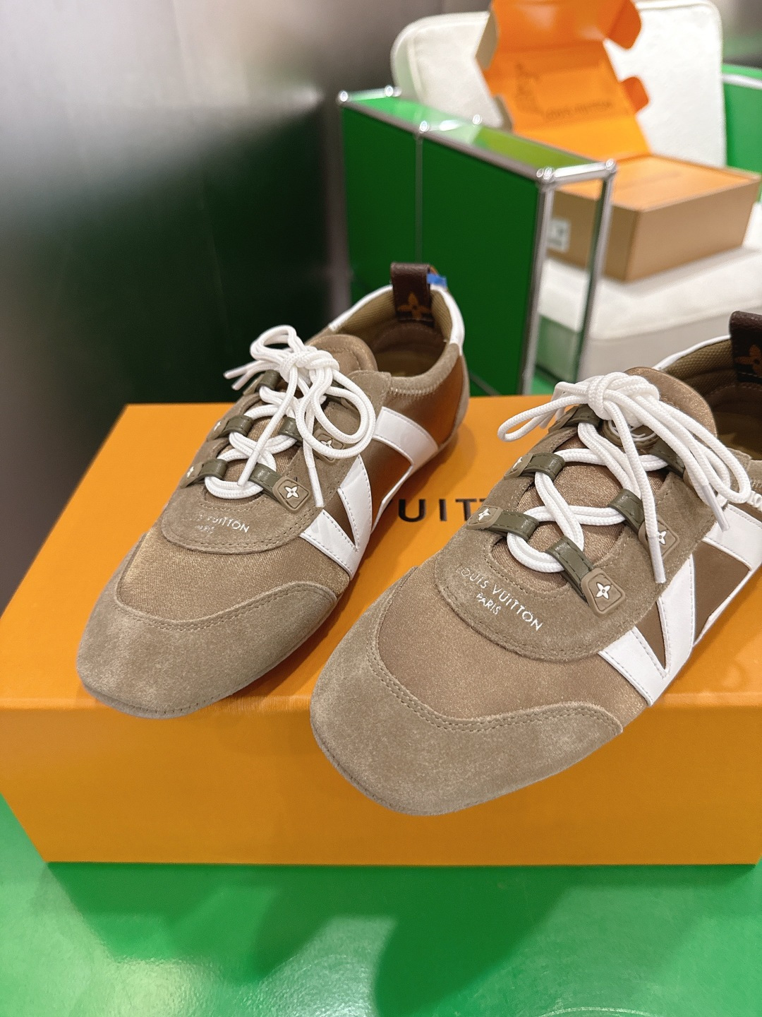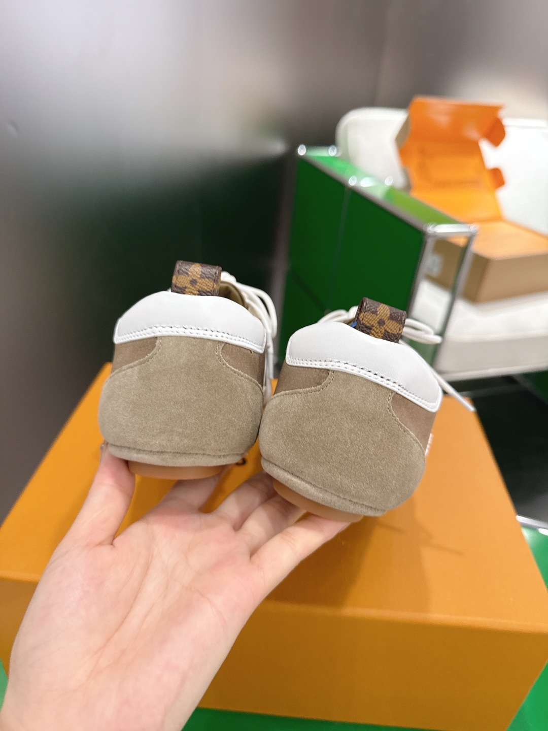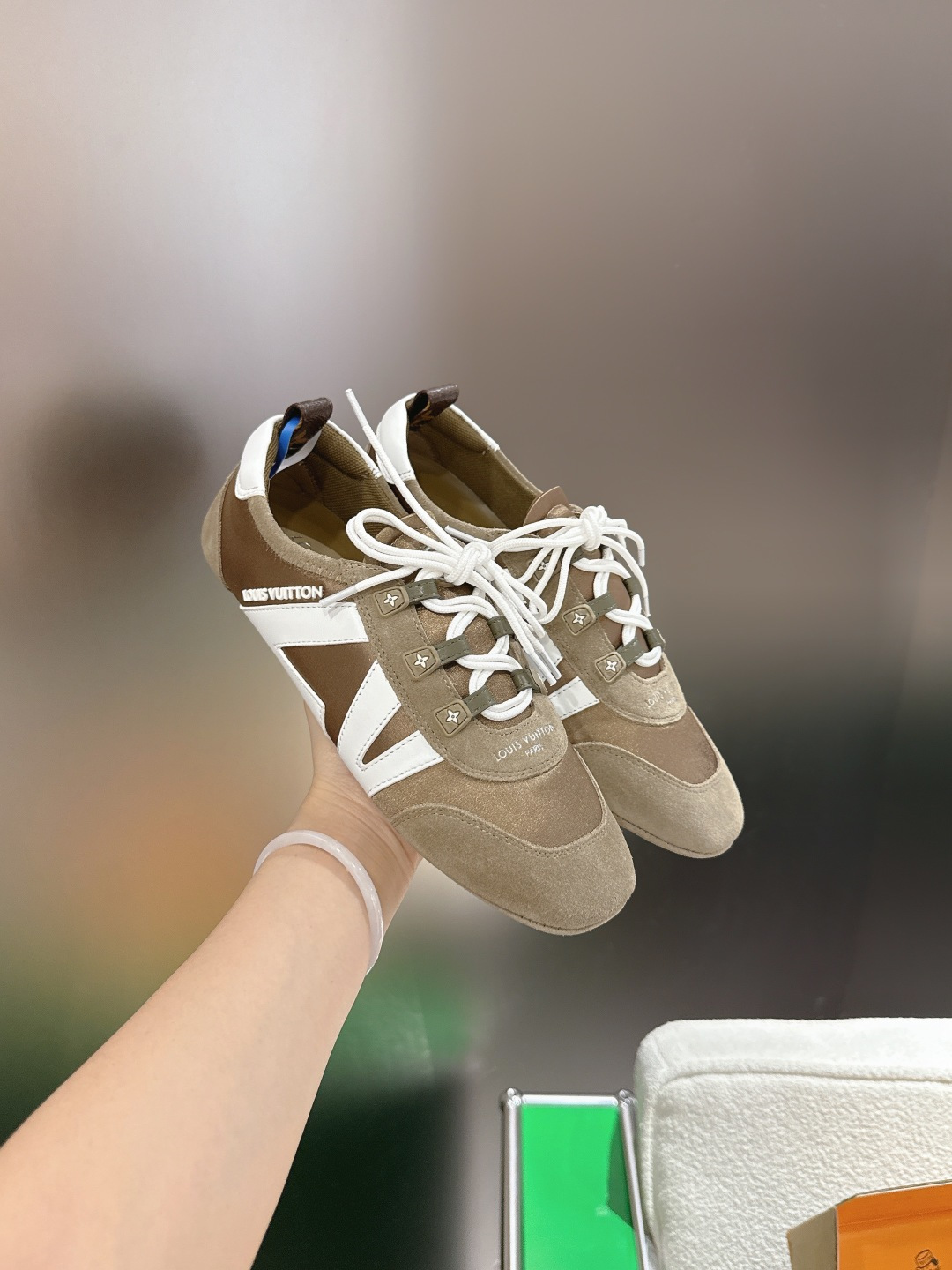 這款鞋子是AAAAA 1:1 質量(非常棒). 使用了和原版一模一樣的材料. 商標部分也保持了和路易威登/Louis Vuitton一樣. 圖片拍攝是實物鞋子拍攝, 您所收到的實物保證和我們圖片一模一樣.