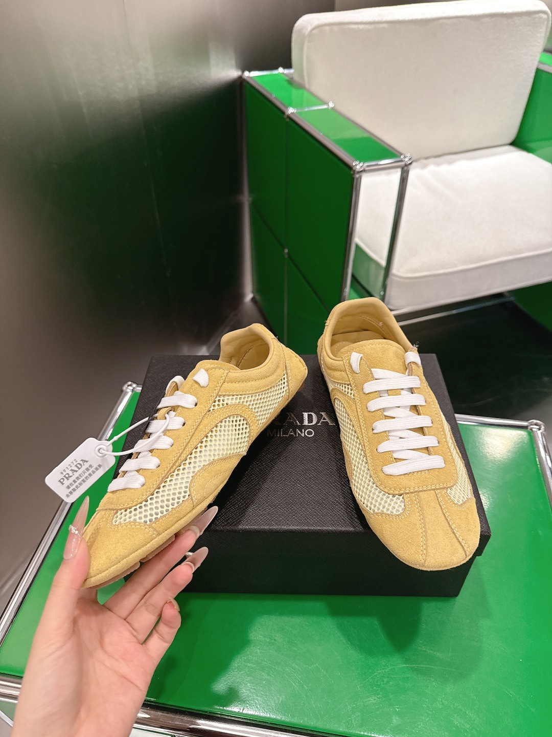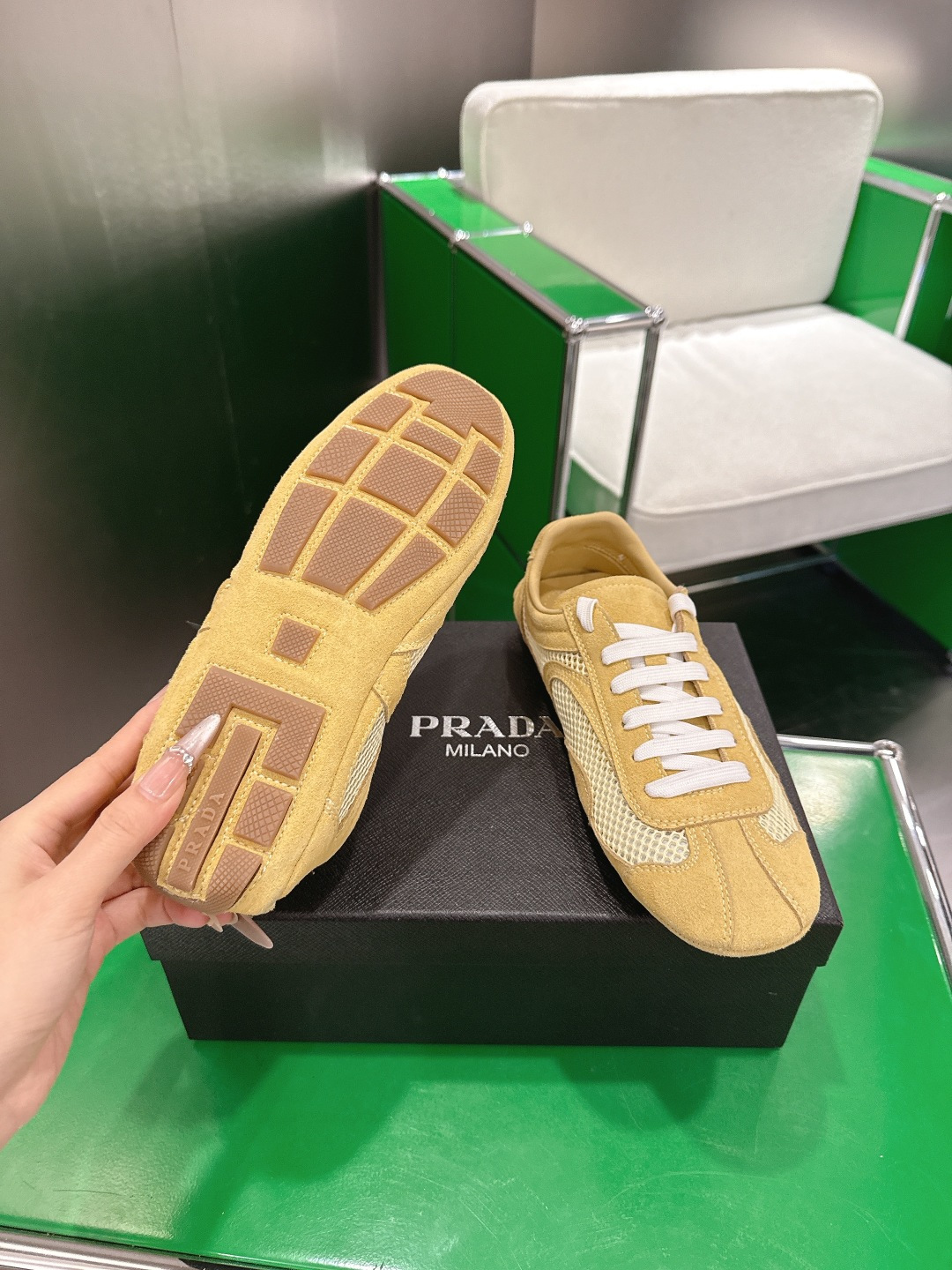這款鞋子是AAAAA 1:1 質量(非常棒). 使用了和原版一模一樣的材料. 商標部分也保持了和普拉達/Prada一樣. 圖片拍攝是實物鞋子拍攝, 您所收到的實物保證和我們圖片一模一樣.