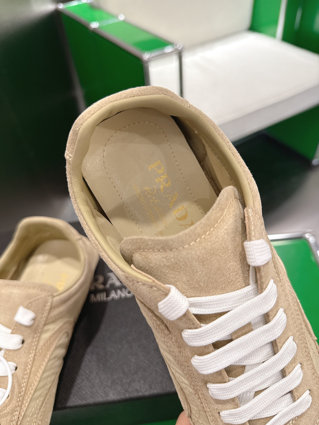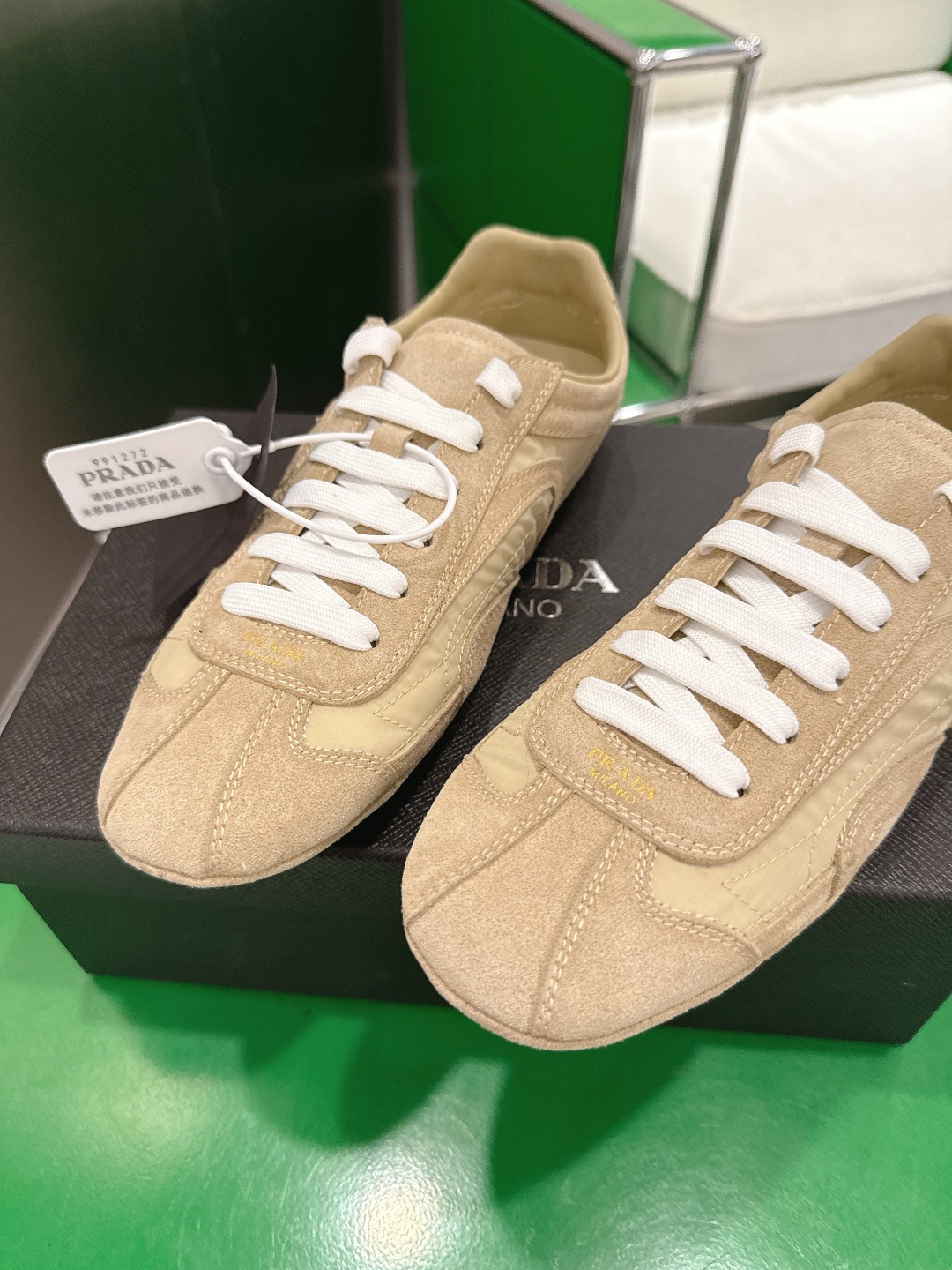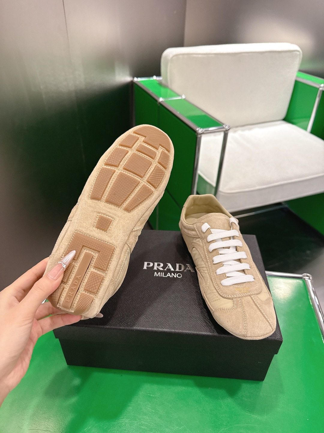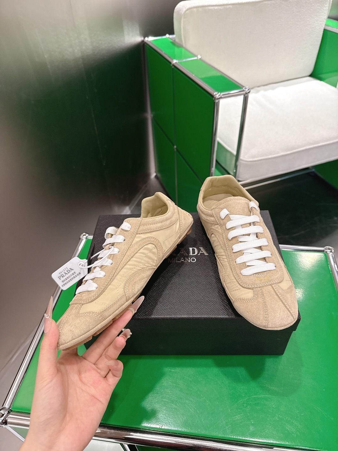 這款鞋子是AAAAA 1:1 質量(非常棒). 使用了和原版一模一樣的材料. 商標部分也保持了和普拉達/Prada一樣. 圖片拍攝是實物鞋子拍攝, 您所收到的實物保證和我們圖片一模一樣.