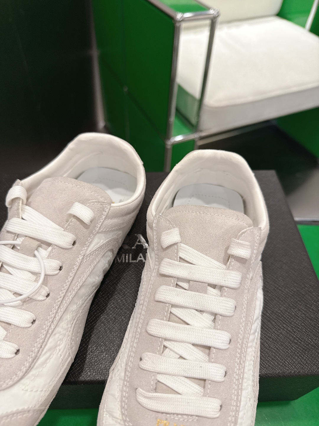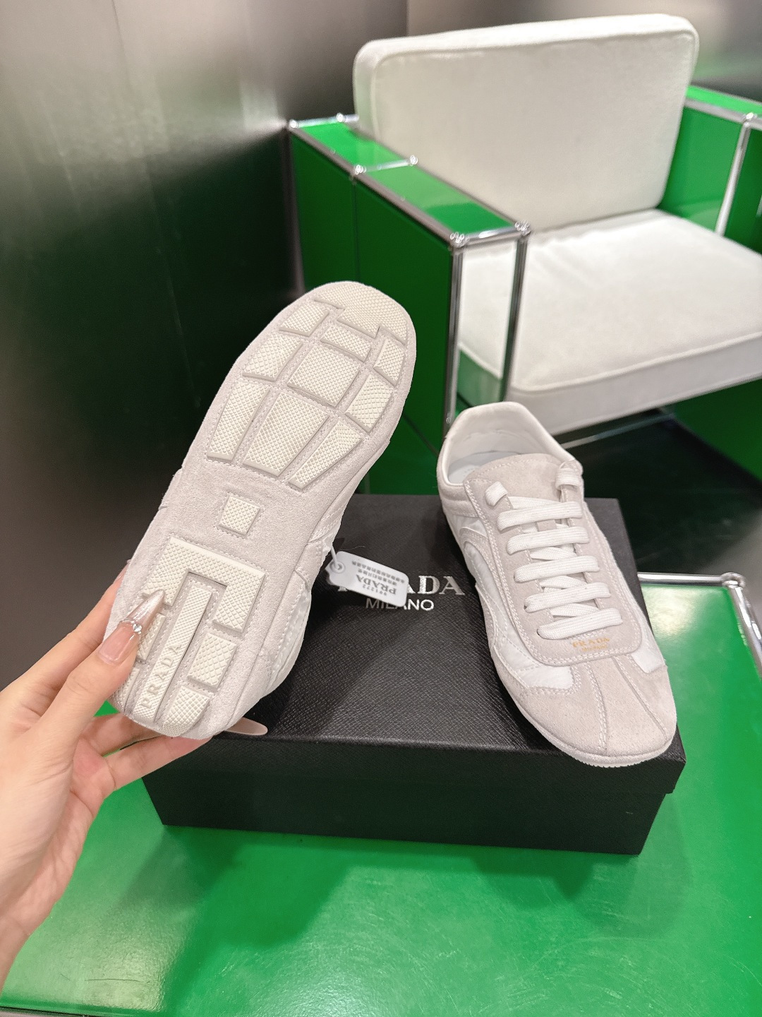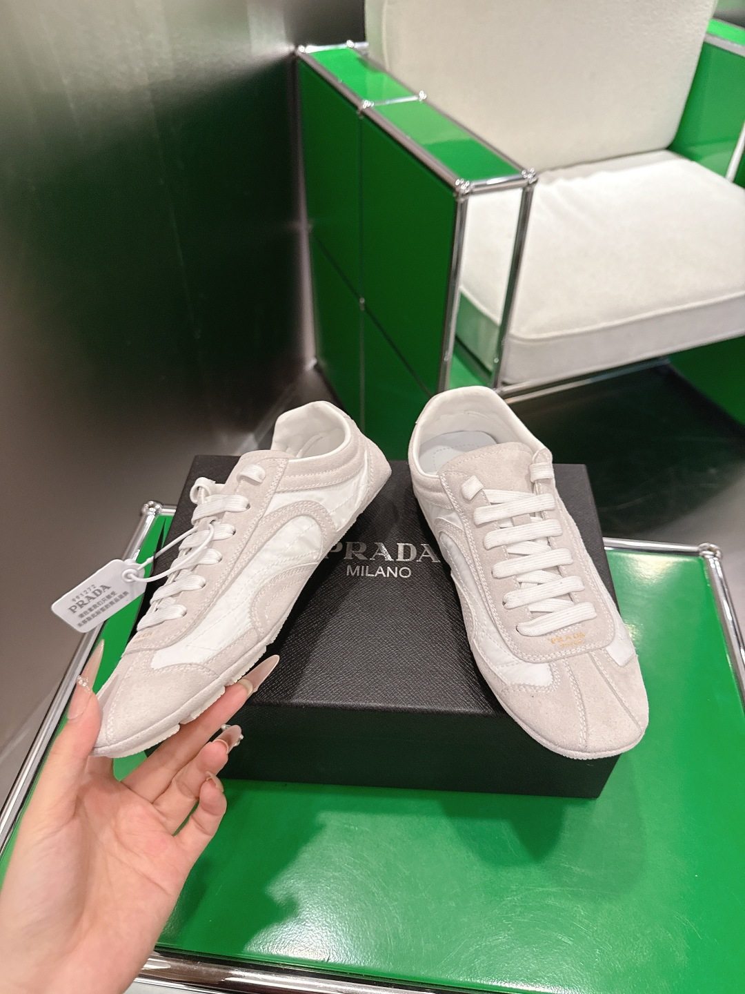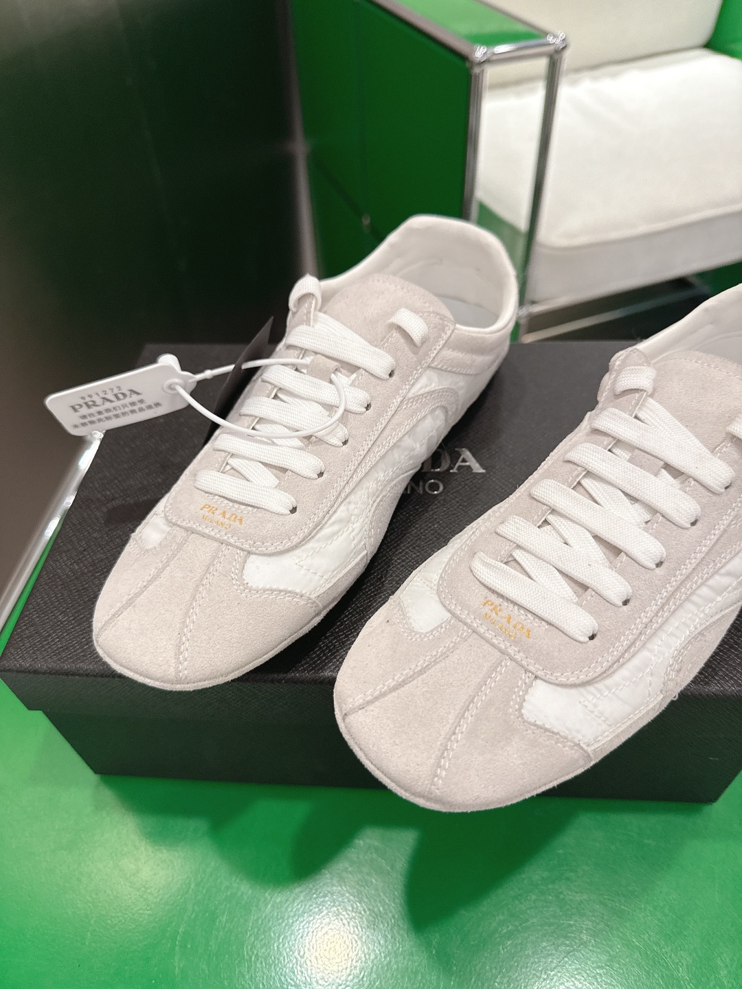 這款鞋子是AAAAA 1:1 質量(非常棒). 使用了和原版一模一樣的材料. 商標部分也保持了和普拉達/Prada一樣. 圖片拍攝是實物鞋子拍攝, 您所收到的實物保證和我們圖片一模一樣.