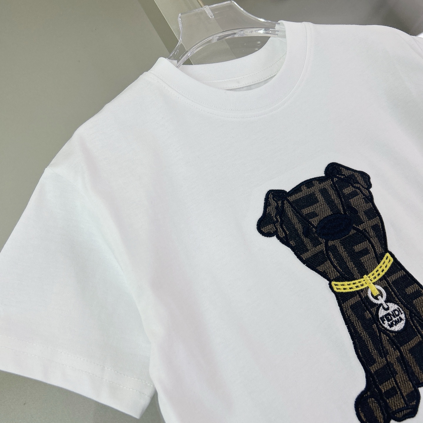 這款children's clothes是AAAAA 1:1 質量(非常棒). 使用了和原版一模一樣的材料. 商標部分也保持了和芬迪/Fendi一樣. 圖片拍攝是實物children's clothes拍攝, 您所收到的實物保證和我們圖片一模一樣.