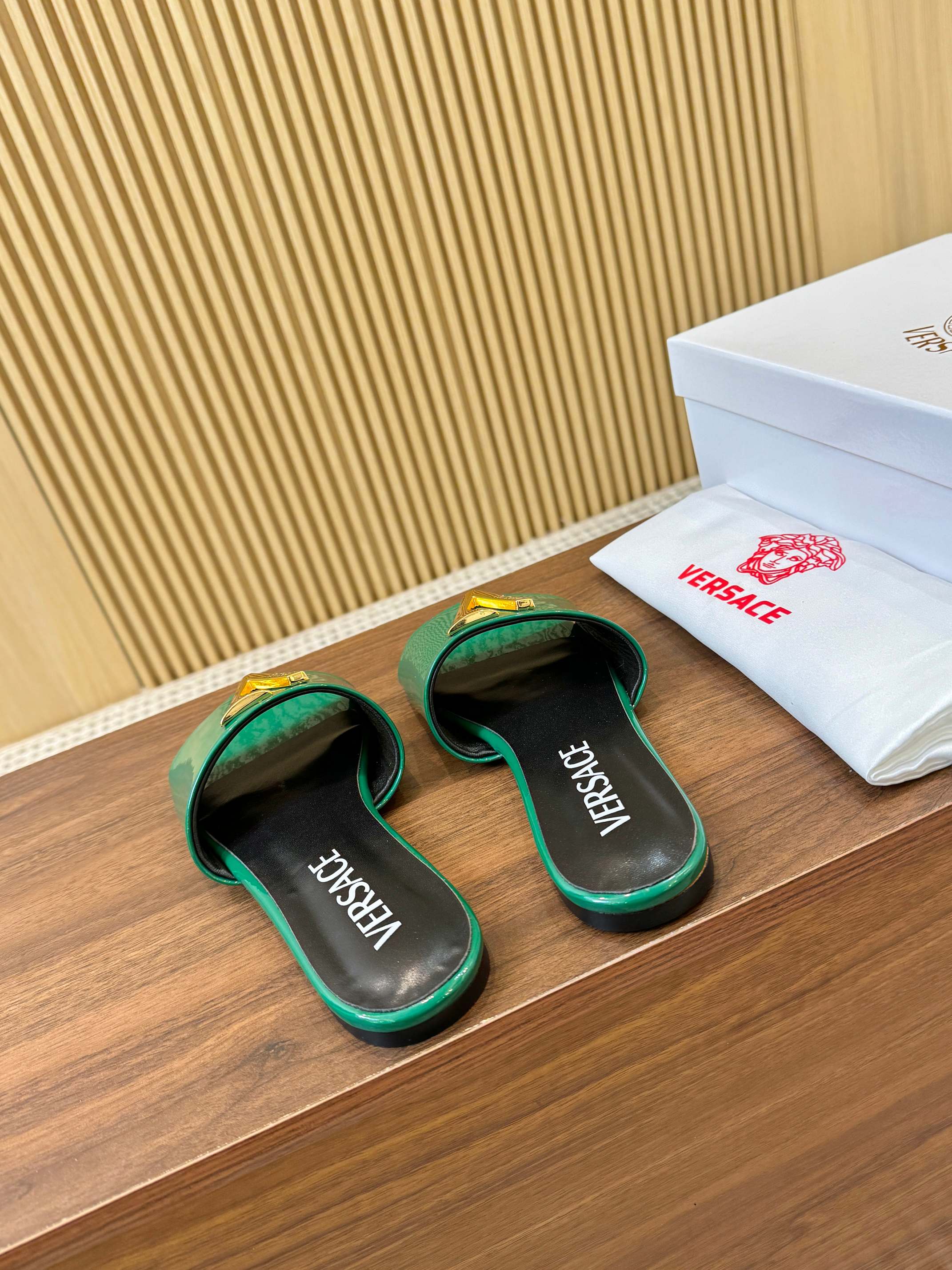 這款鞋子是AAAAA 1:1 質量(非常棒). 使用了和原版一模一樣的材料. 商標部分也保持了和范思哲/Versace一樣. 圖片拍攝是實物鞋子拍攝, 您所收到的實物保證和我們圖片一模一樣.