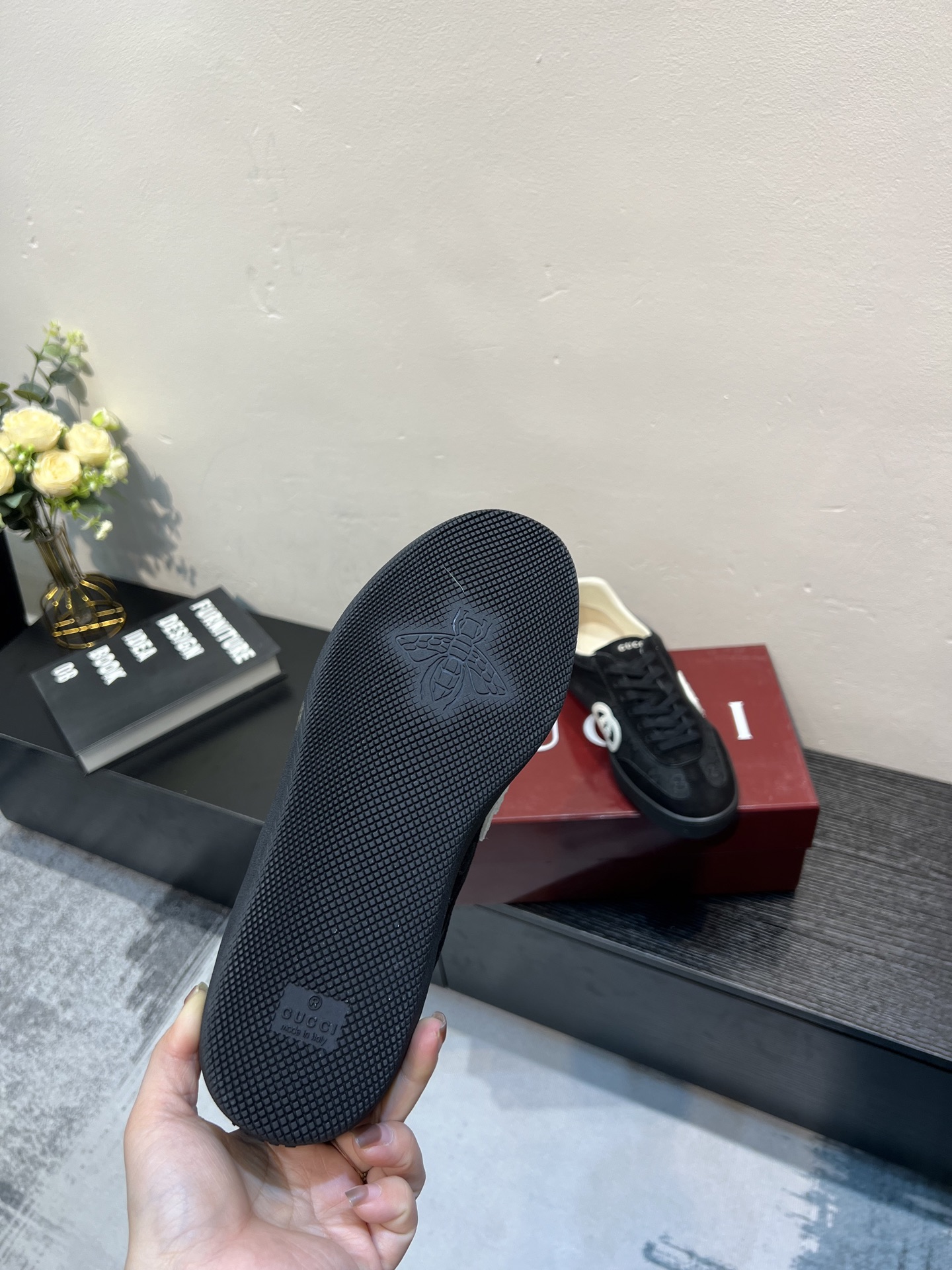 這款鞋子是AAAAA 1:1 質量(非常棒). 使用了和原版一模一樣的材料. 商標部分也保持了和古奇/Gucci一樣. 圖片拍攝是實物鞋子拍攝, 您所收到的實物保證和我們圖片一模一樣.