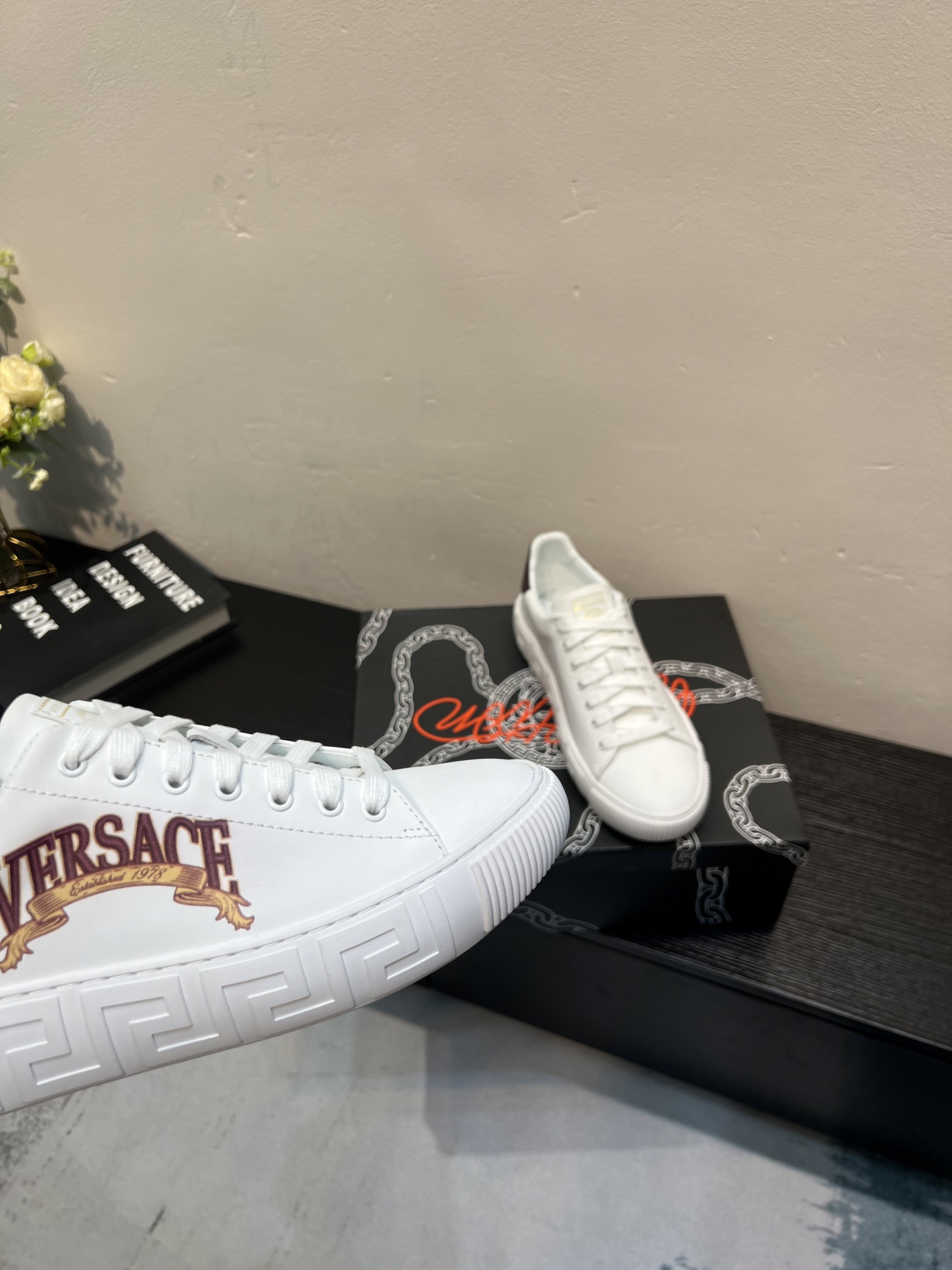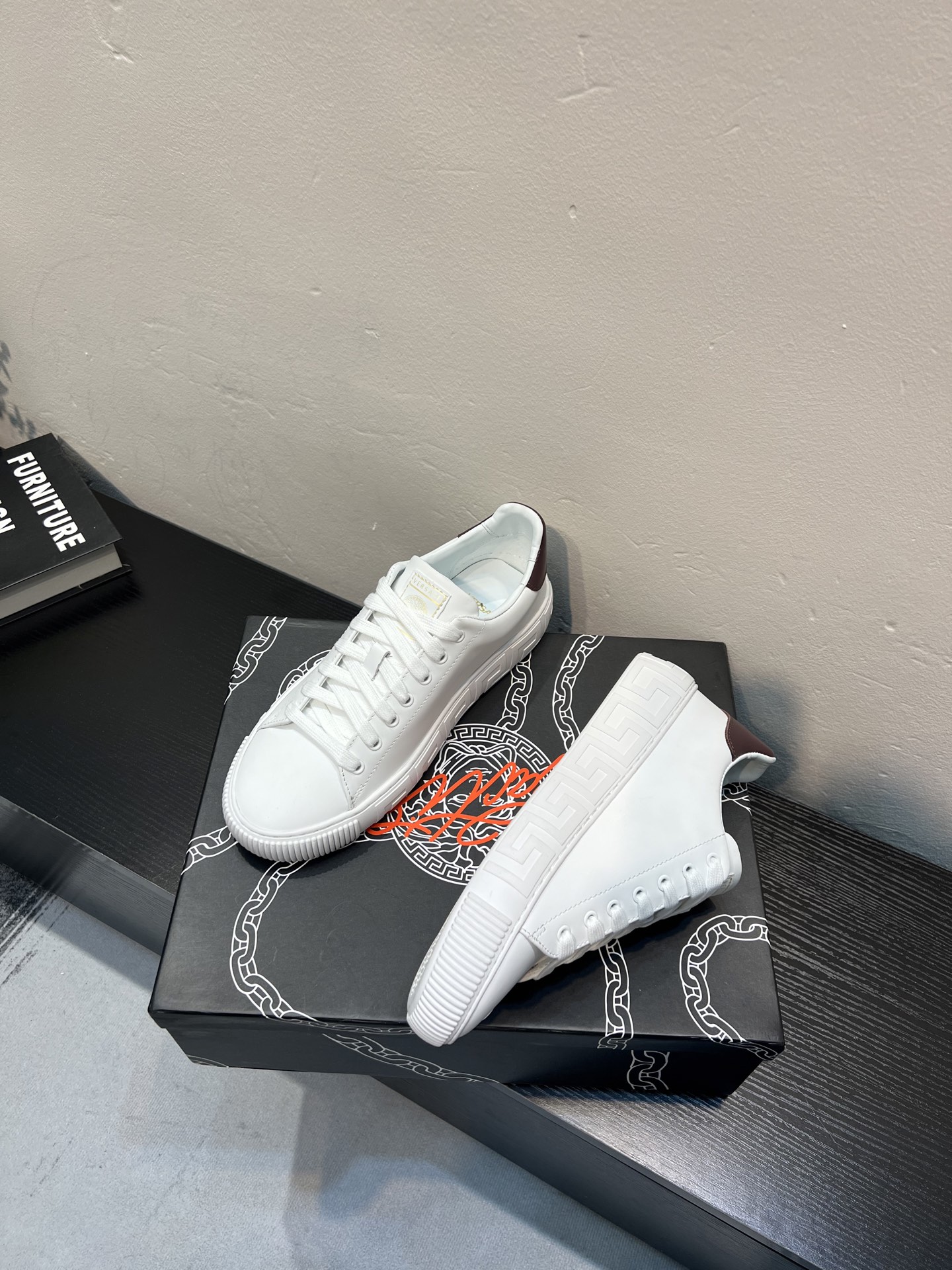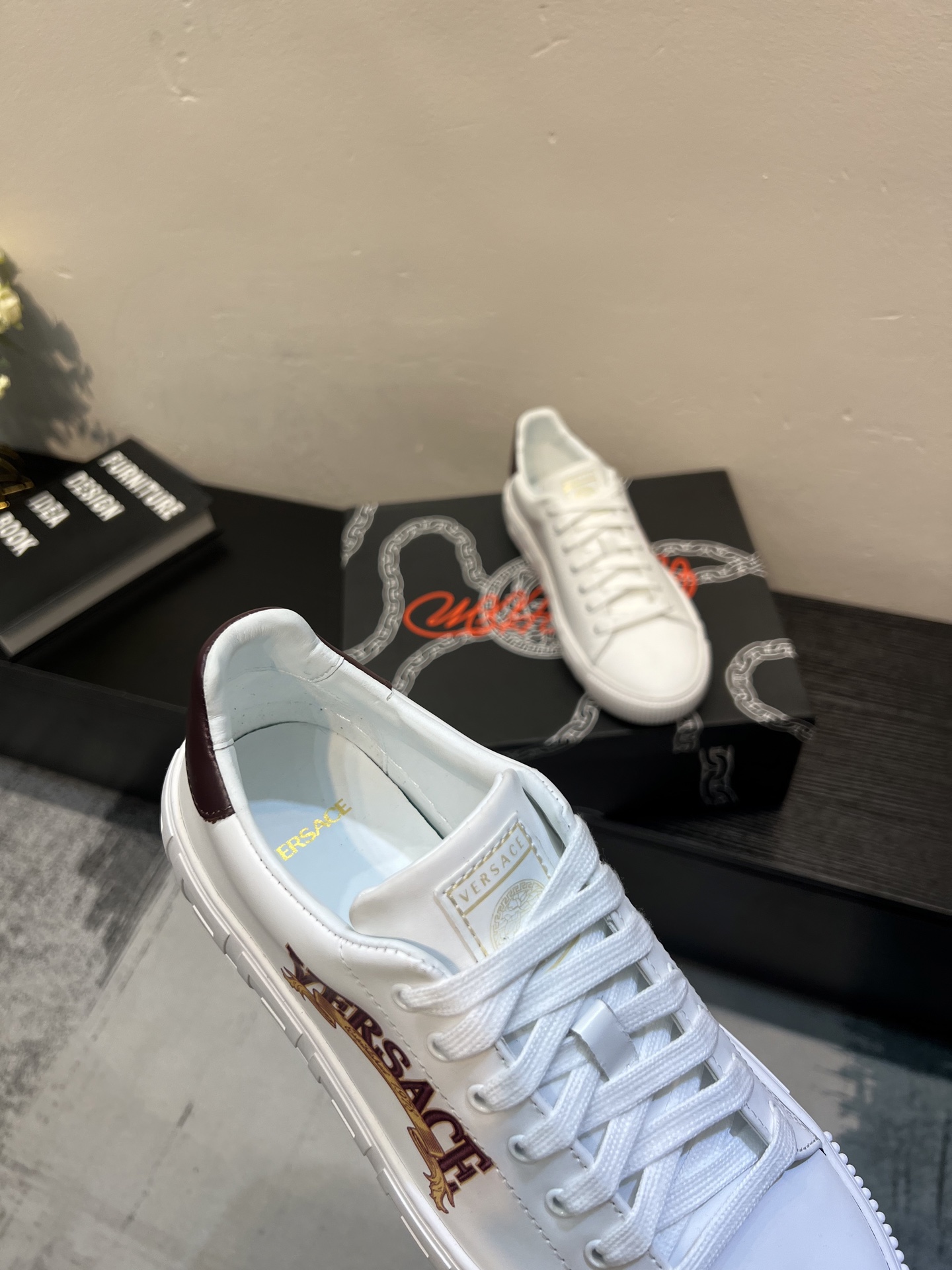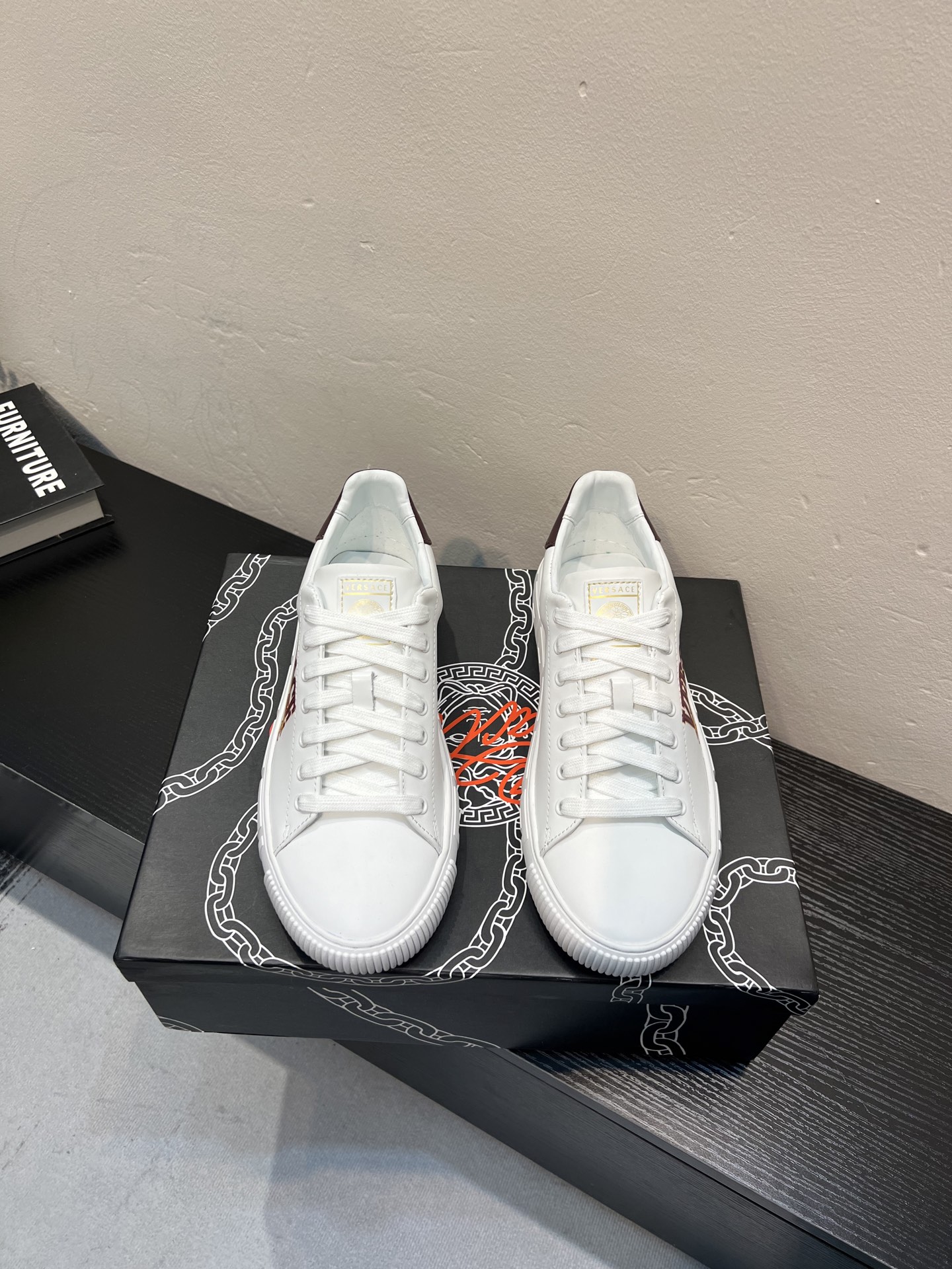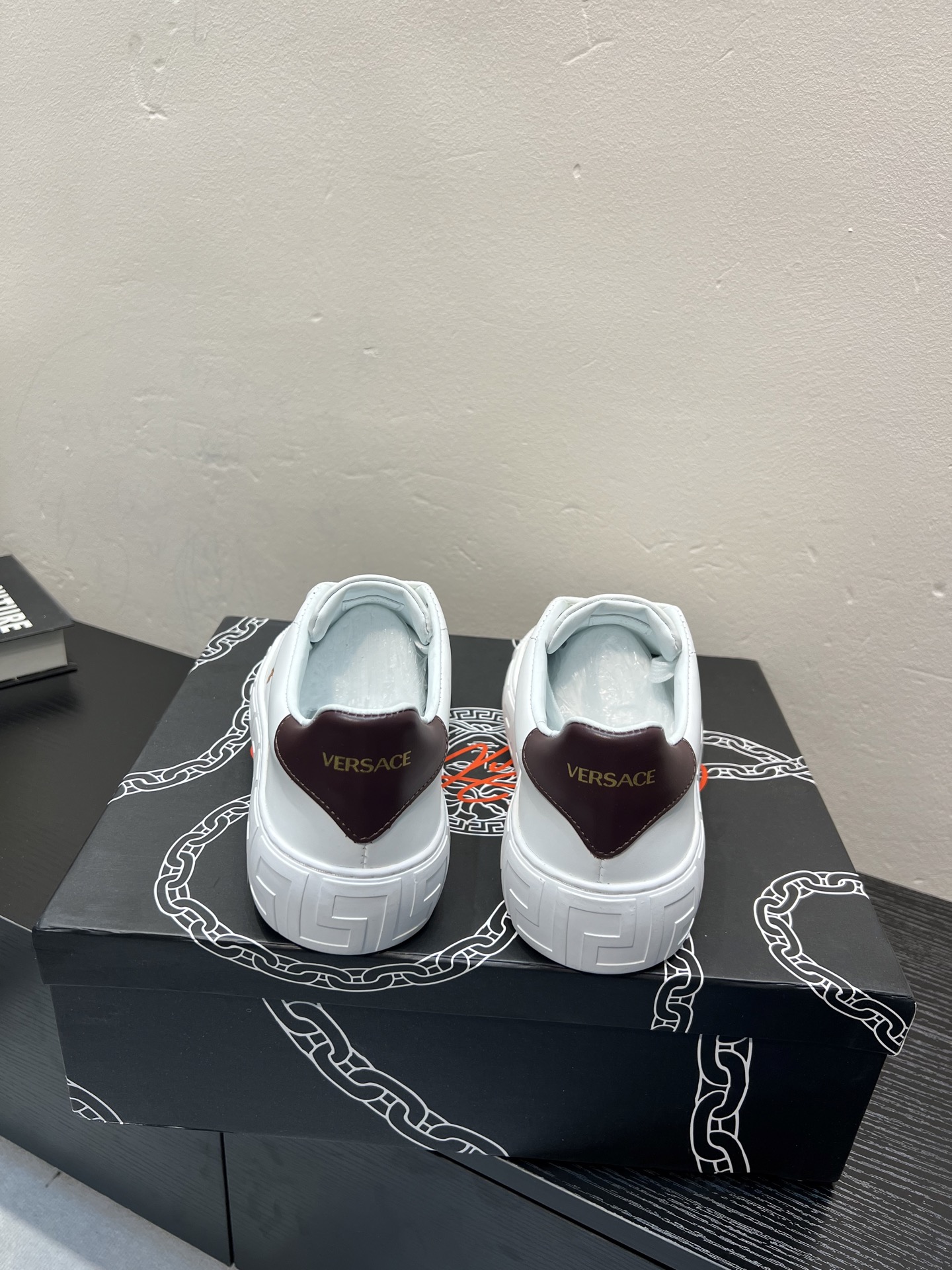 這款鞋子是AAAAA 1:1 質量(非常棒). 使用了和原版一模一樣的材料. 商標部分也保持了和范思哲/Versace一樣. 圖片拍攝是實物鞋子拍攝, 您所收到的實物保證和我們圖片一模一樣.