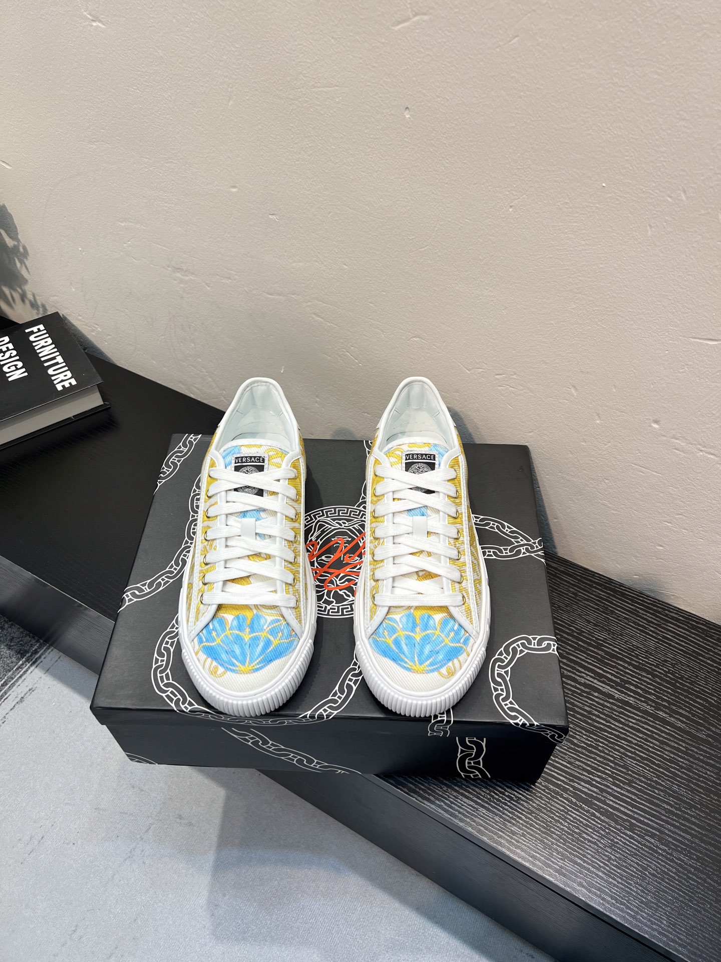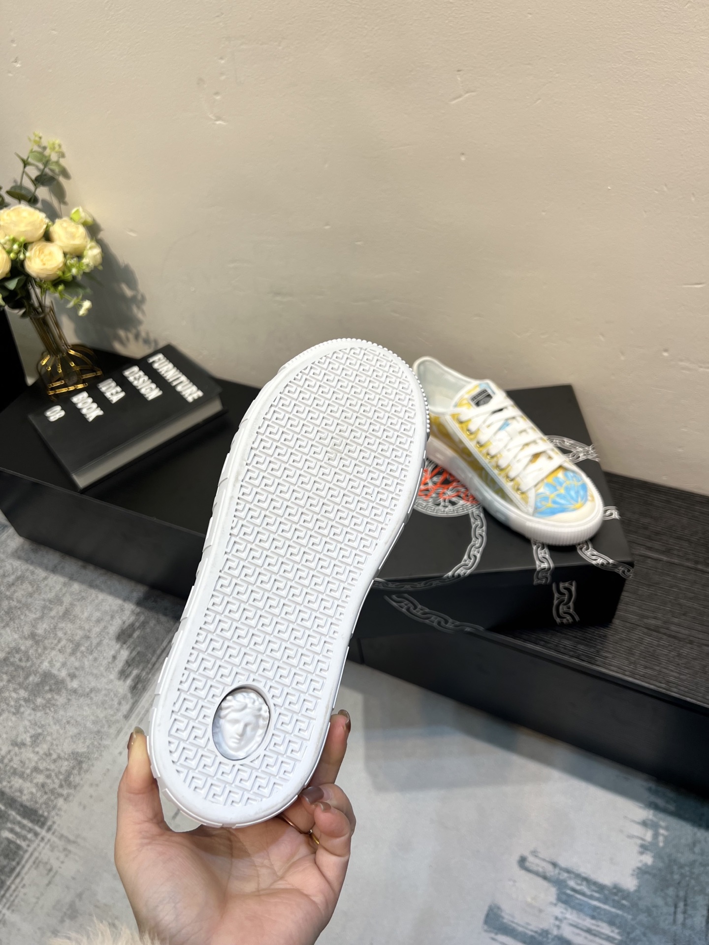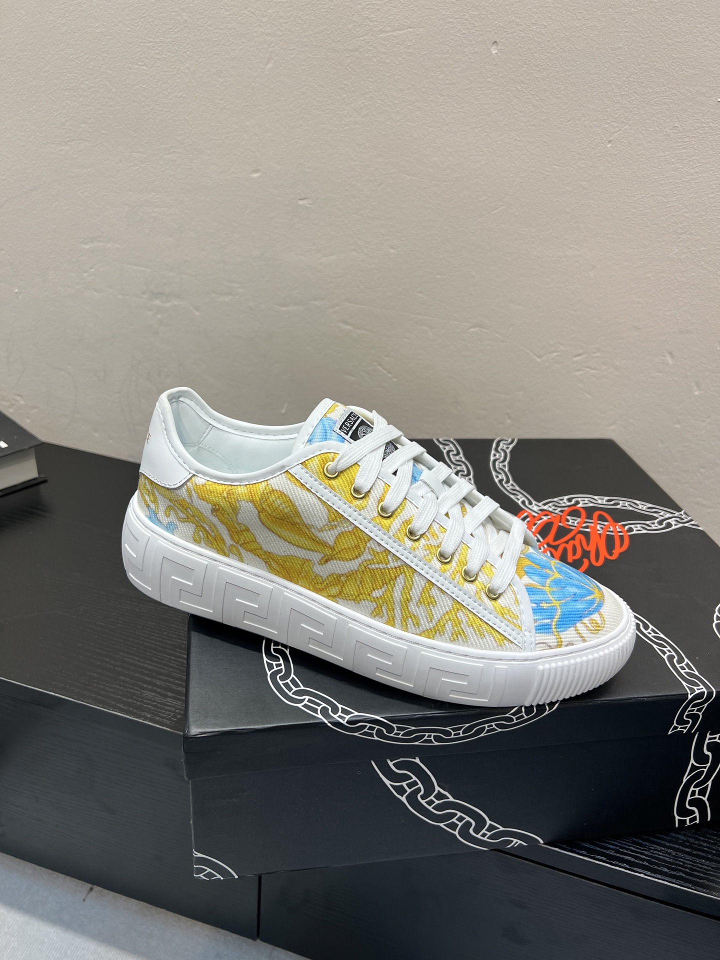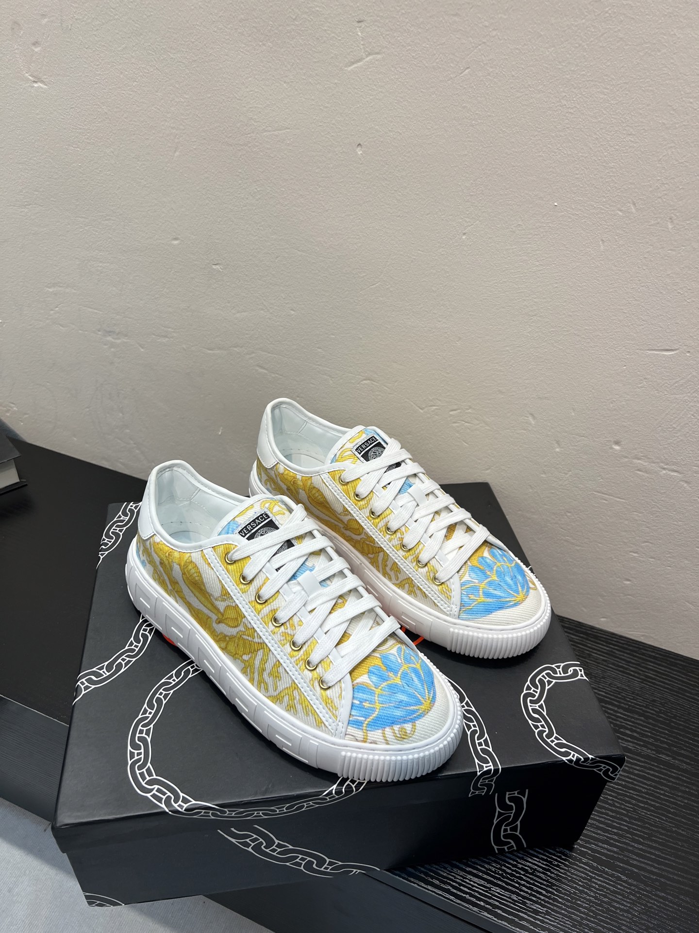 這款鞋子是AAAAA 1:1 質量(非常棒). 使用了和原版一模一樣的材料. 商標部分也保持了和范思哲/Versace一樣. 圖片拍攝是實物鞋子拍攝, 您所收到的實物保證和我們圖片一模一樣.