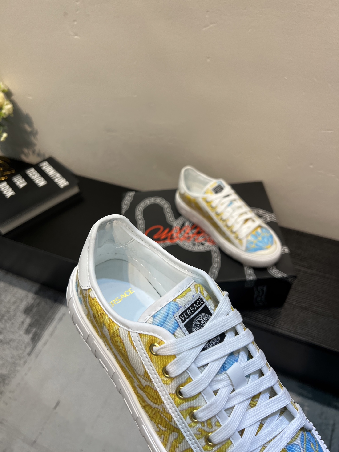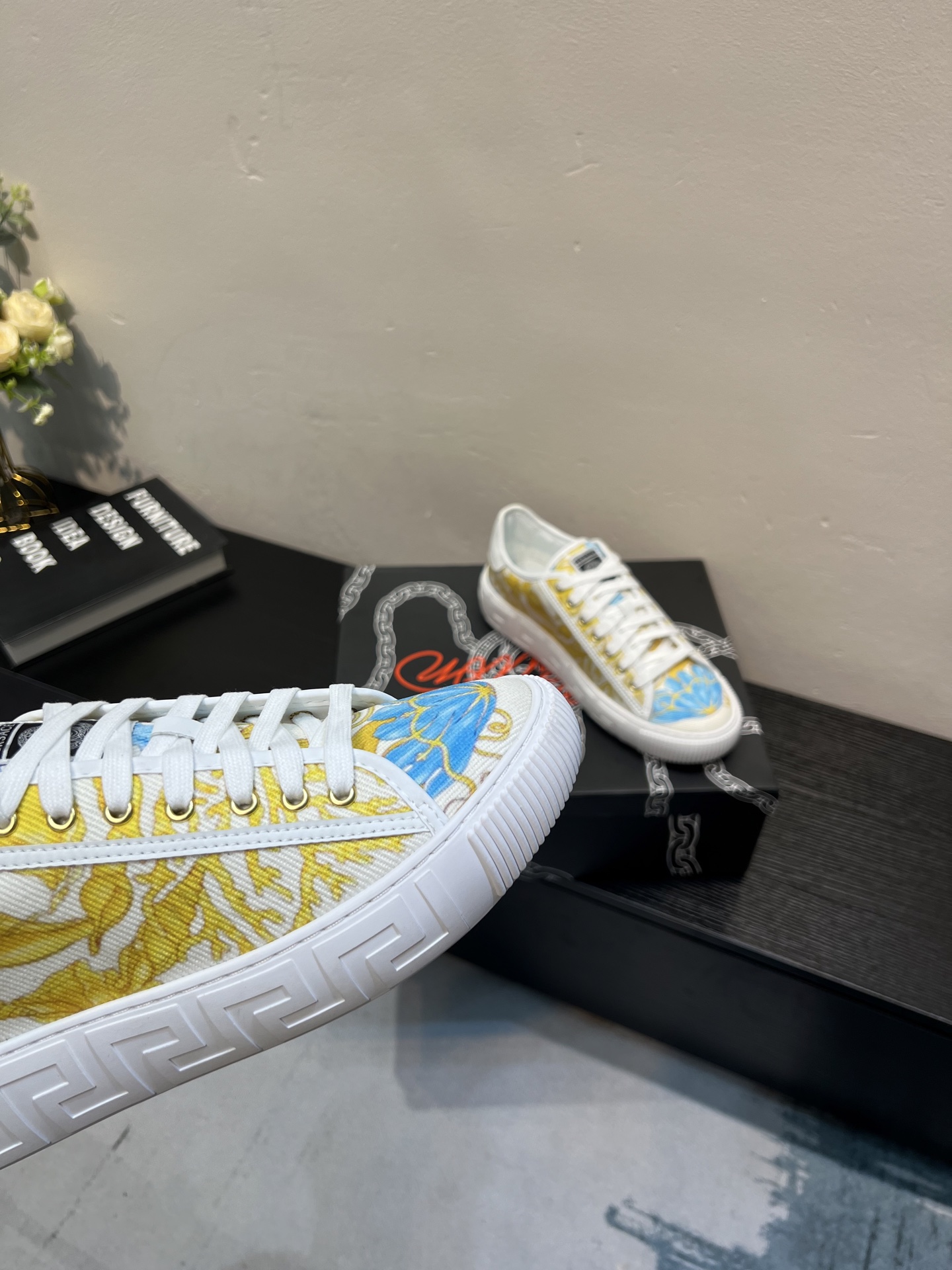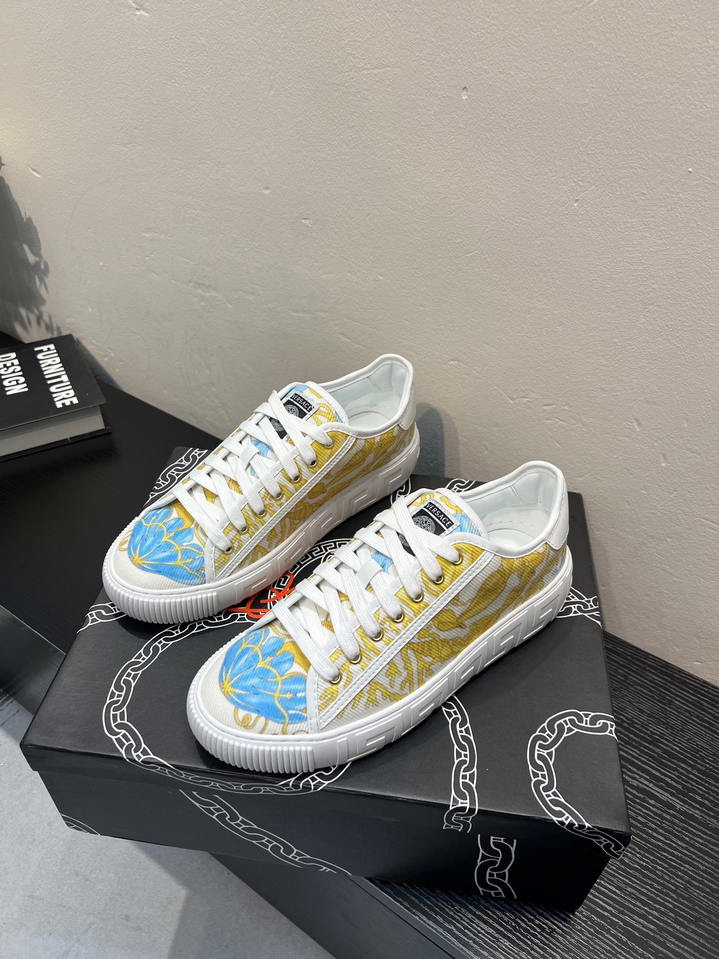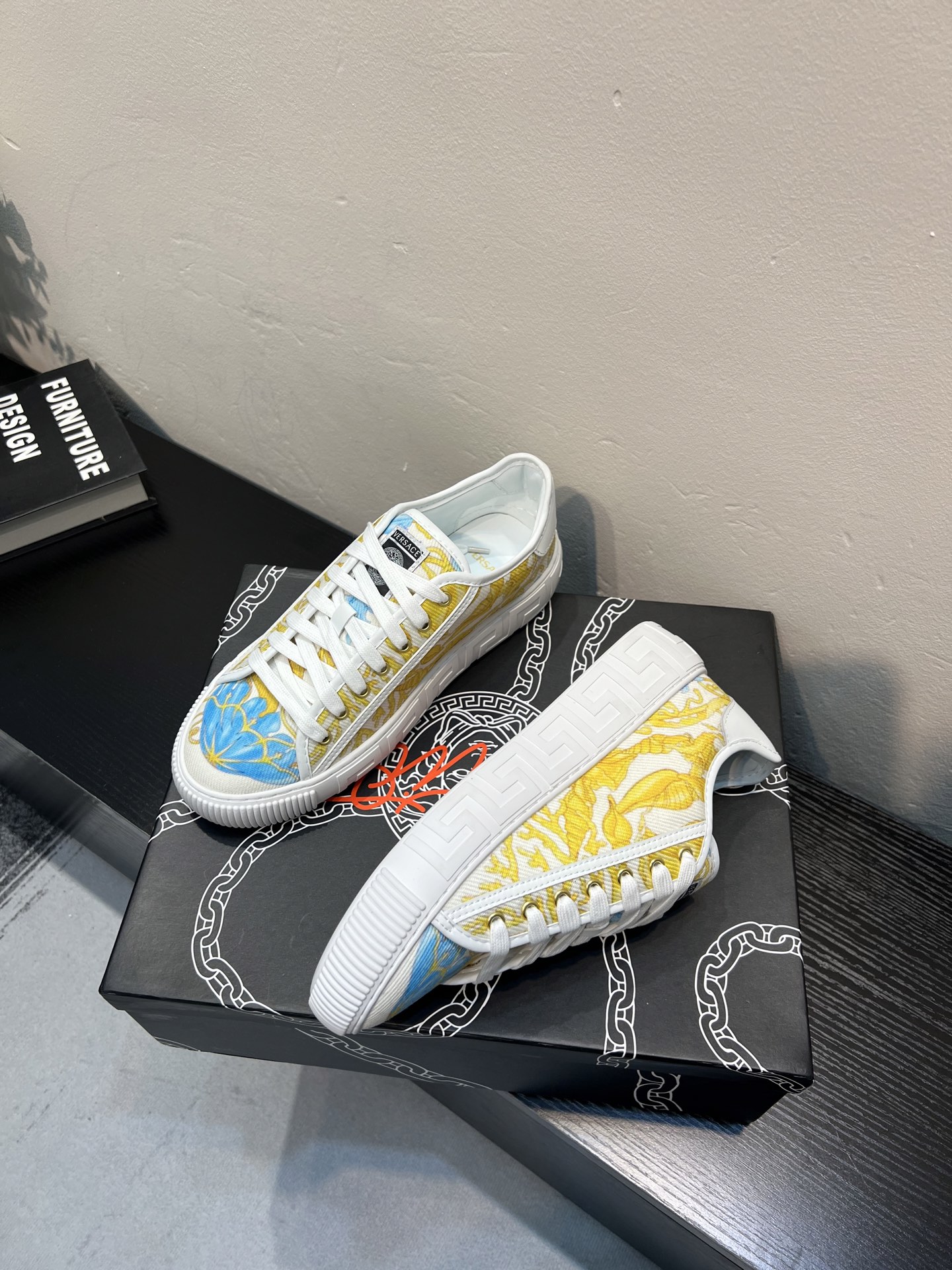 這款鞋子是AAAAA 1:1 質量(非常棒). 使用了和原版一模一樣的材料. 商標部分也保持了和范思哲/Versace一樣. 圖片拍攝是實物鞋子拍攝, 您所收到的實物保證和我們圖片一模一樣.