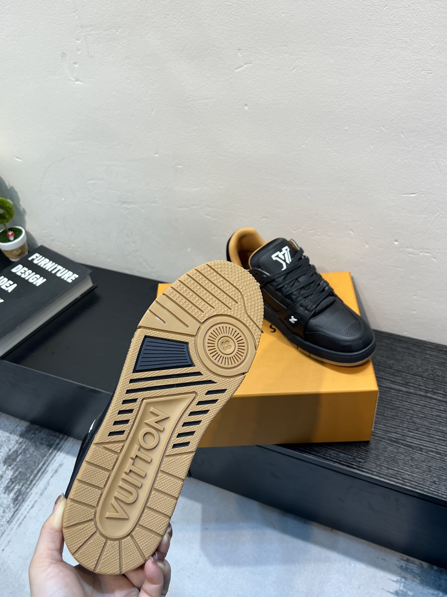 這款鞋子是AAAAA 1:1 質量(非常棒). 使用了和原版一模一樣的材料. 商標部分也保持了和路易威登/Louis Vuitton一樣. 圖片拍攝是實物鞋子拍攝, 您所收到的實物保證和我們圖片一模一樣.