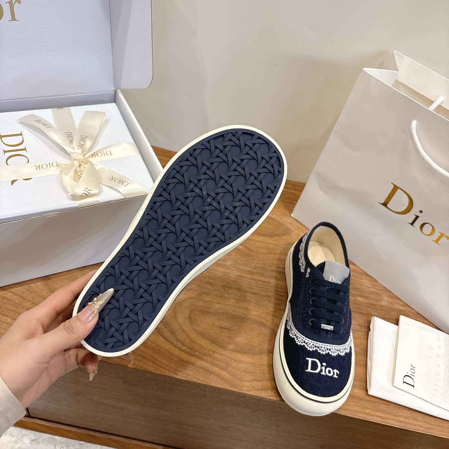 這款鞋子是AAAAA 1:1 質量(非常棒). 使用了和原版一模一樣的材料. 商標部分也保持了和迪奧/Dior一樣. 圖片拍攝是實物鞋子拍攝, 您所收到的實物保證和我們圖片一模一樣.