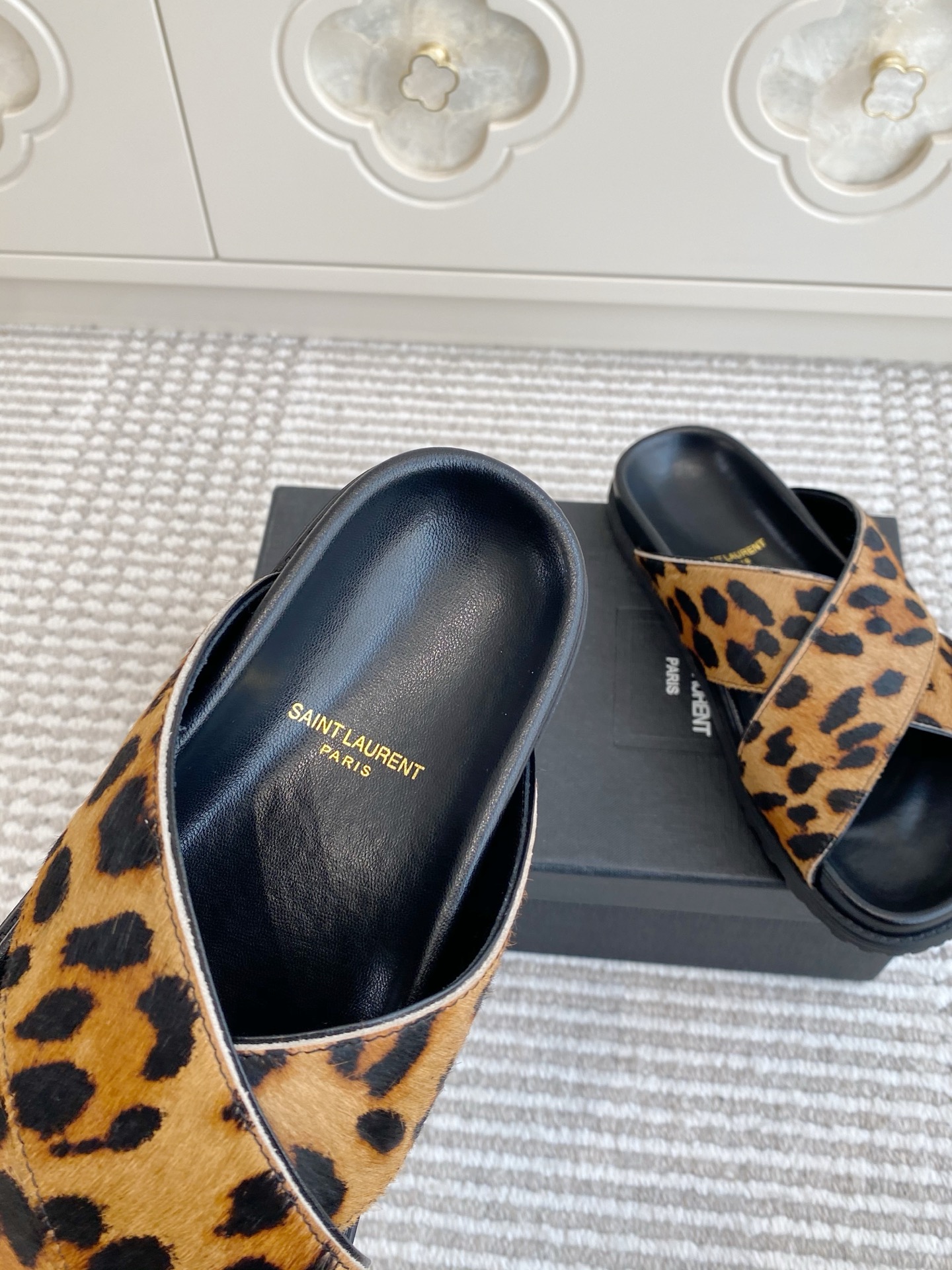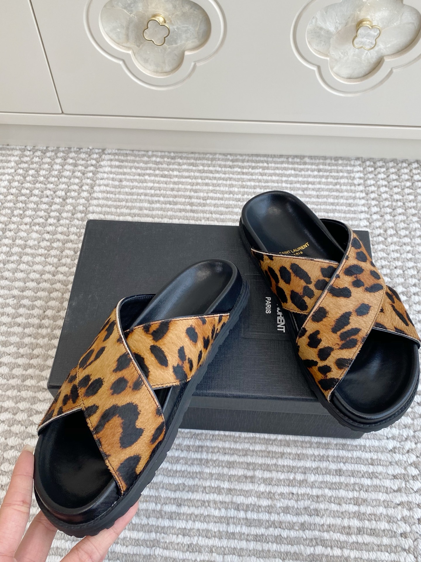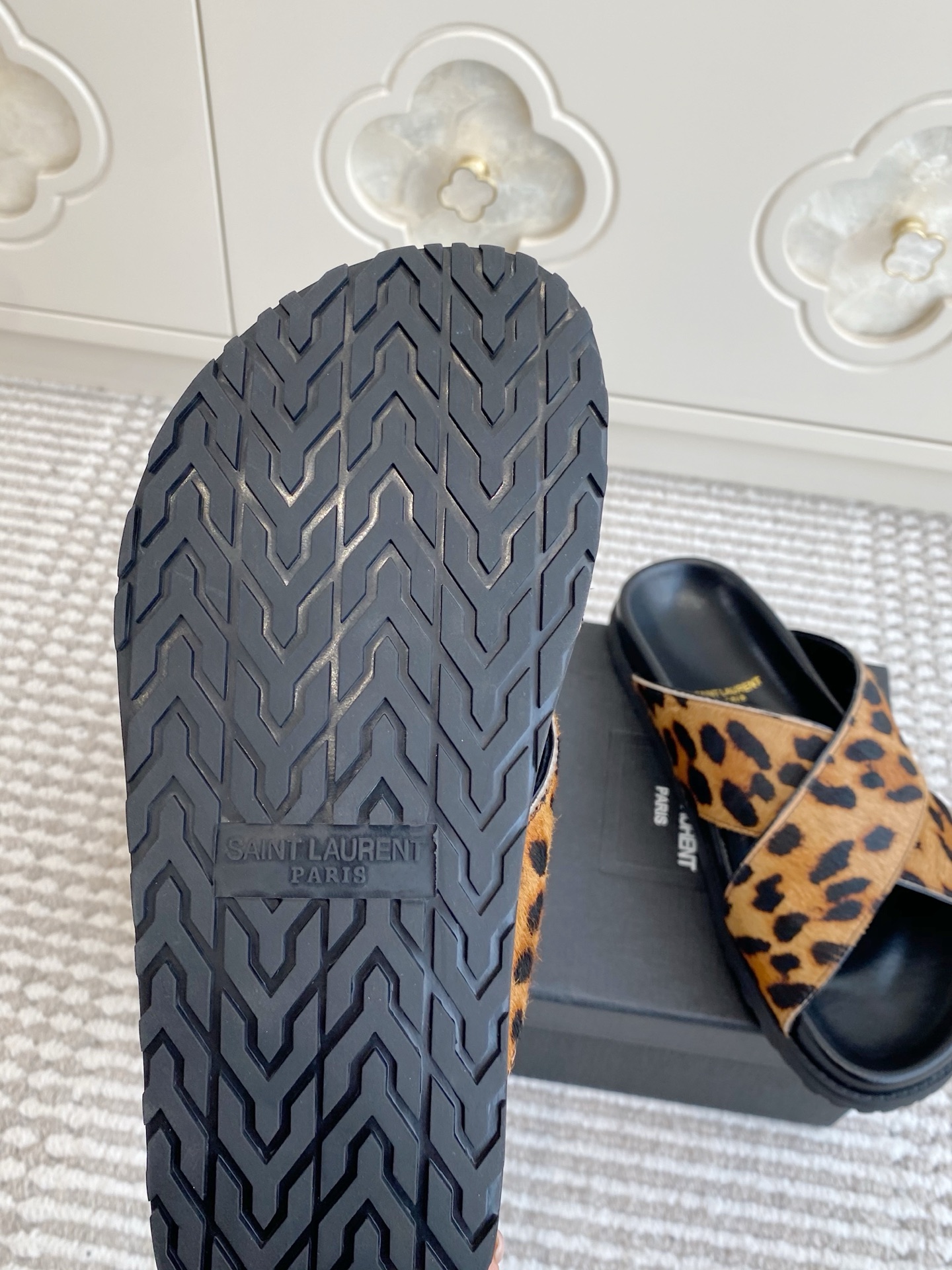 這款鞋子是AAAAA 1:1 質量(非常棒). 使用了和原版一模一樣的材料. 商標部分也保持了和聖羅蘭/Saint Laurent一樣. 圖片拍攝是實物鞋子拍攝, 您所收到的實物保證和我們圖片一模一樣.