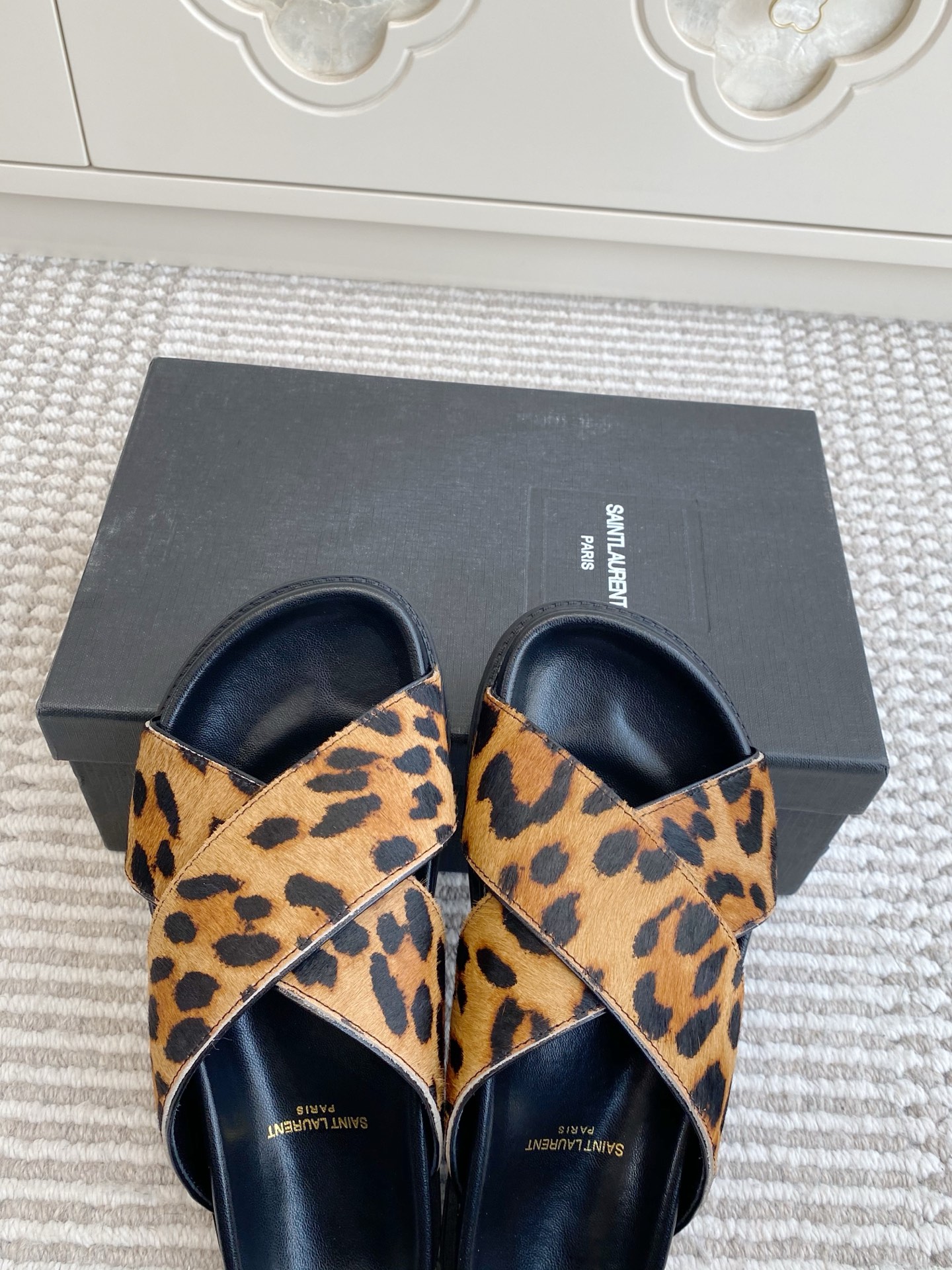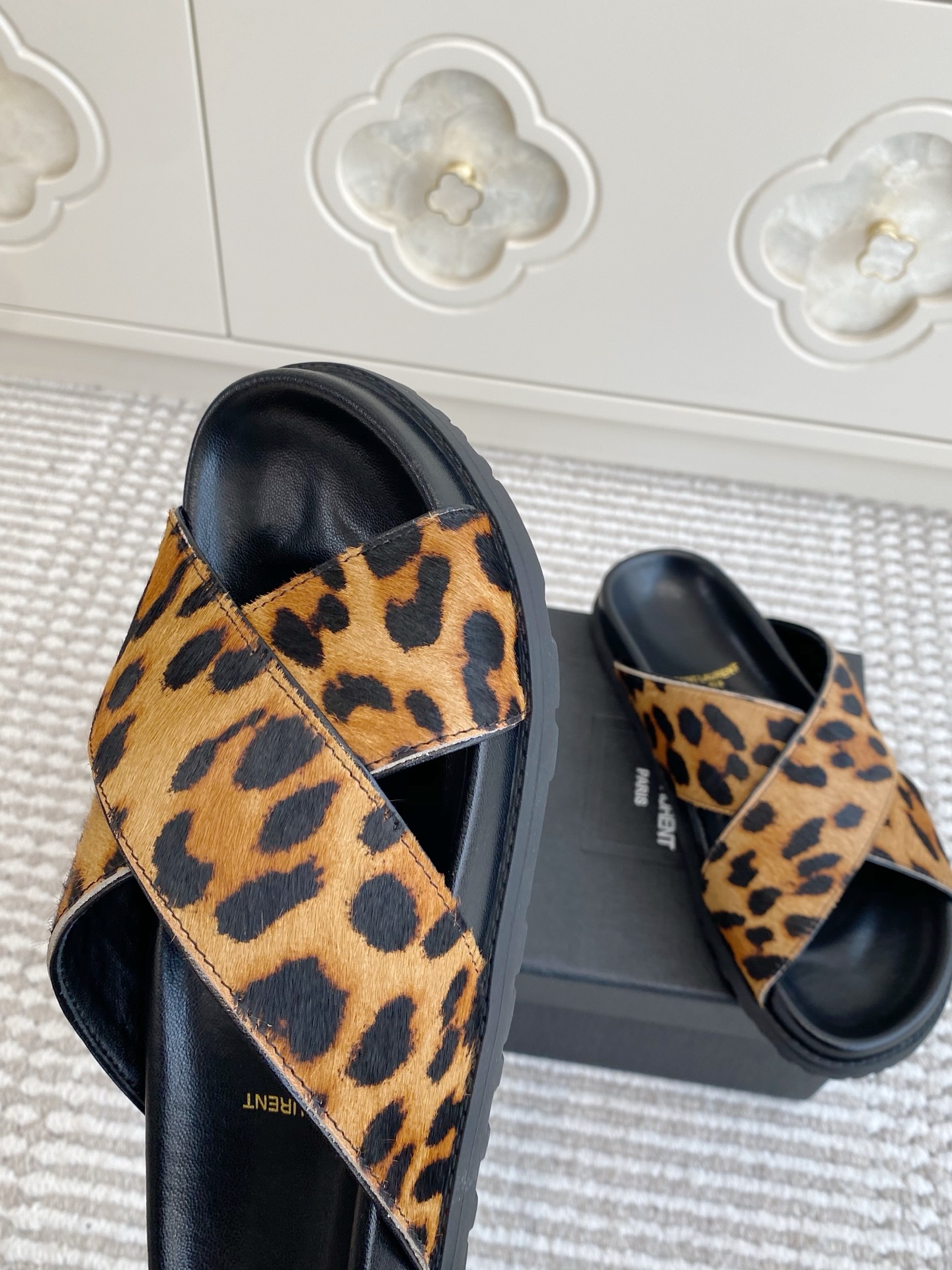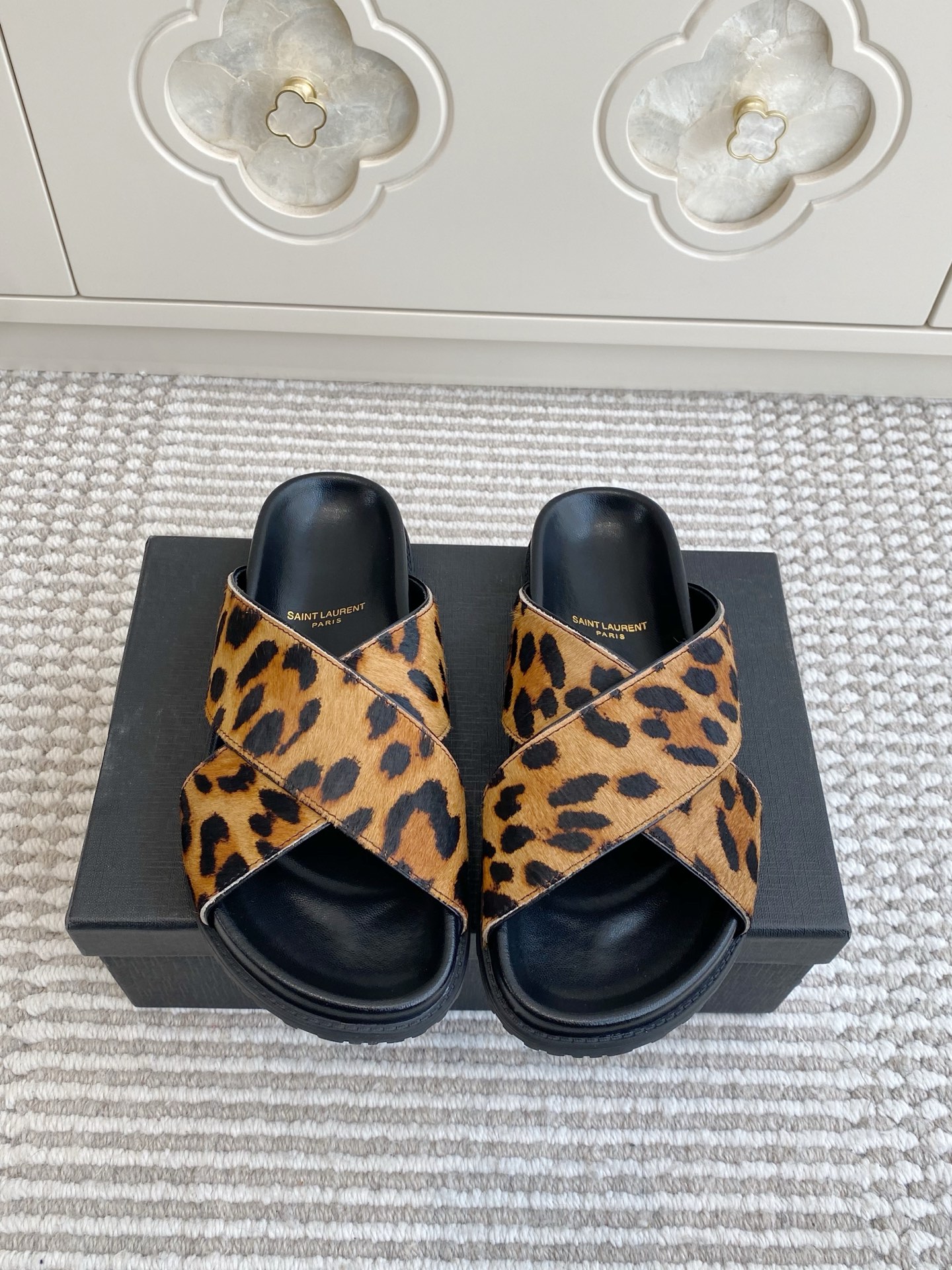 這款鞋子是AAAAA 1:1 質量(非常棒). 使用了和原版一模一樣的材料. 商標部分也保持了和聖羅蘭/Saint Laurent一樣. 圖片拍攝是實物鞋子拍攝, 您所收到的實物保證和我們圖片一模一樣.