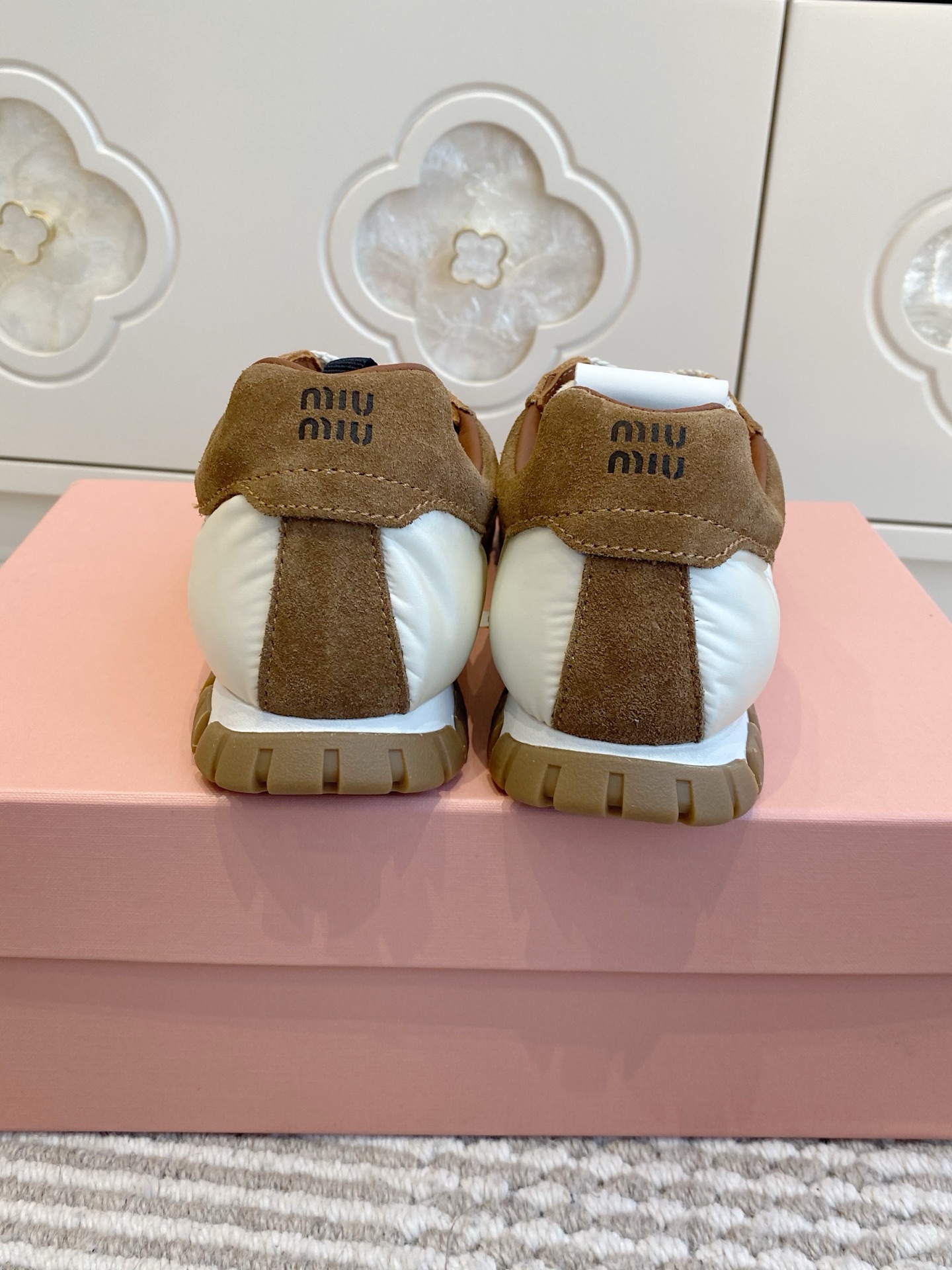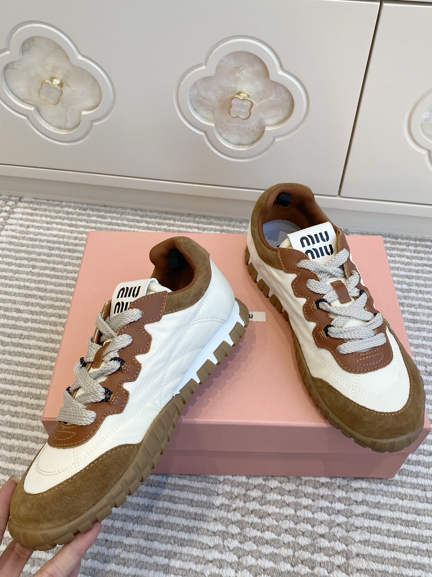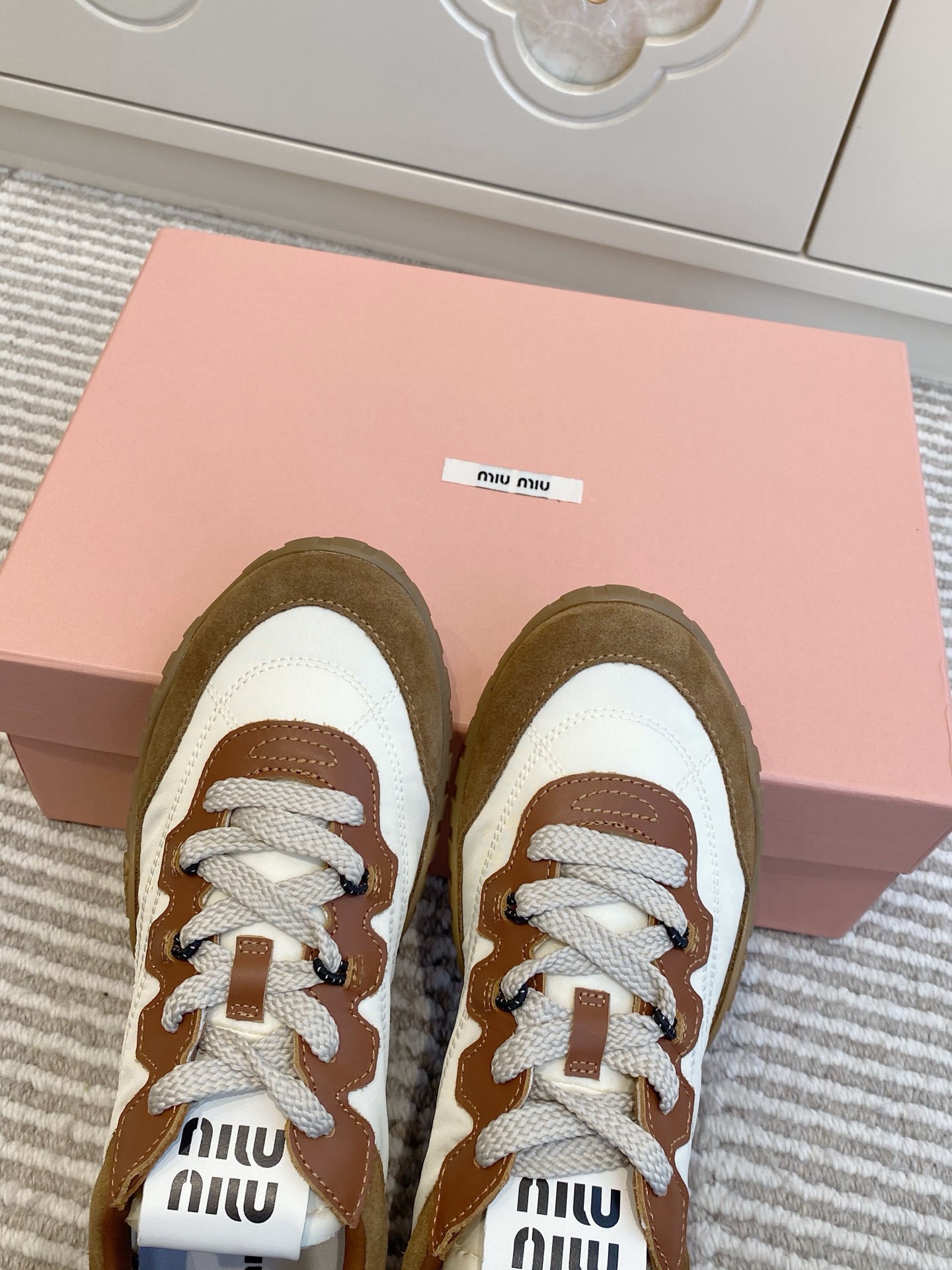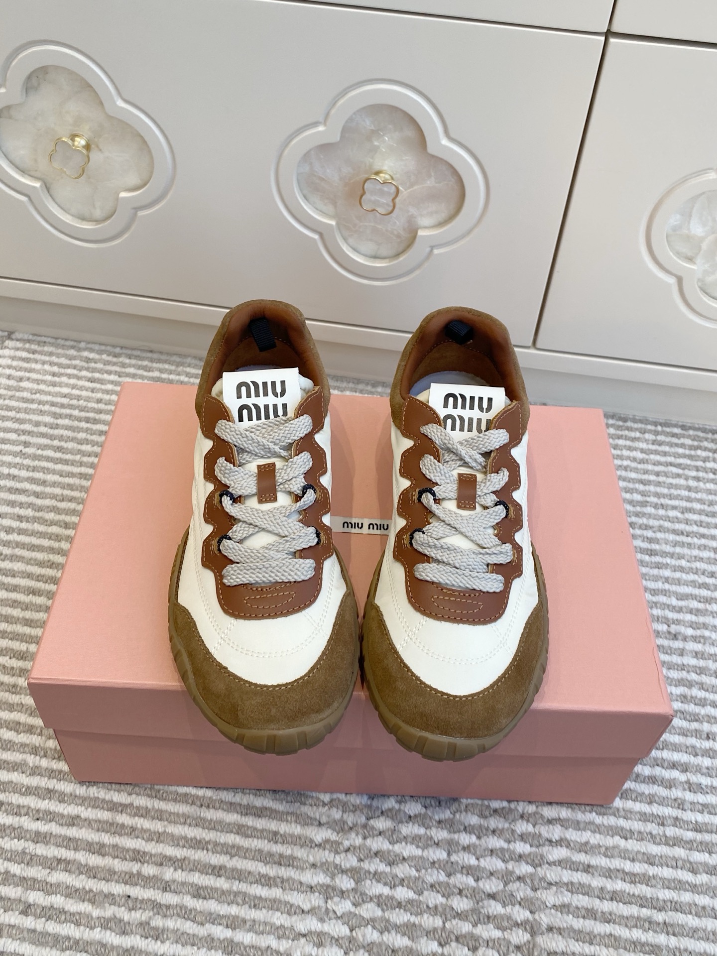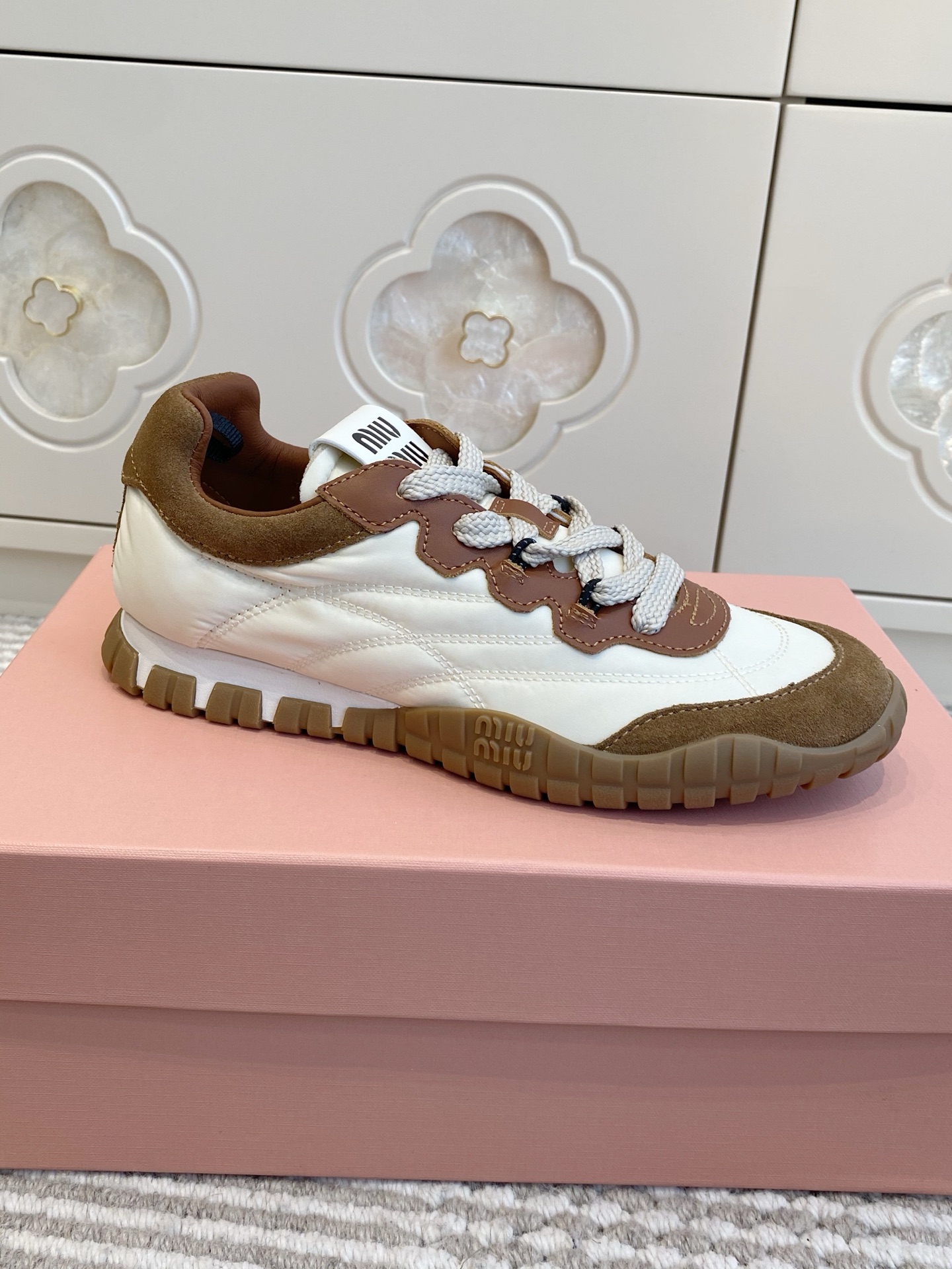 這款鞋子是AAAAA 1:1 質量(非常棒). 使用了和原版一模一樣的材料. 商標部分也保持了和繆繆/Miu Miu一樣. 圖片拍攝是實物鞋子拍攝, 您所收到的實物保證和我們圖片一模一樣.