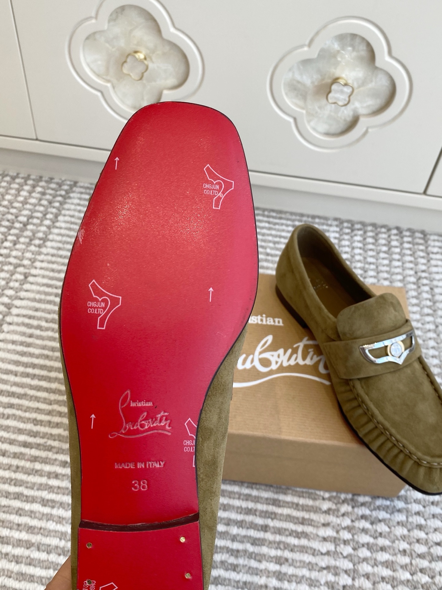 這款鞋子是AAAAA 1:1 質量(非常棒). 使用了和原版一模一樣的材料. 商標部分也保持了和Christian Louboutin一樣. 圖片拍攝是實物鞋子拍攝, 您所收到的實物保證和我們圖片一模一樣.