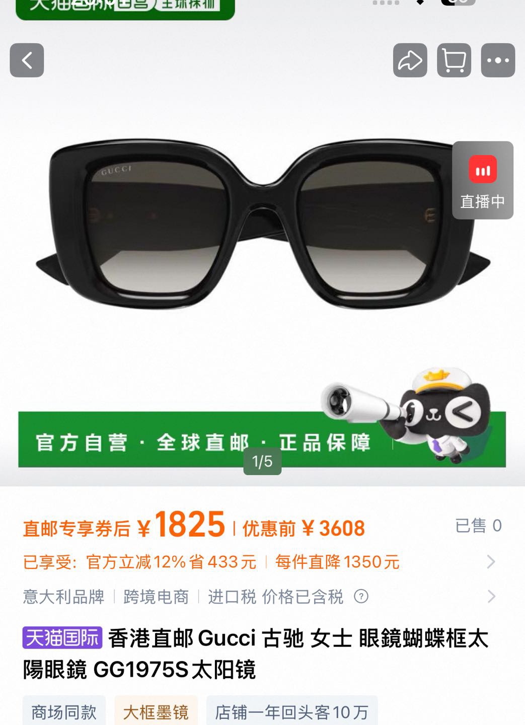 NO:4610929. 這款太陽眼鏡是來自於古奇/Gucci的設計師.
