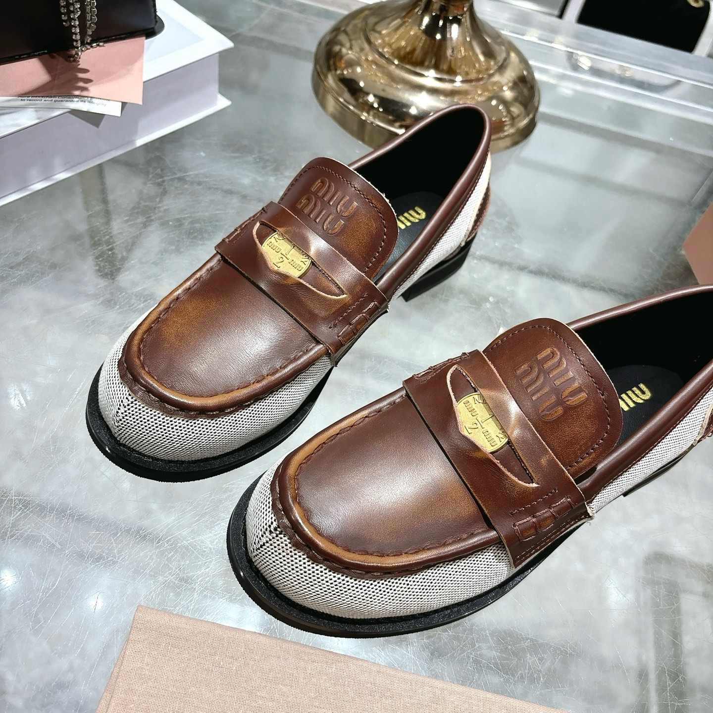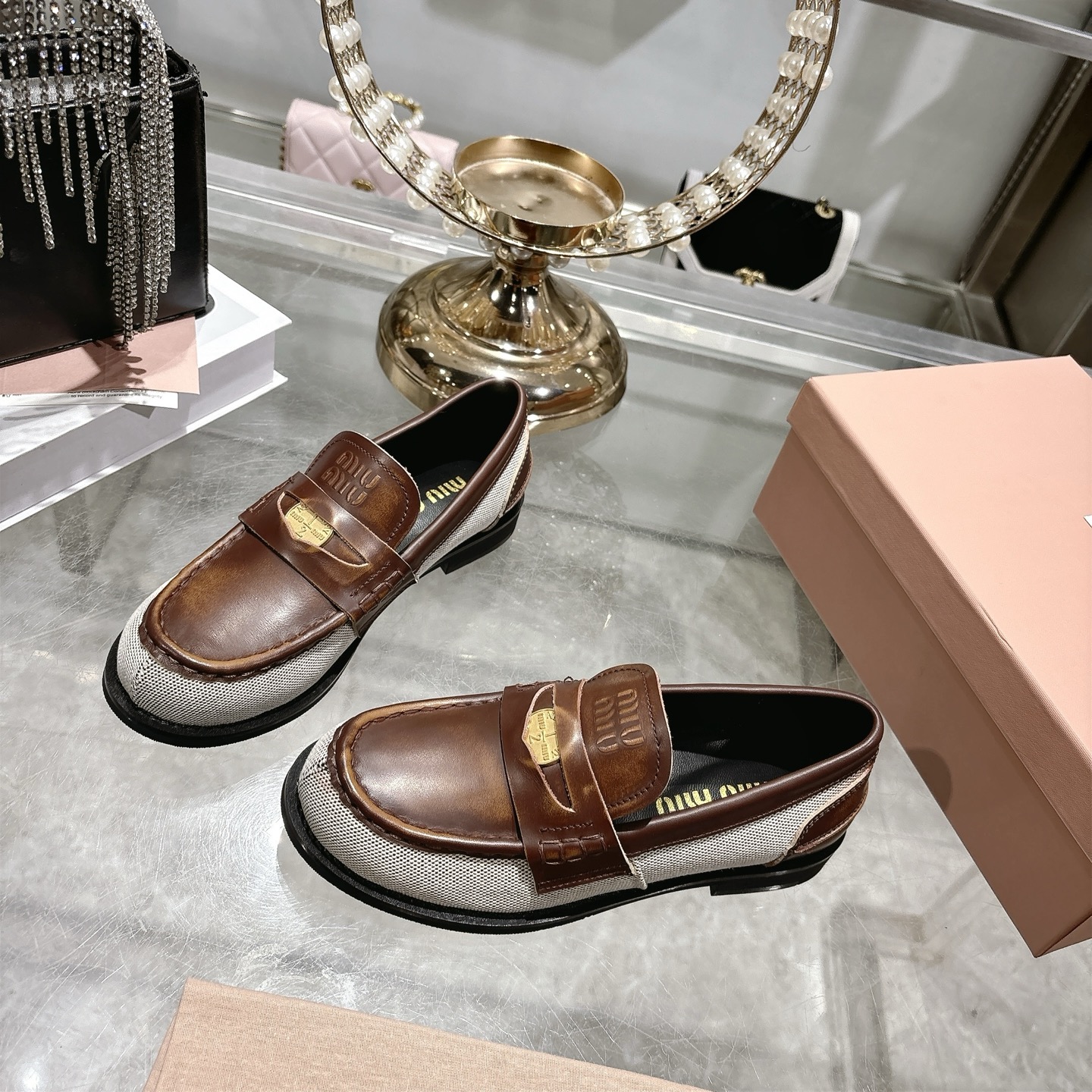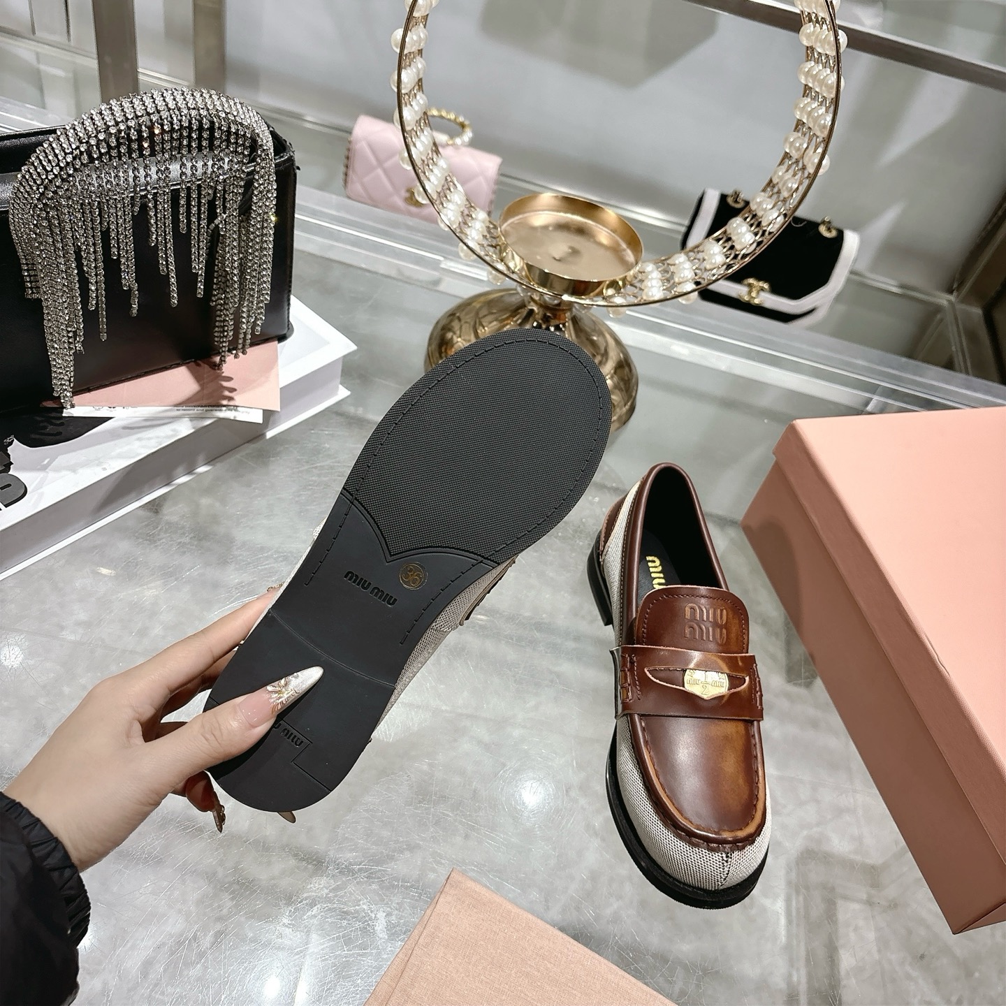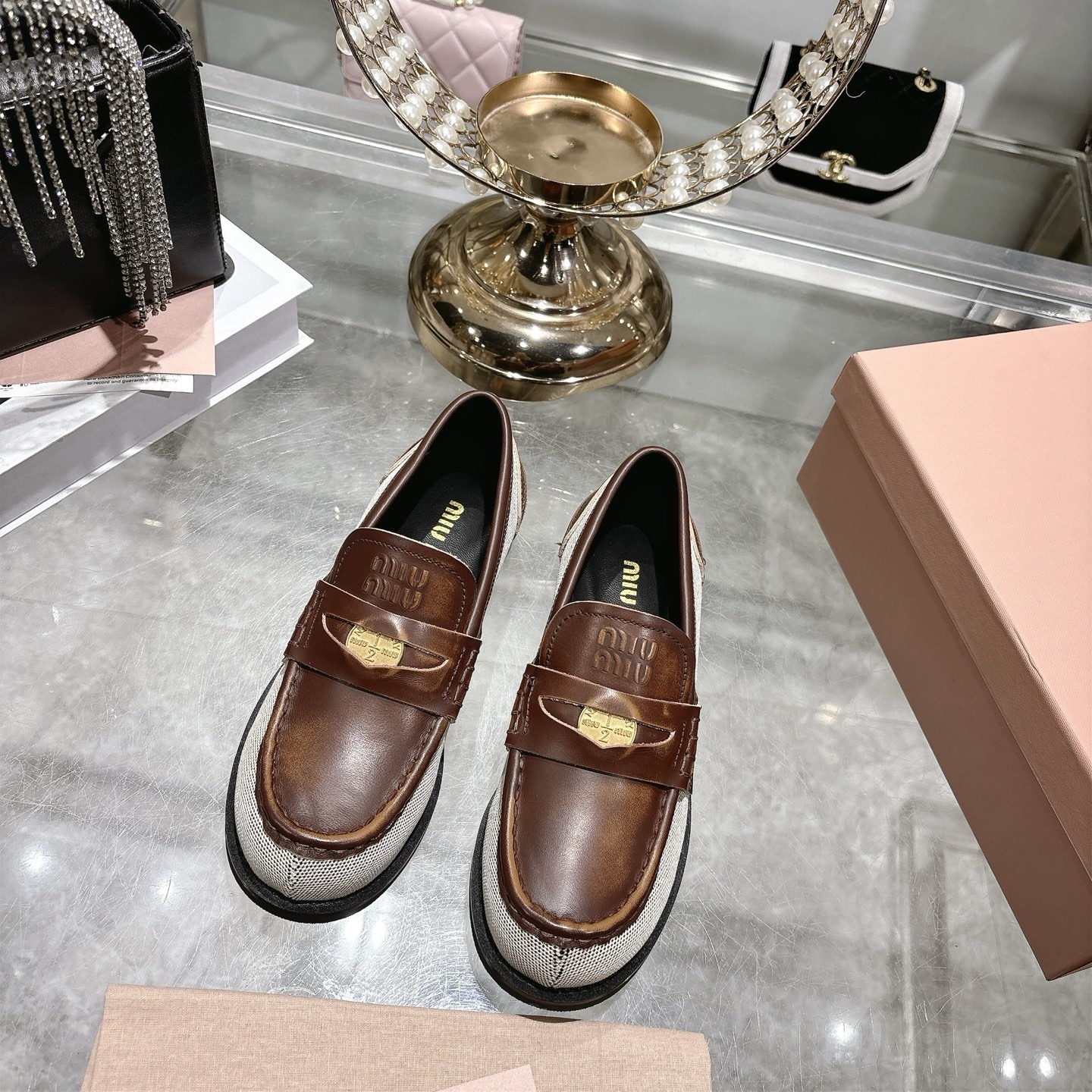 這款鞋子是AAAAA 1:1 質量(非常棒). 使用了和原版一模一樣的材料. 商標部分也保持了和繆繆/Miu Miu一樣. 圖片拍攝是實物鞋子拍攝, 您所收到的實物保證和我們圖片一模一樣.