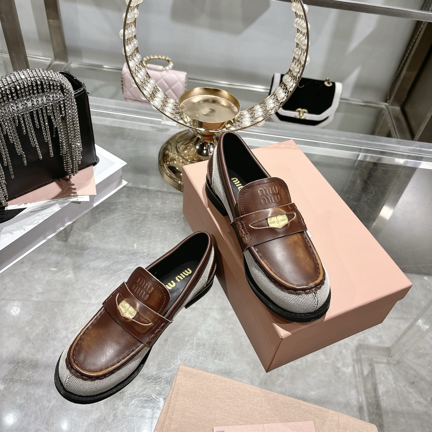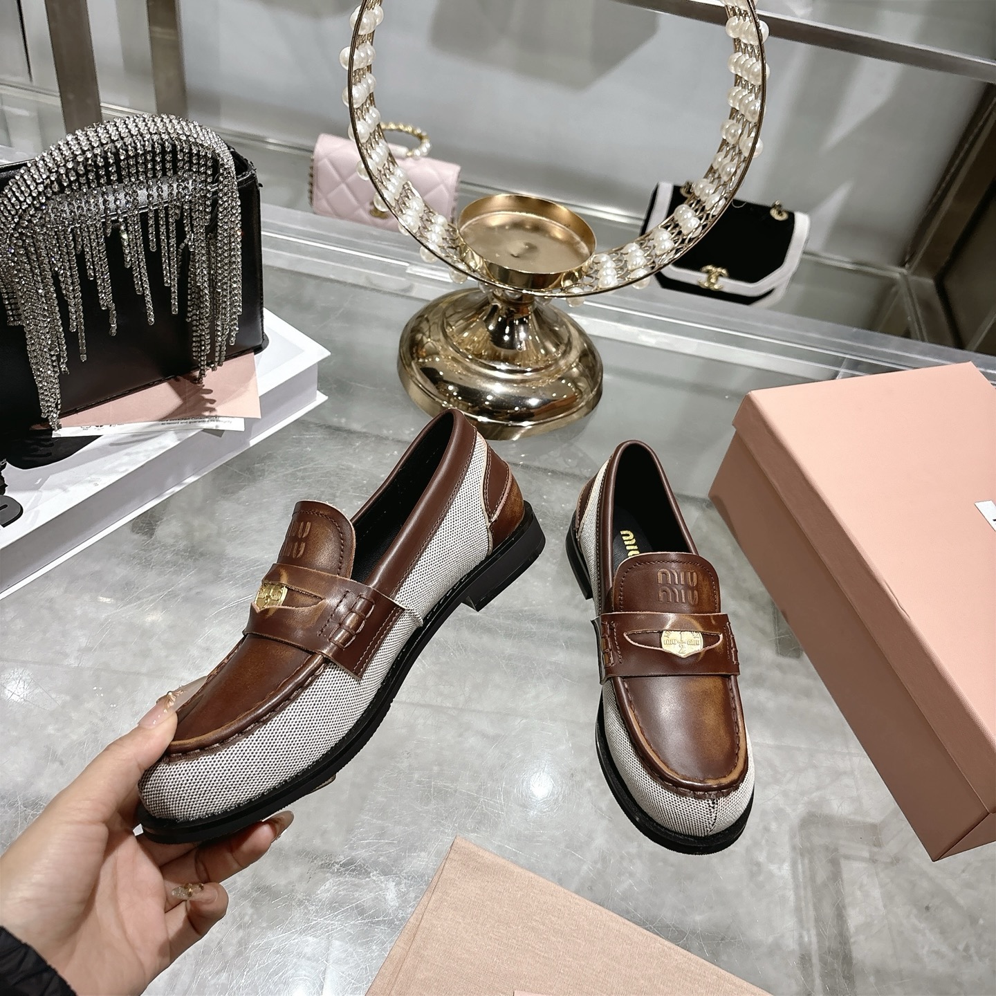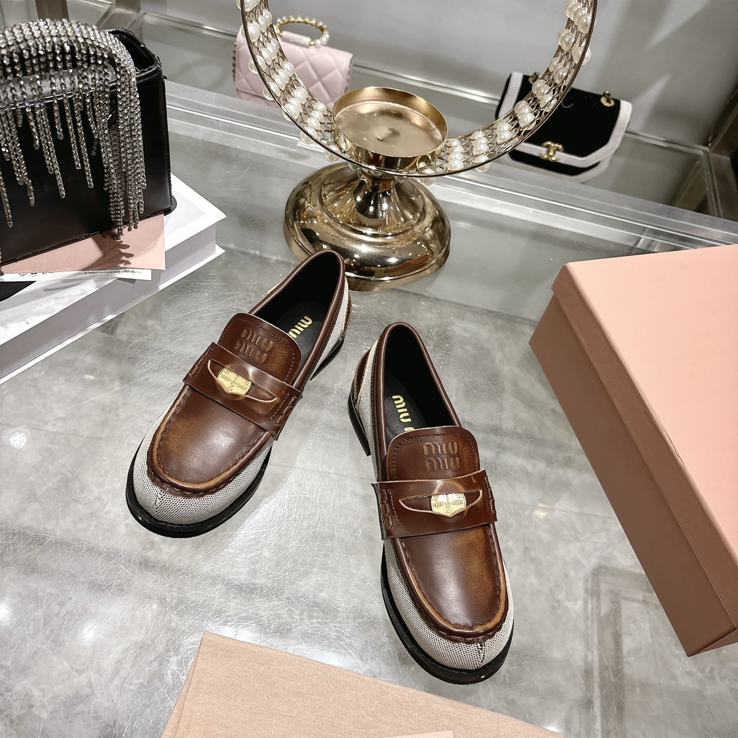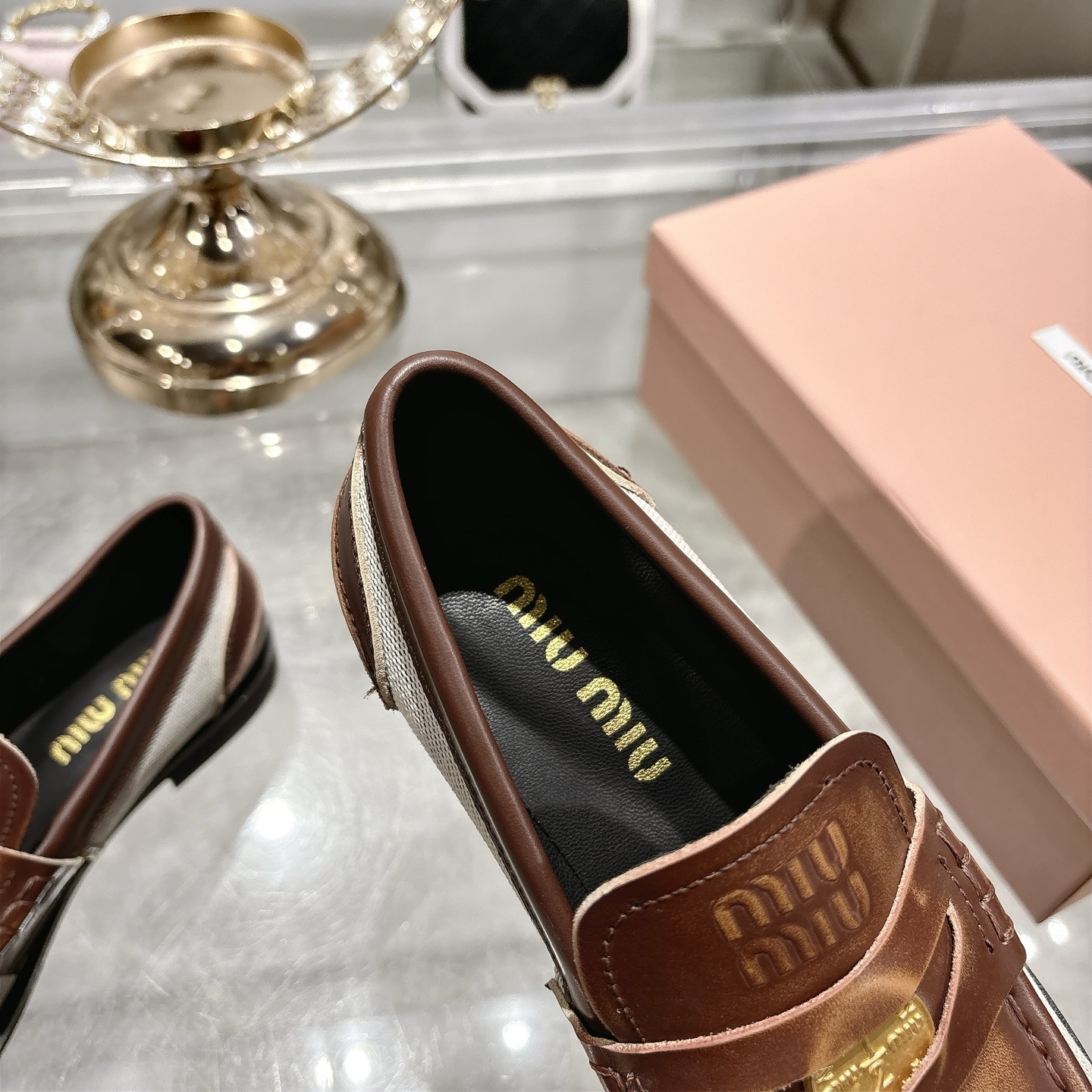 這款鞋子是AAAAA 1:1 質量(非常棒). 使用了和原版一模一樣的材料. 商標部分也保持了和繆繆/Miu Miu一樣. 圖片拍攝是實物鞋子拍攝, 您所收到的實物保證和我們圖片一模一樣.