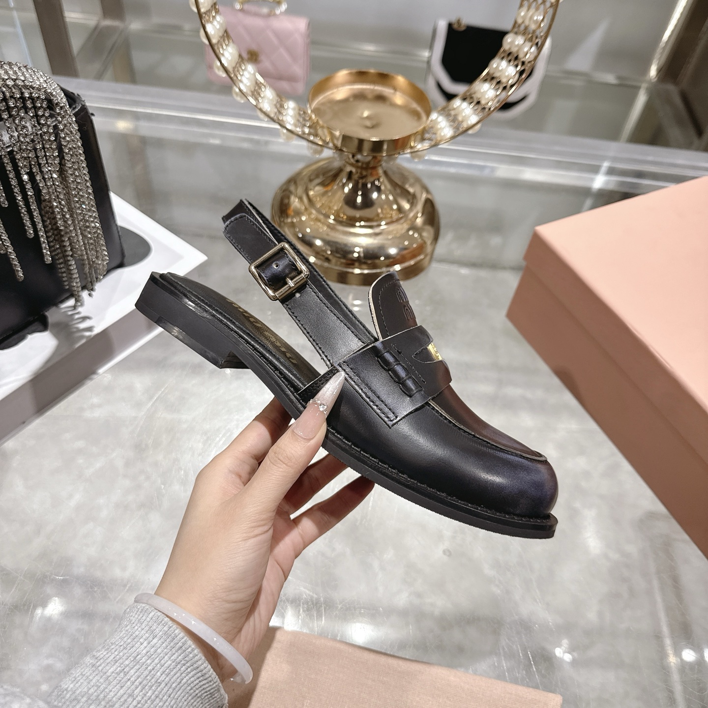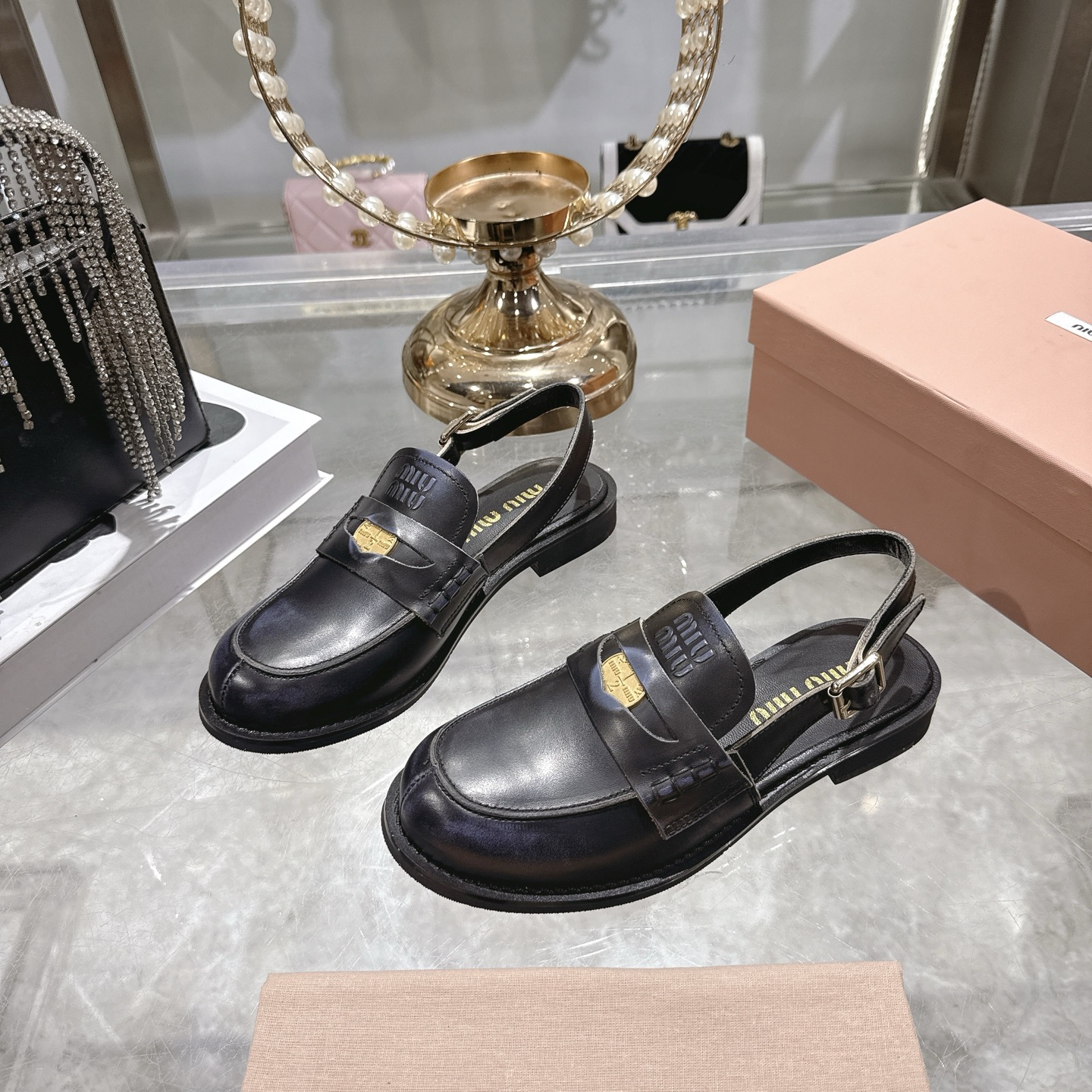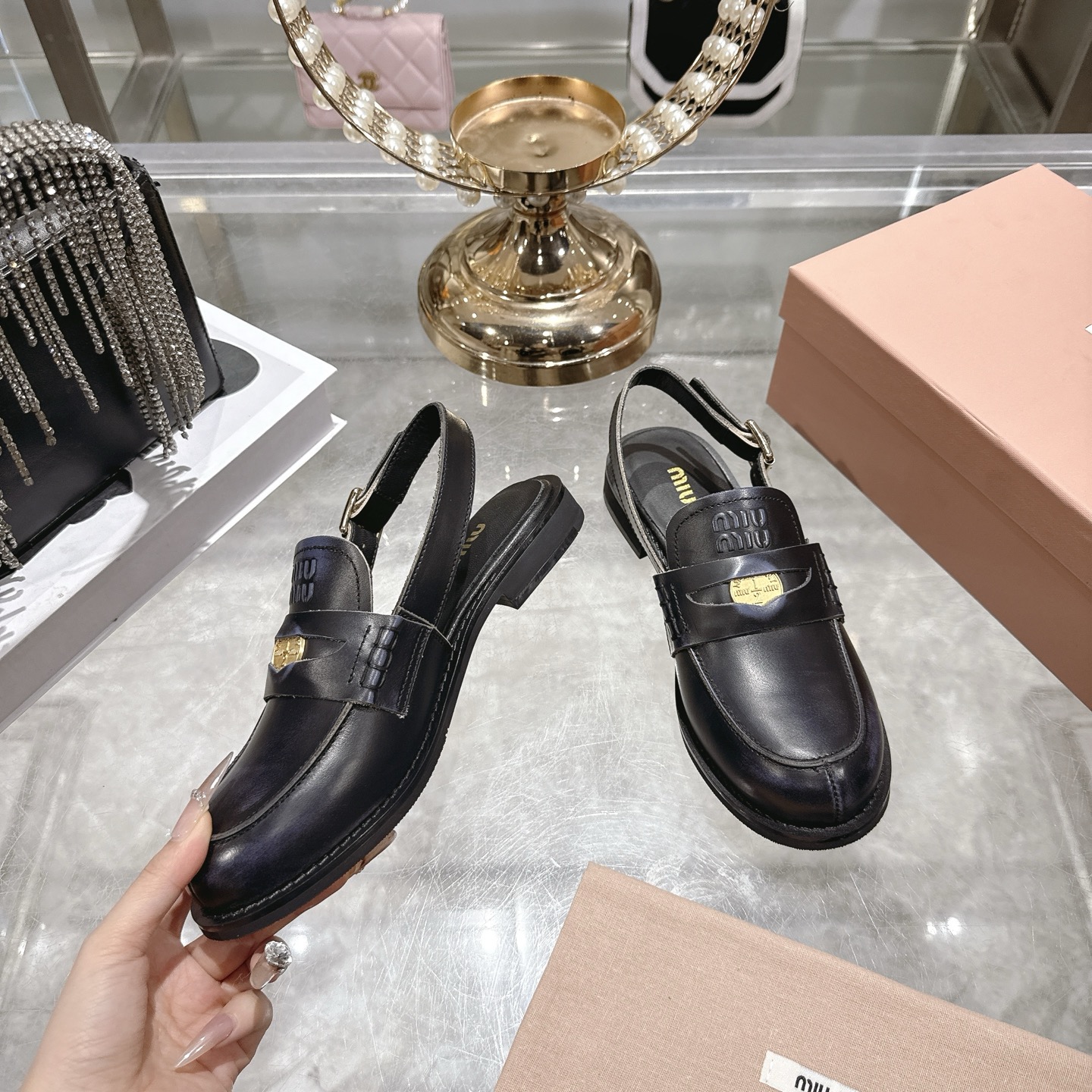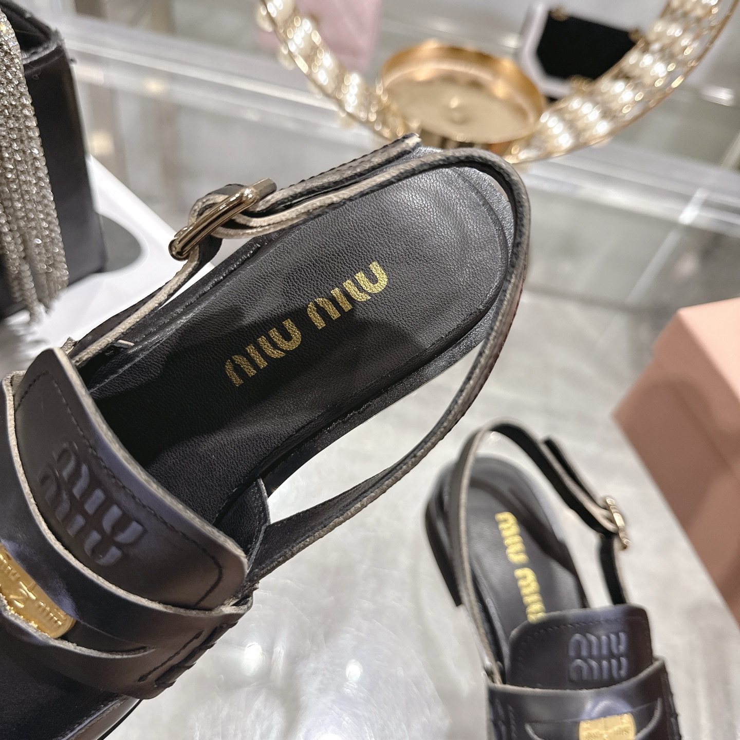這款鞋子是AAAAA 1:1 質量(非常棒). 使用了和原版一模一樣的材料. 商標部分也保持了和繆繆/Miu Miu一樣. 圖片拍攝是實物鞋子拍攝, 您所收到的實物保證和我們圖片一模一樣.