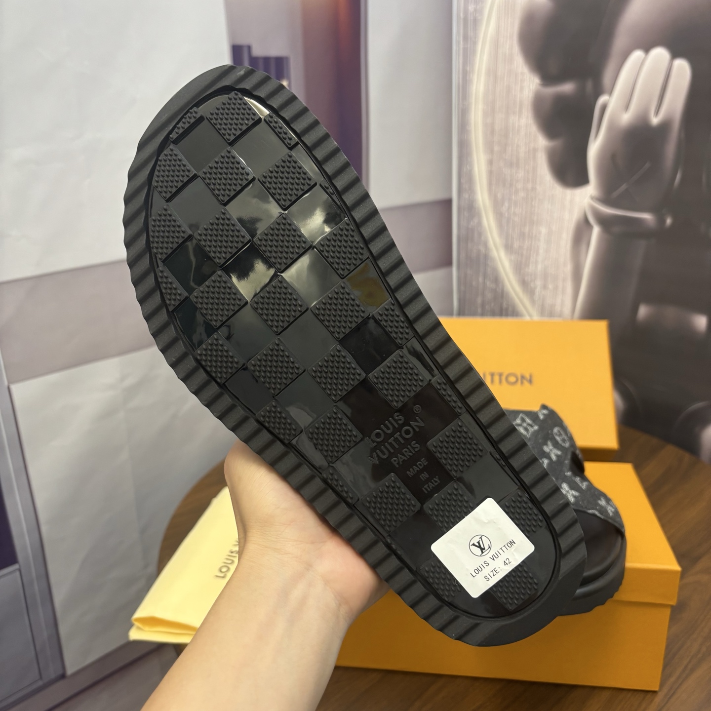 這款鞋子是AAAAA 1:1 質量(非常棒). 使用了和原版一模一樣的材料. 商標部分也保持了和路易威登/Louis Vuitton一樣. 圖片拍攝是實物鞋子拍攝, 您所收到的實物保證和我們圖片一模一樣.