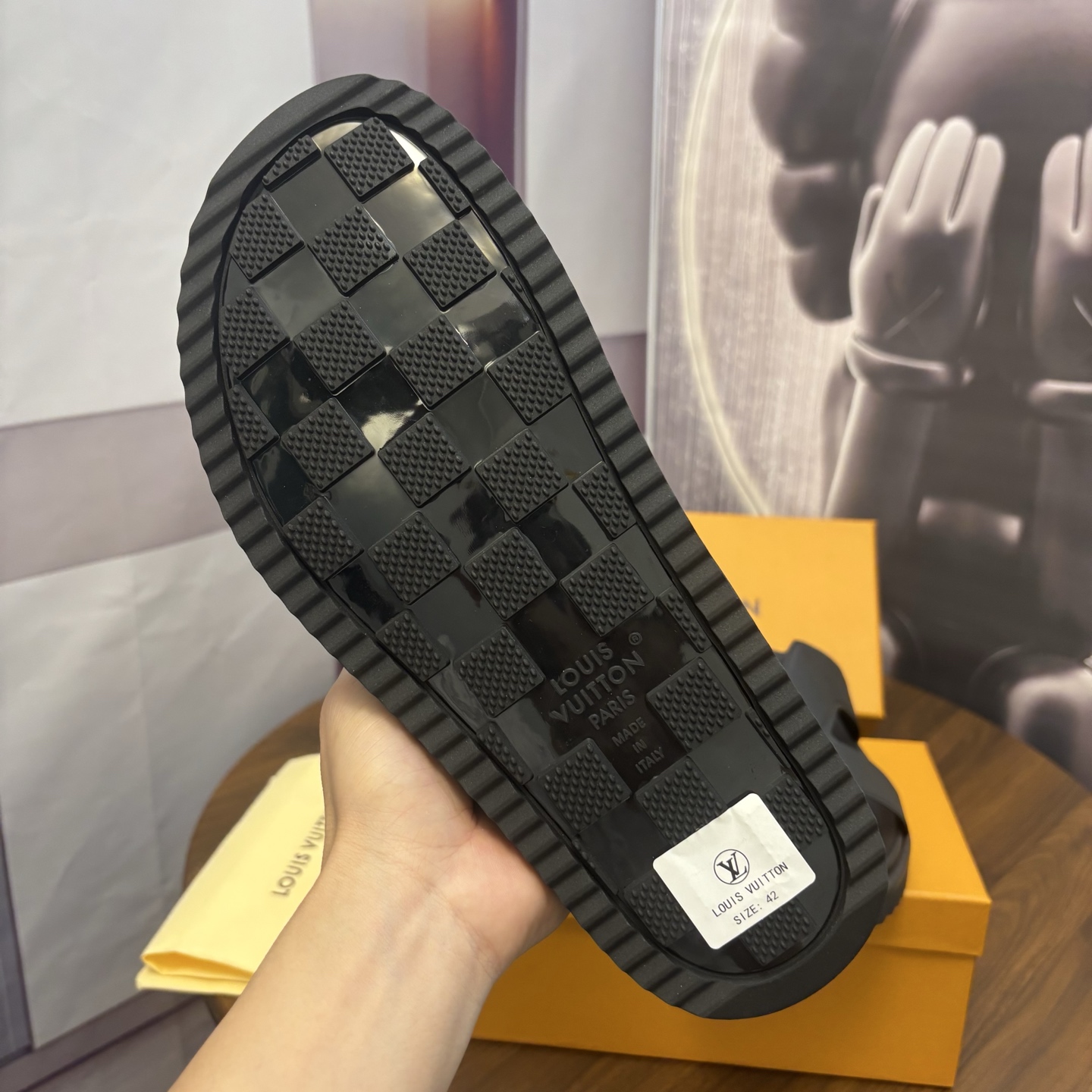 這款鞋子是AAAAA 1:1 質量(非常棒). 使用了和原版一模一樣的材料. 商標部分也保持了和路易威登/Louis Vuitton一樣. 圖片拍攝是實物鞋子拍攝, 您所收到的實物保證和我們圖片一模一樣.