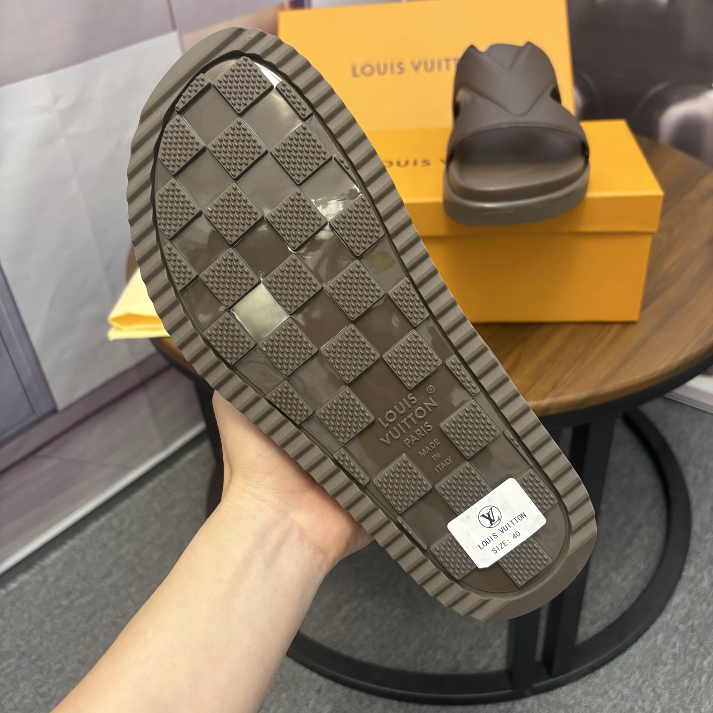 這款鞋子是AAAAA 1:1 質量(非常棒). 使用了和原版一模一樣的材料. 商標部分也保持了和路易威登/Louis Vuitton一樣. 圖片拍攝是實物鞋子拍攝, 您所收到的實物保證和我們圖片一模一樣.