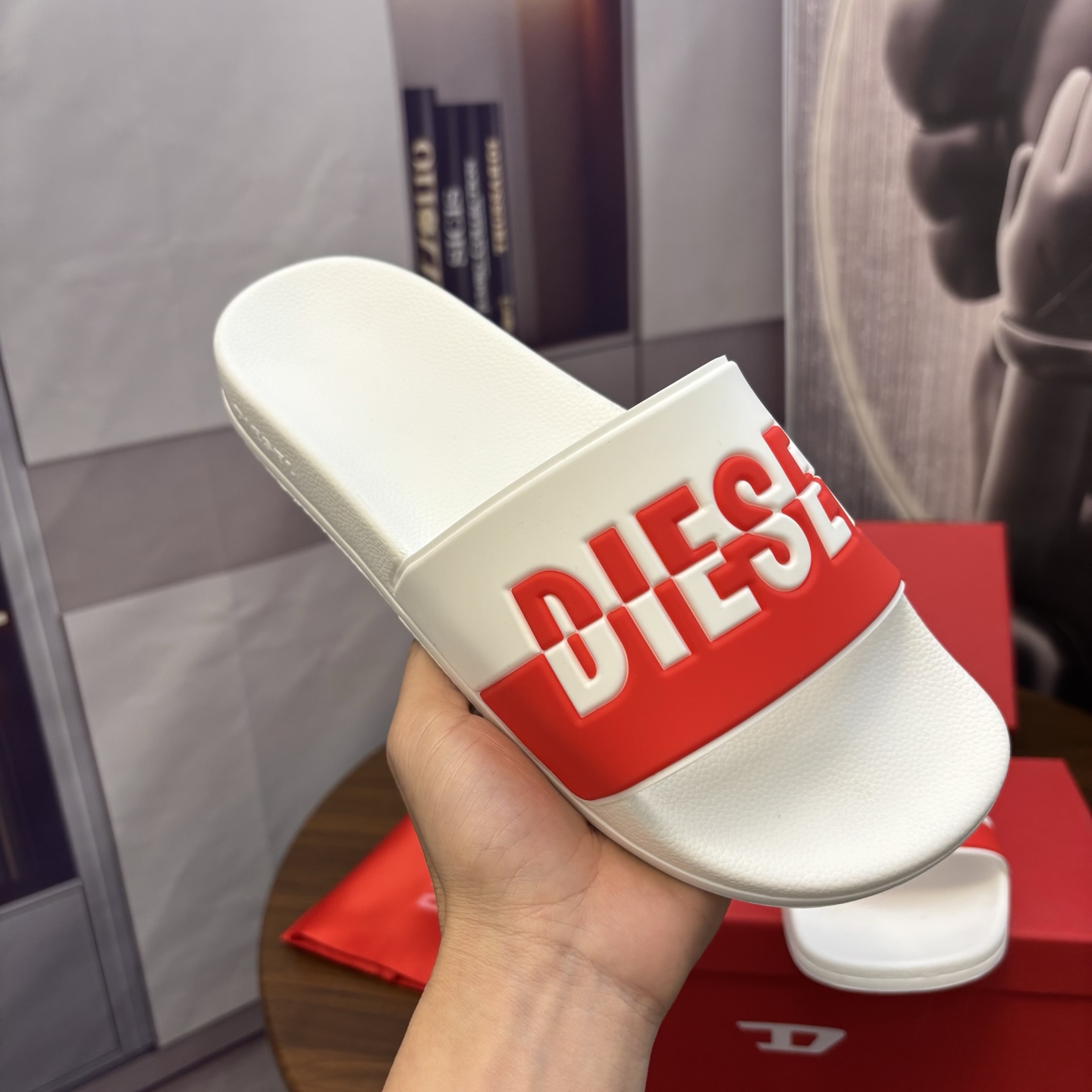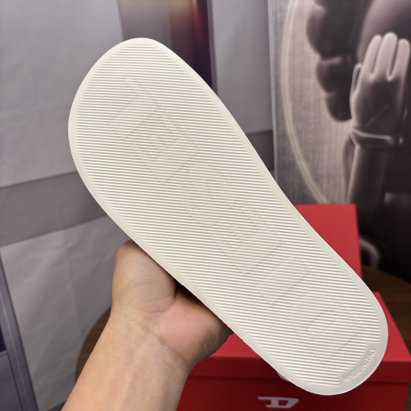 這款鞋子是AAAAA 1:1 質量(非常棒). 使用了和原版一模一樣的材料. 商標部分也保持了和DIESEL一樣. 圖片拍攝是實物鞋子拍攝, 您所收到的實物保證和我們圖片一模一樣.