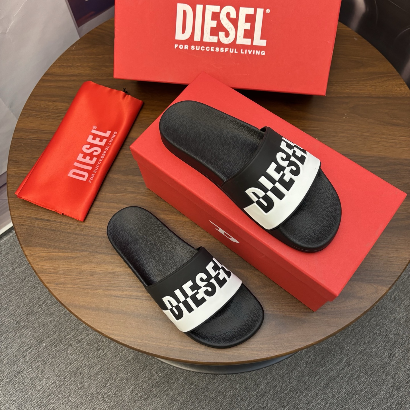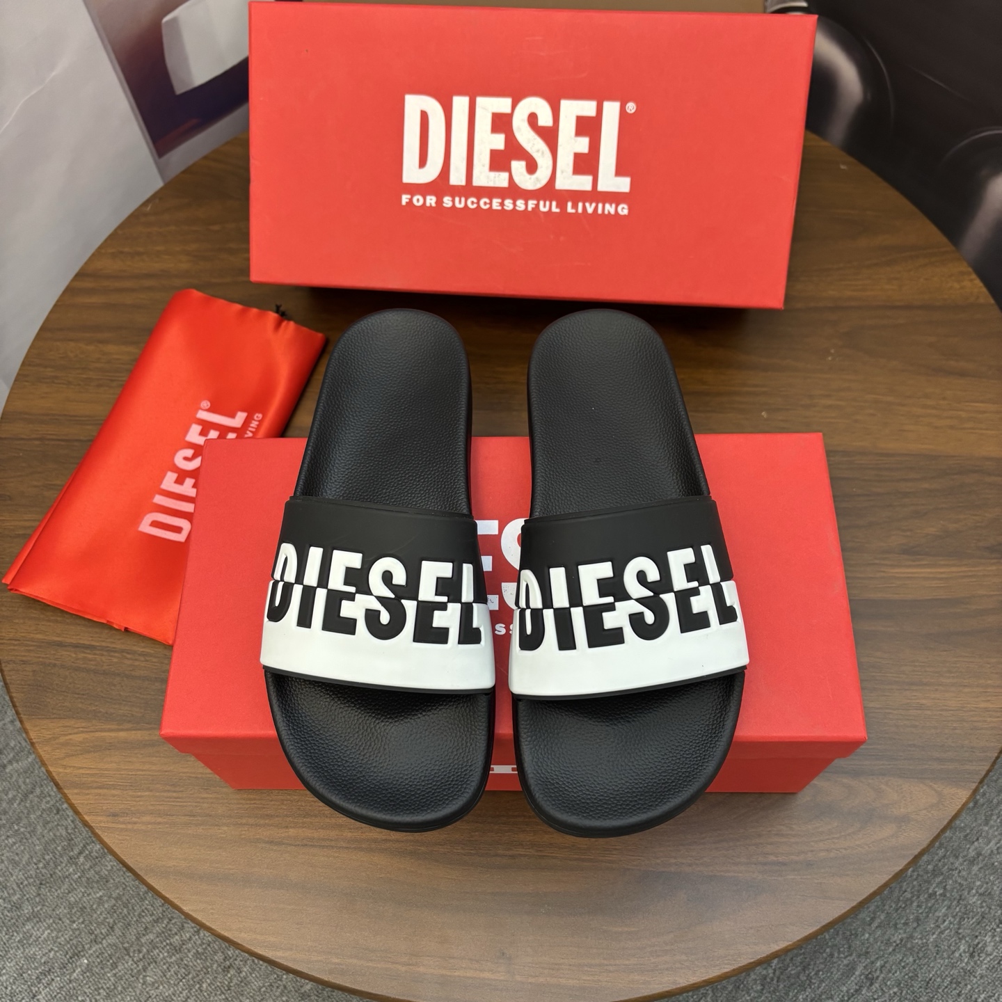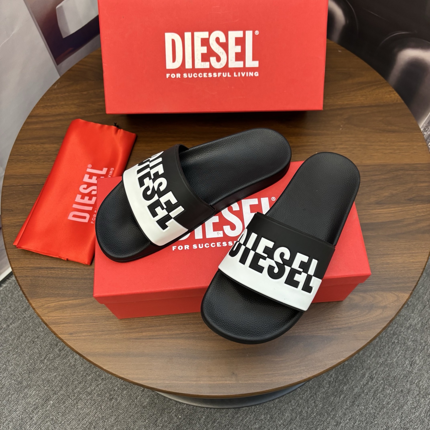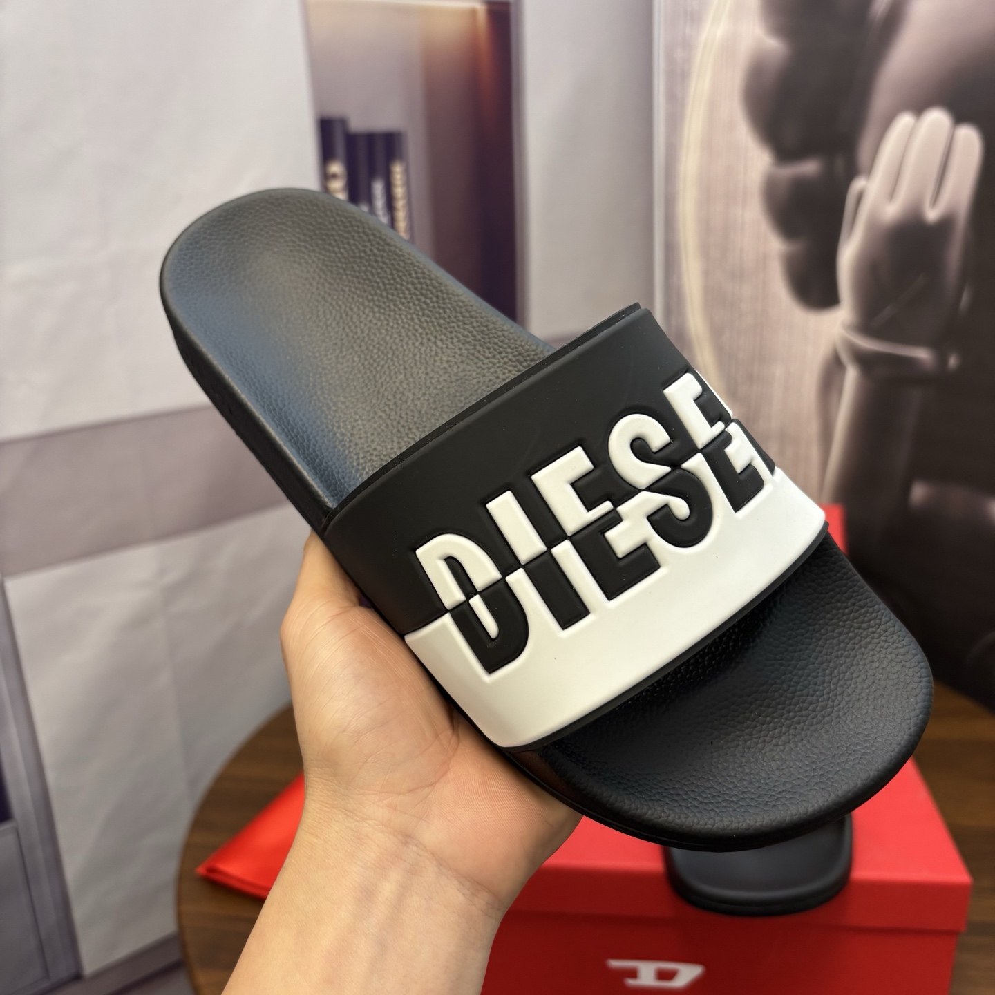 這款鞋子是AAAAA 1:1 質量(非常棒). 使用了和原版一模一樣的材料. 商標部分也保持了和DIESEL一樣. 圖片拍攝是實物鞋子拍攝, 您所收到的實物保證和我們圖片一模一樣.