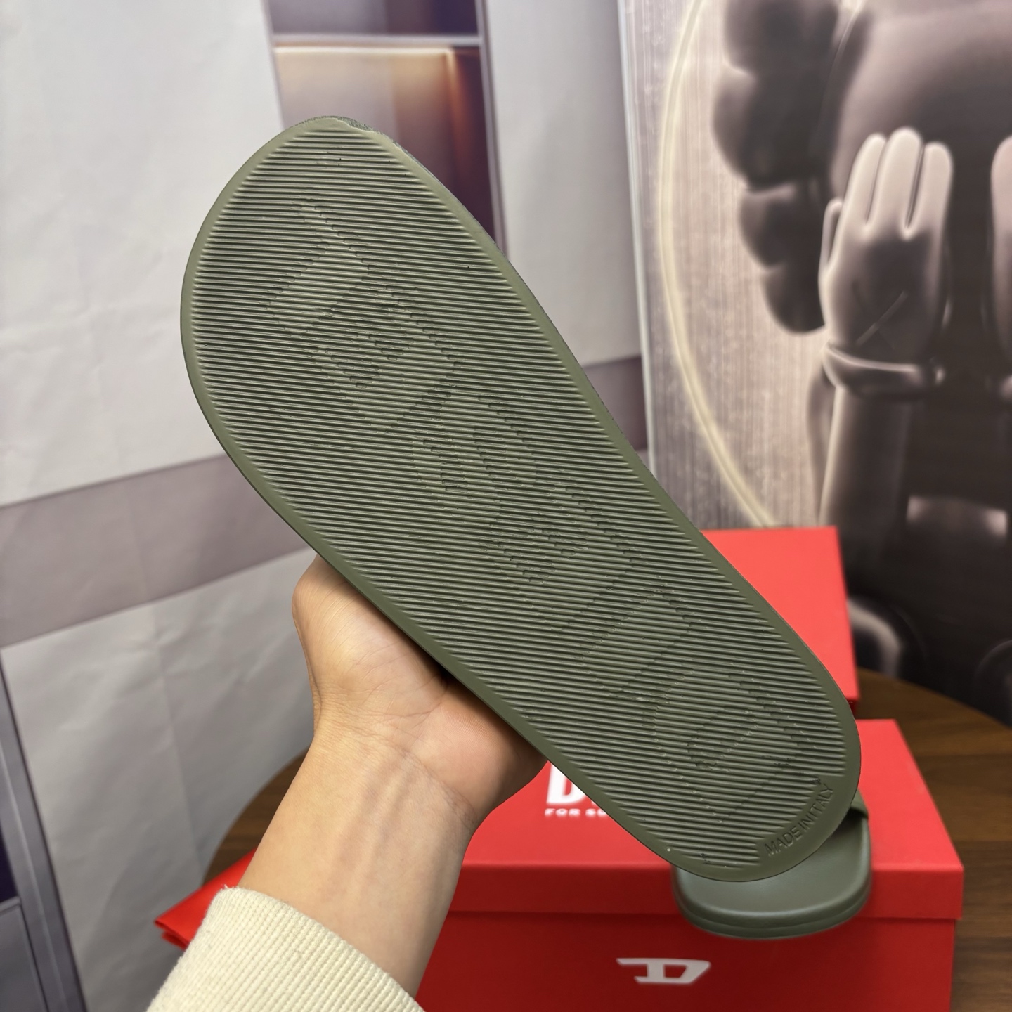 這款鞋子是AAAAA 1:1 質量(非常棒). 使用了和原版一模一樣的材料. 商標部分也保持了和DIESEL一樣. 圖片拍攝是實物鞋子拍攝, 您所收到的實物保證和我們圖片一模一樣.