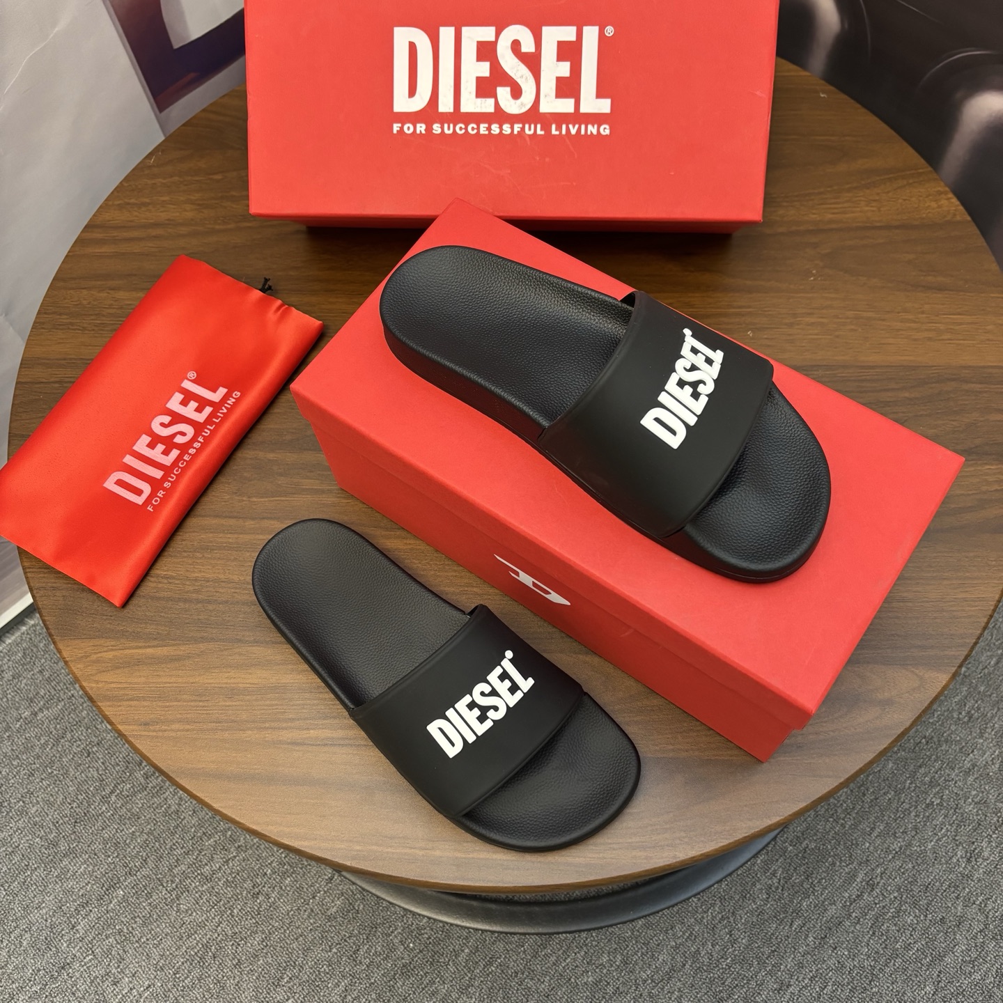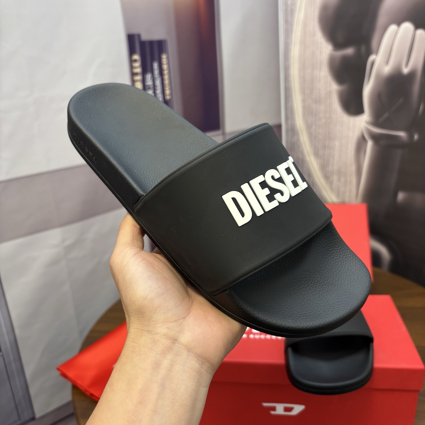 這款鞋子是AAAAA 1:1 質量(非常棒). 使用了和原版一模一樣的材料. 商標部分也保持了和DIESEL一樣. 圖片拍攝是實物鞋子拍攝, 您所收到的實物保證和我們圖片一模一樣.