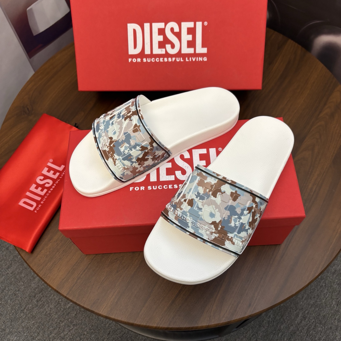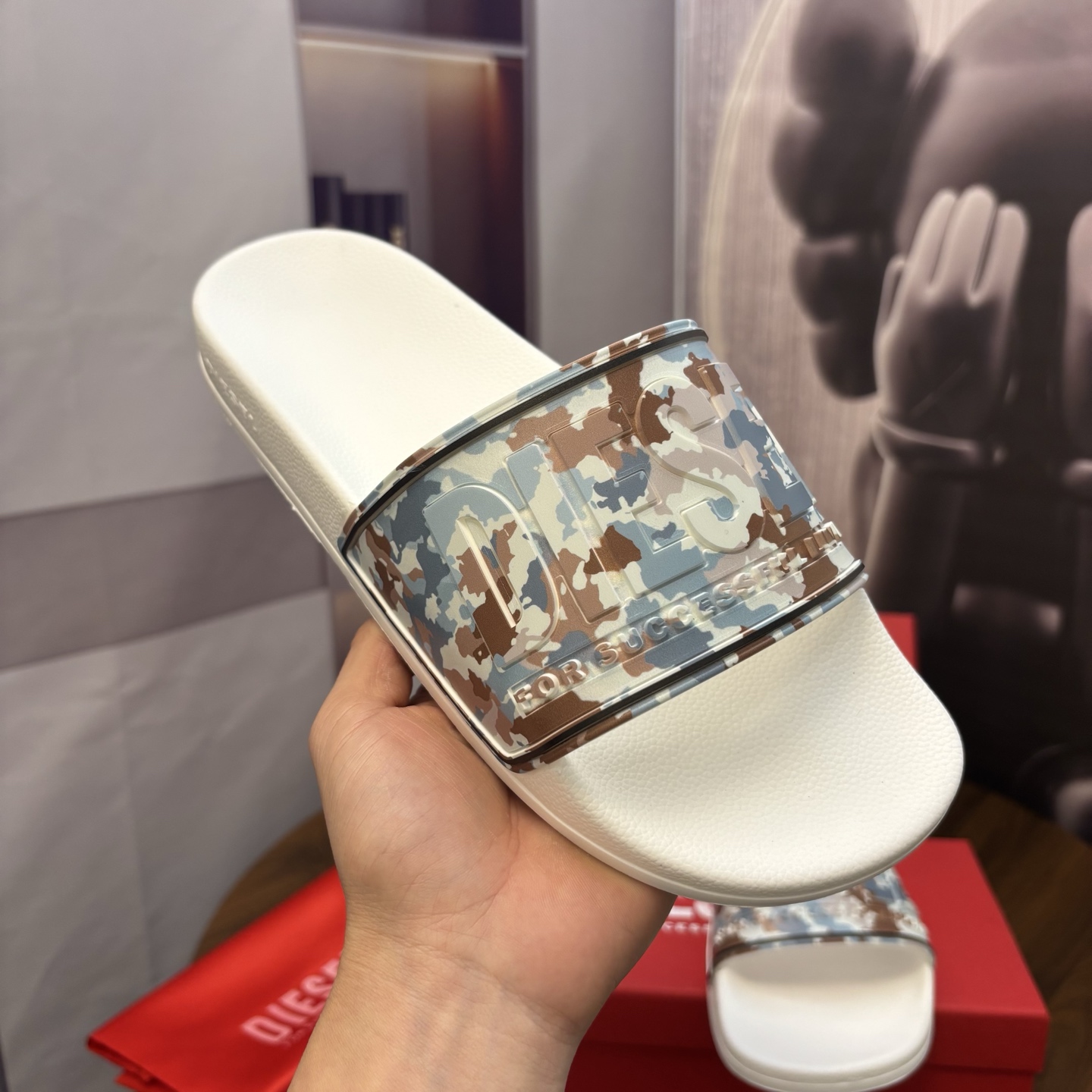 這款鞋子是AAAAA 1:1 質量(非常棒). 使用了和原版一模一樣的材料. 商標部分也保持了和DIESEL一樣. 圖片拍攝是實物鞋子拍攝, 您所收到的實物保證和我們圖片一模一樣.