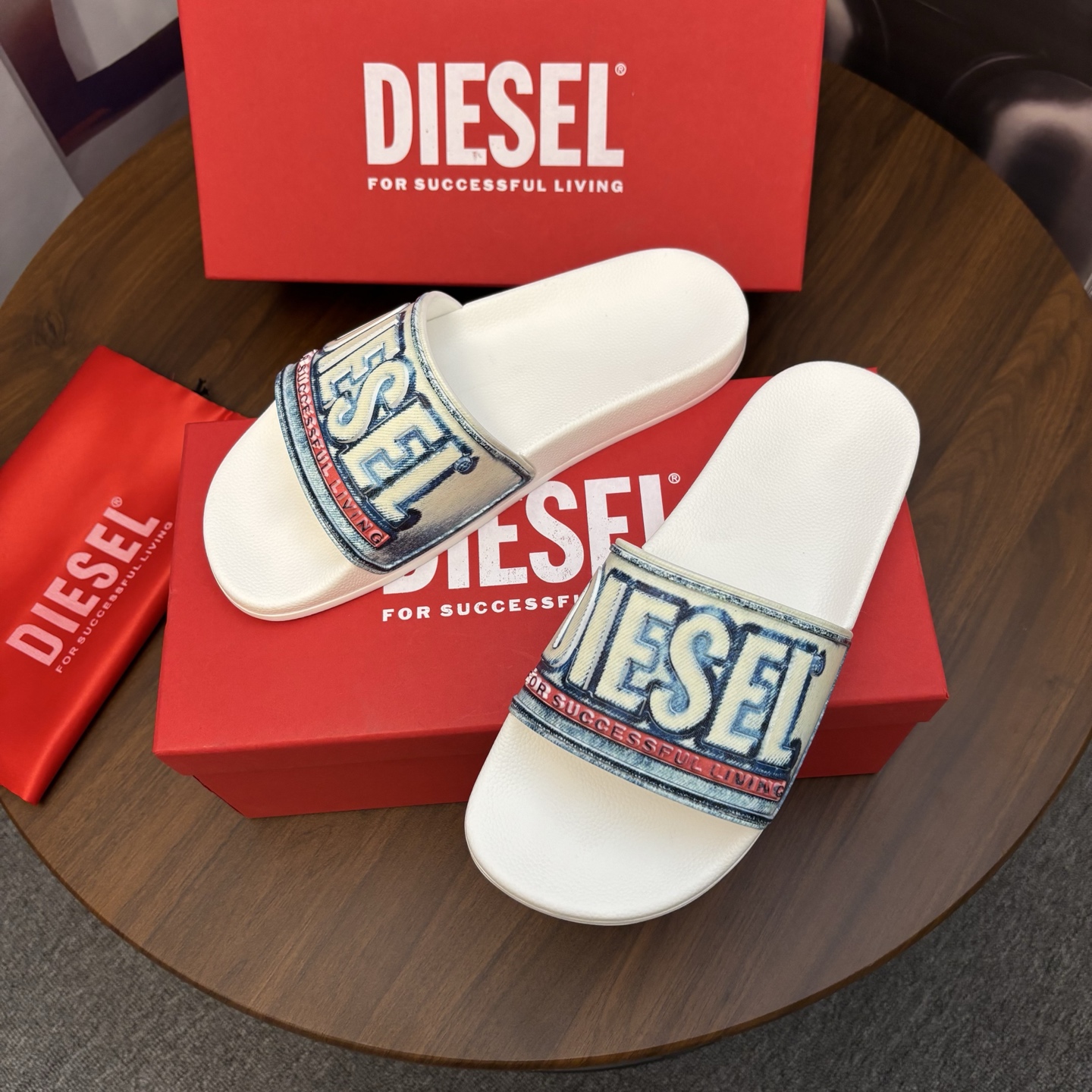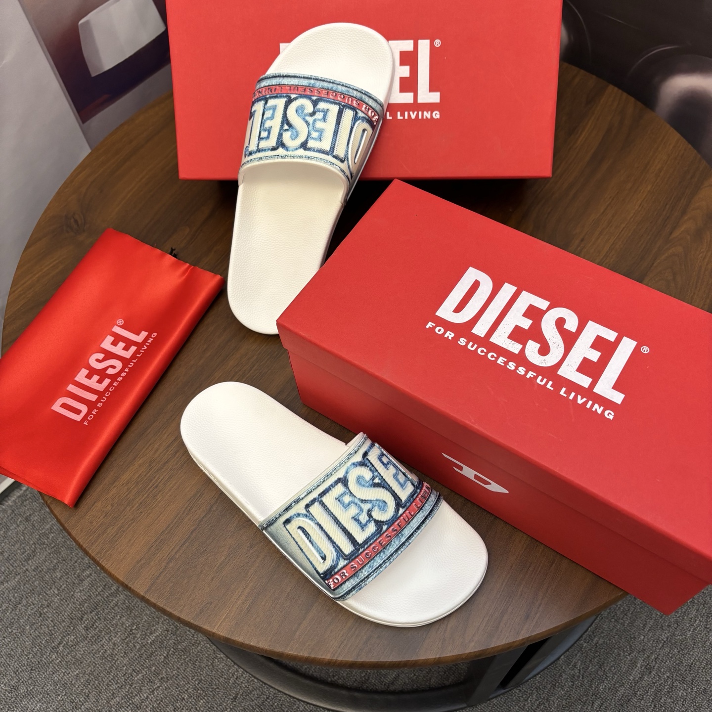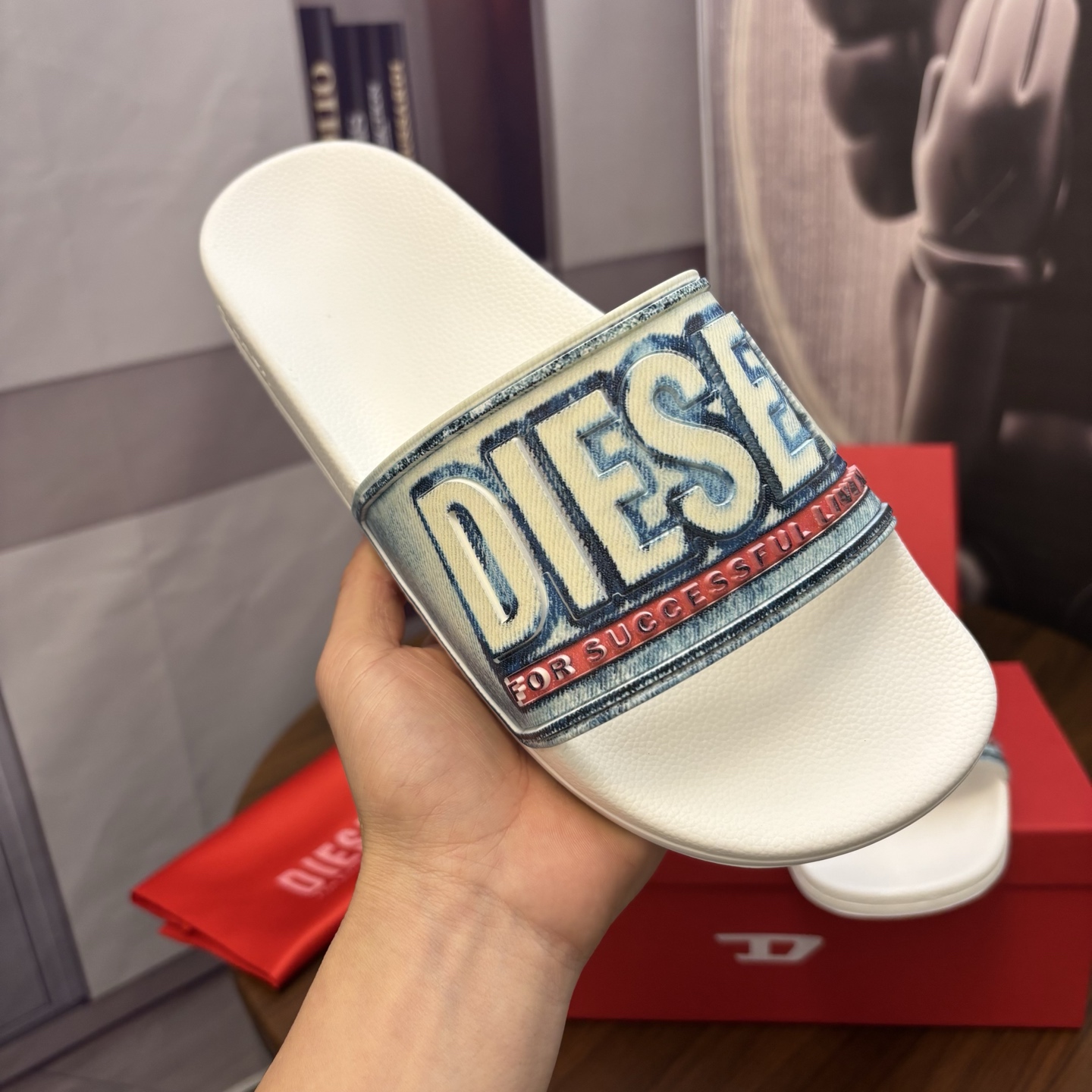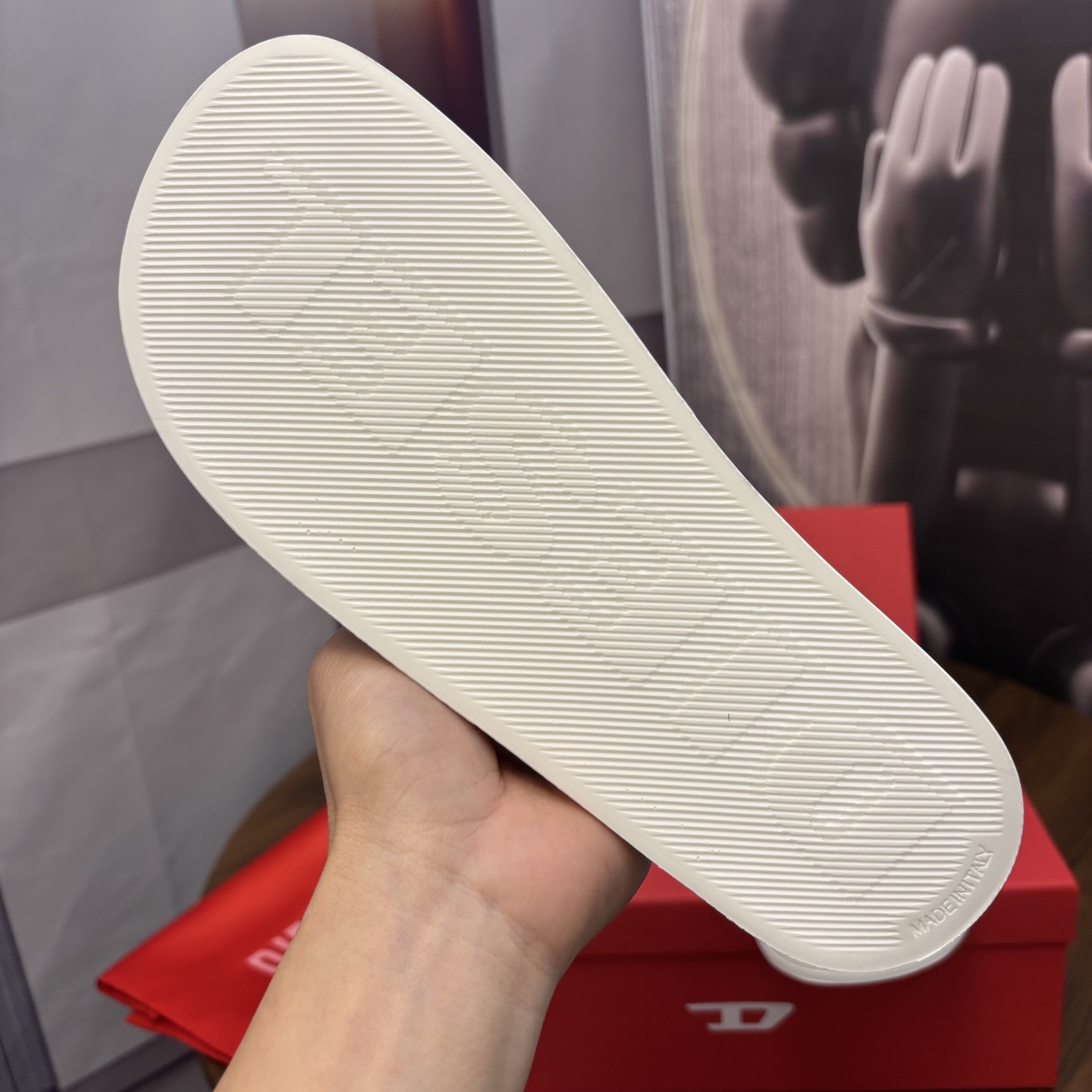 這款鞋子是AAAAA 1:1 質量(非常棒). 使用了和原版一模一樣的材料. 商標部分也保持了和DIESEL一樣. 圖片拍攝是實物鞋子拍攝, 您所收到的實物保證和我們圖片一模一樣.