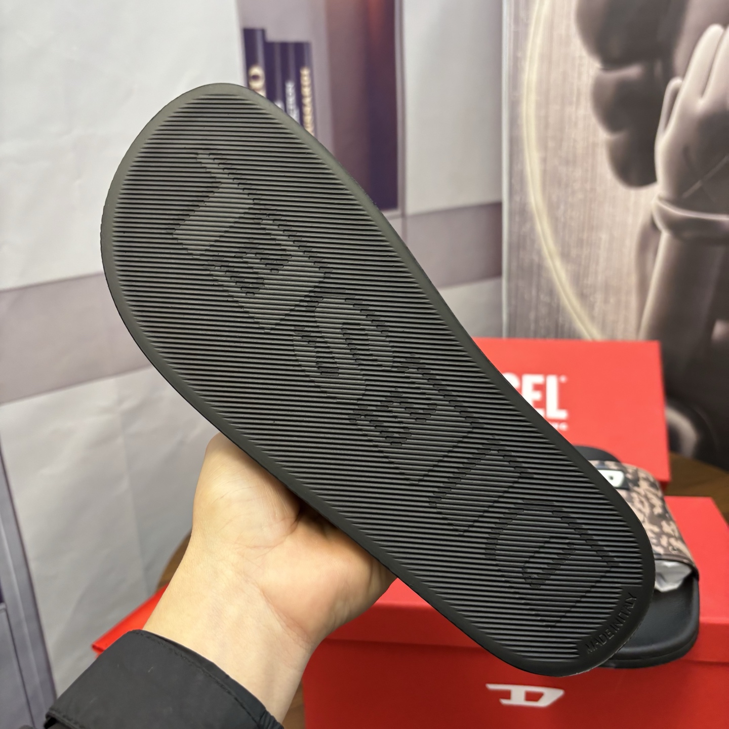 這款鞋子是AAAAA 1:1 質量(非常棒). 使用了和原版一模一樣的材料. 商標部分也保持了和DIESEL一樣. 圖片拍攝是實物鞋子拍攝, 您所收到的實物保證和我們圖片一模一樣.
