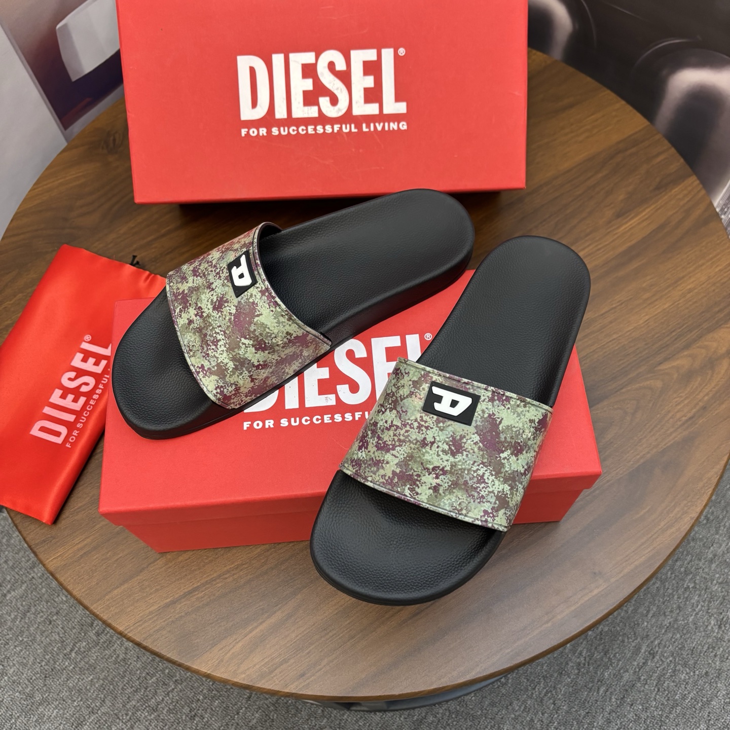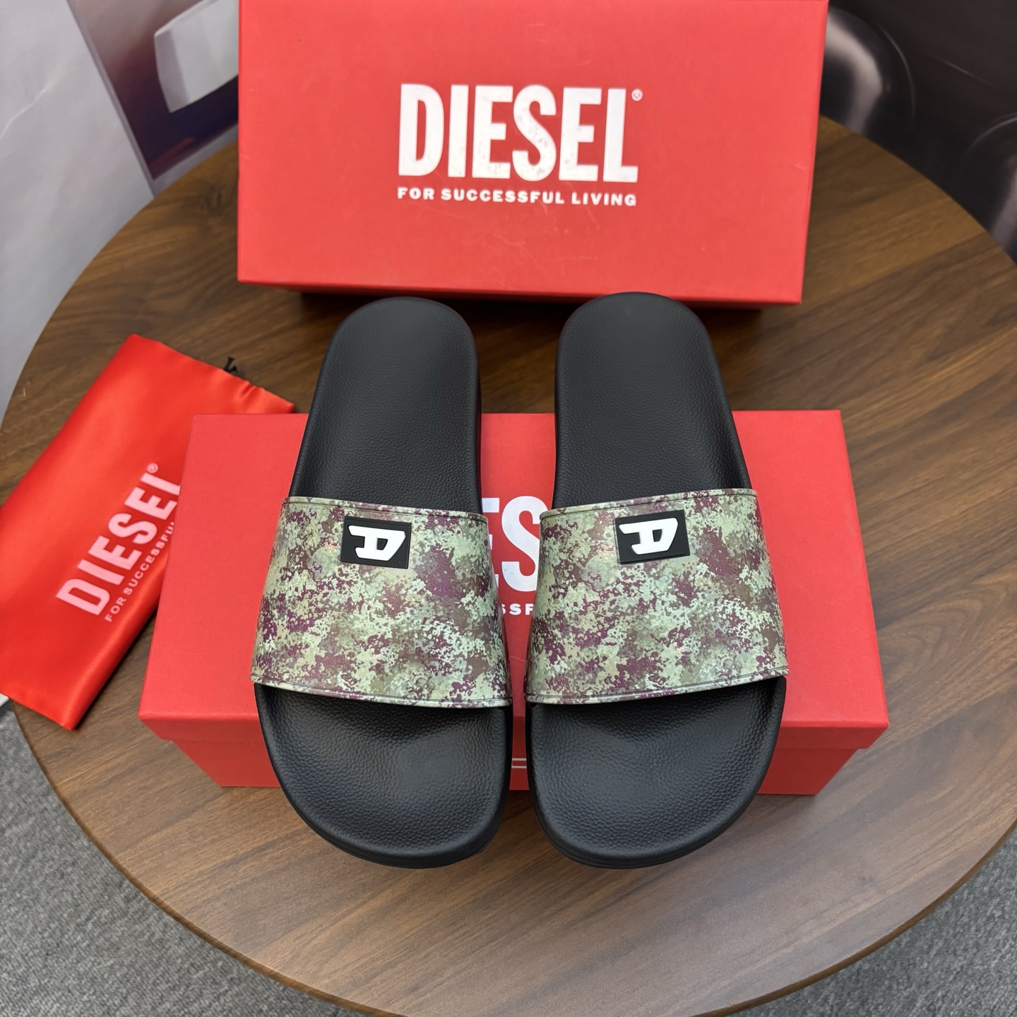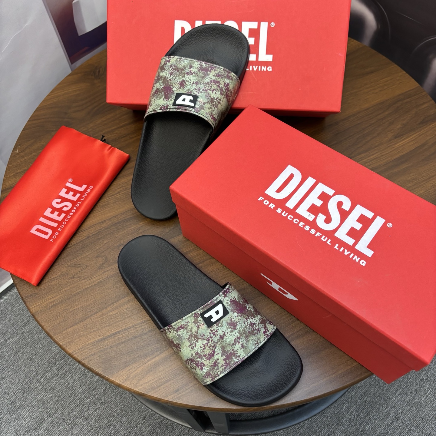 這款鞋子是AAAAA 1:1 質量(非常棒). 使用了和原版一模一樣的材料. 商標部分也保持了和DIESEL一樣. 圖片拍攝是實物鞋子拍攝, 您所收到的實物保證和我們圖片一模一樣.