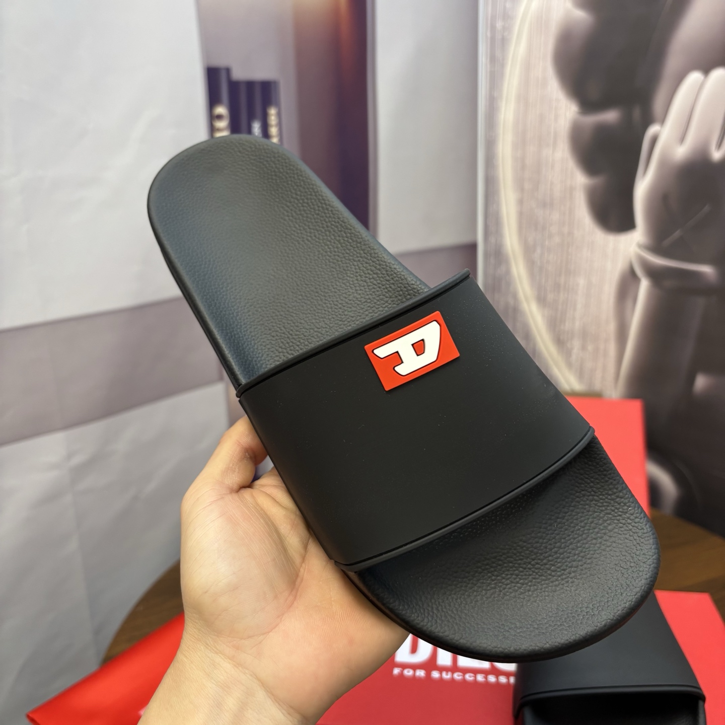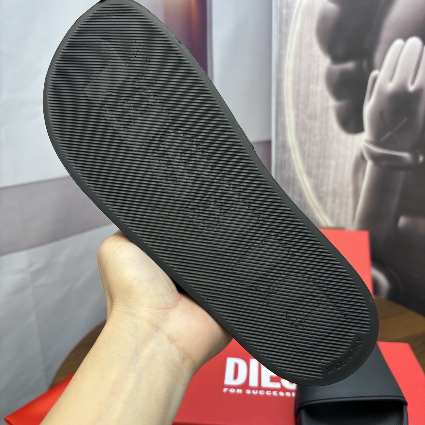 這款鞋子是AAAAA 1:1 質量(非常棒). 使用了和原版一模一樣的材料. 商標部分也保持了和DIESEL一樣. 圖片拍攝是實物鞋子拍攝, 您所收到的實物保證和我們圖片一模一樣.