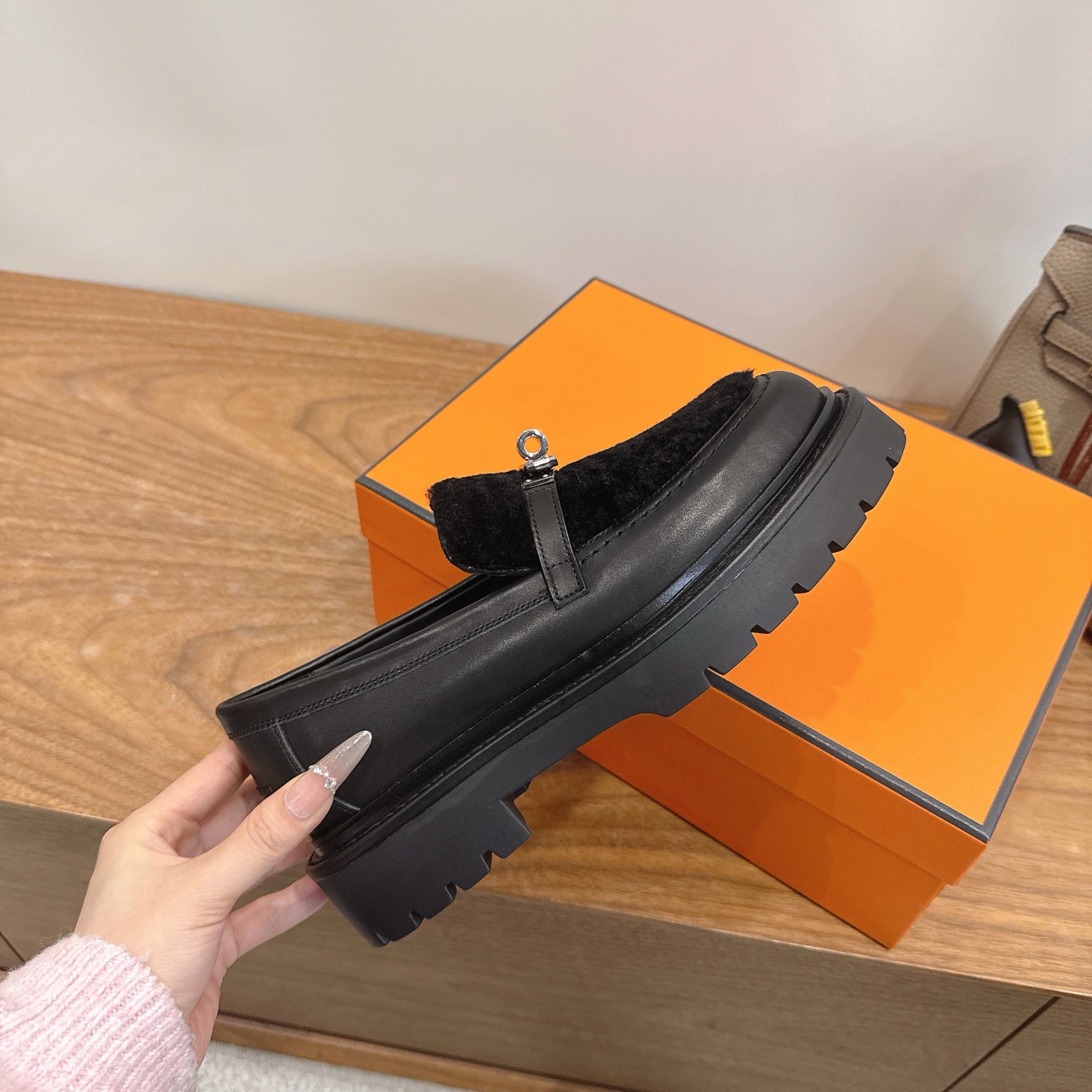 這款鞋子是AAAAA 1:1 質量(非常棒). 使用了和原版一模一樣的材料. 商標部分也保持了和愛馬仕/Hermes一樣. 圖片拍攝是實物鞋子拍攝, 您所收到的實物保證和我們圖片一模一樣.