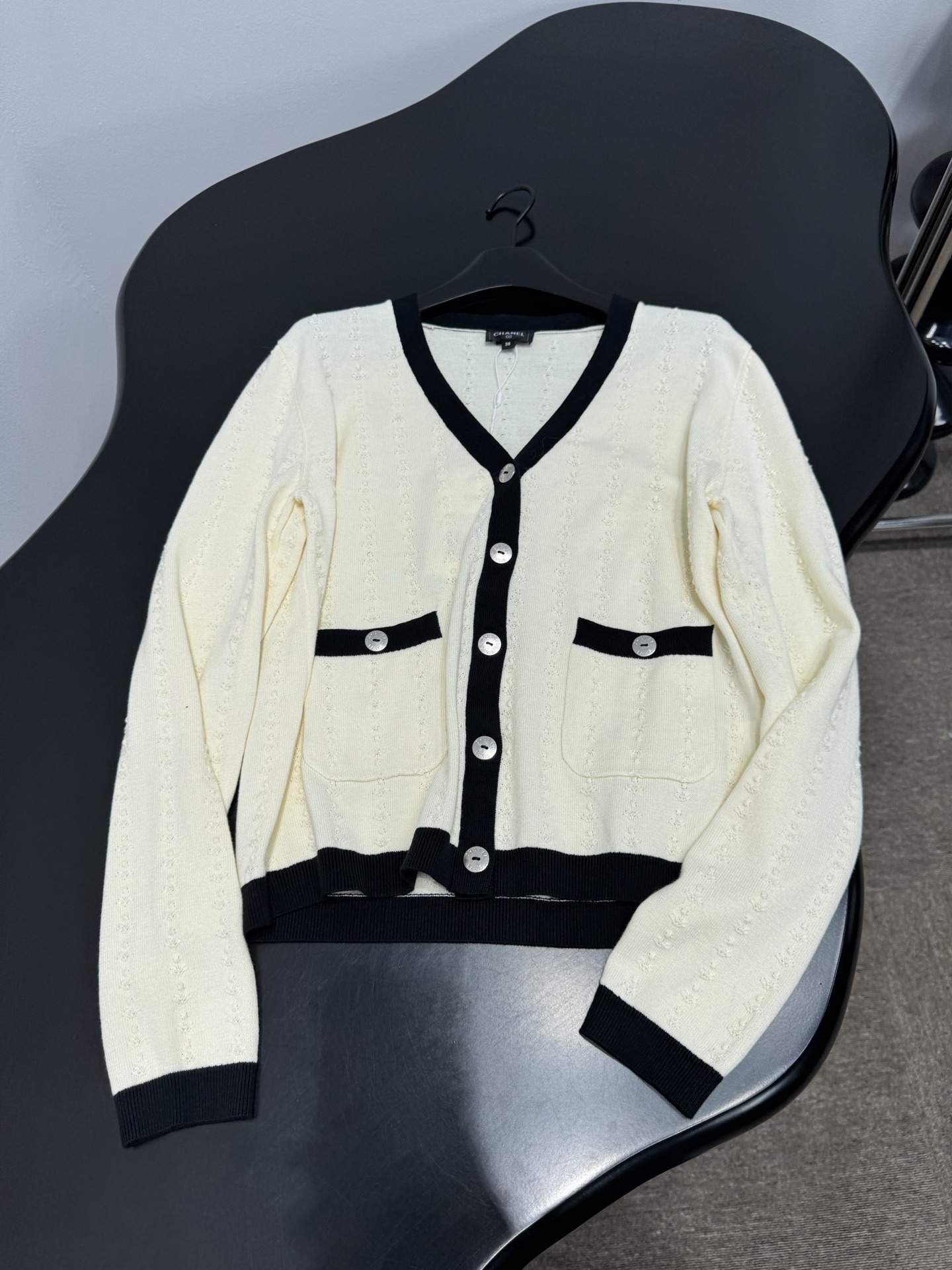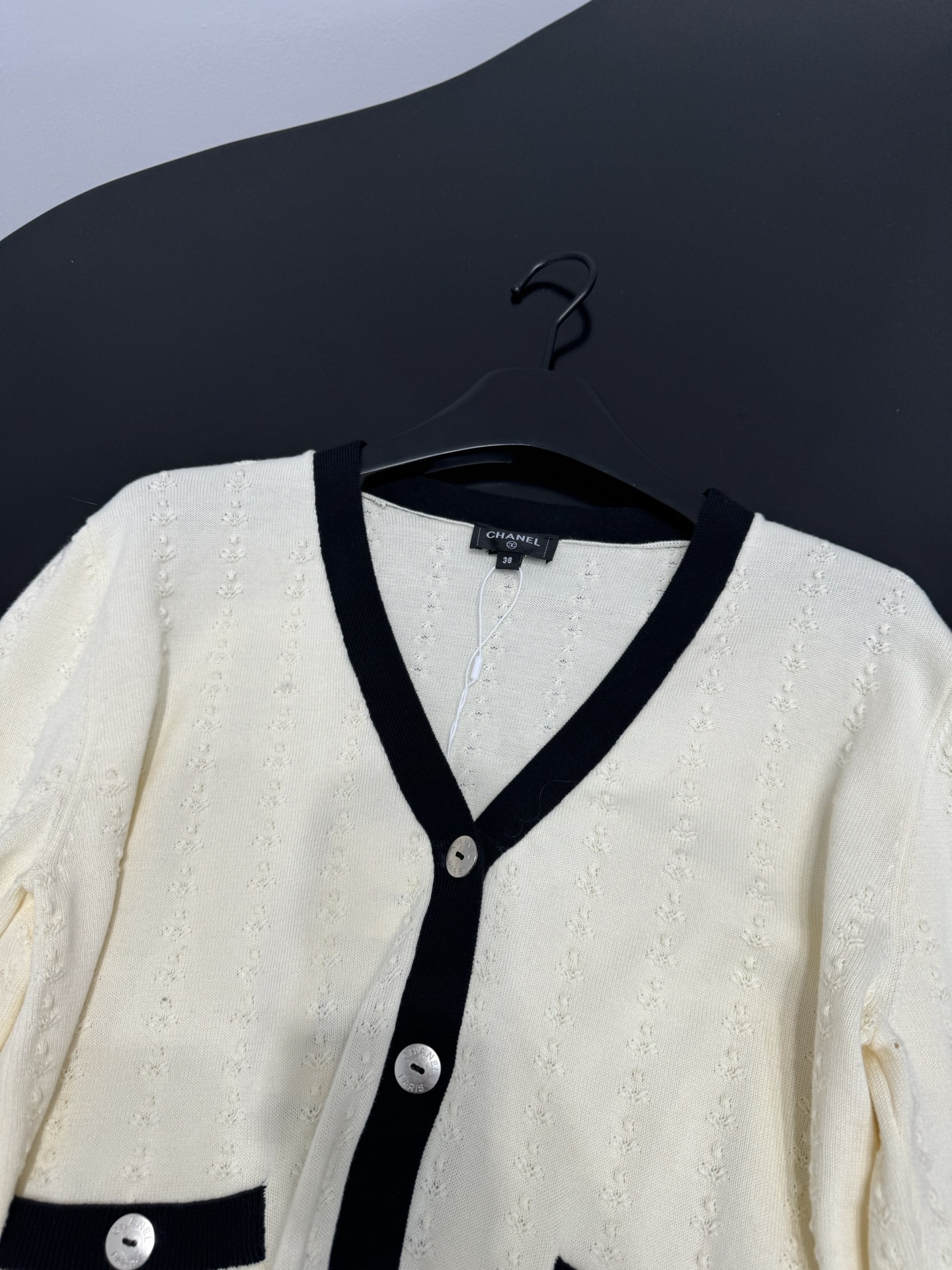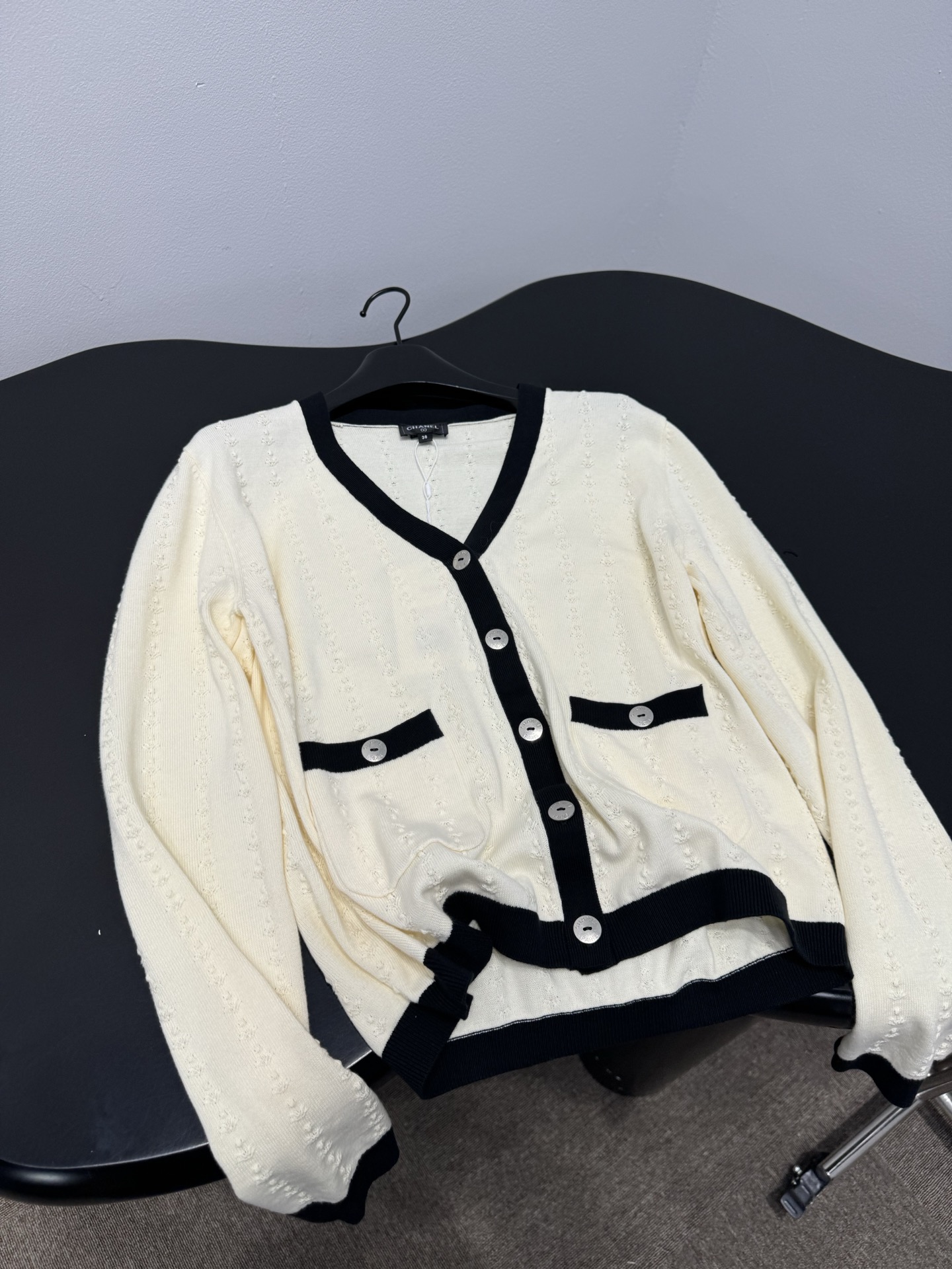 這款衣服是AAAAA 1:1 質量(非常棒). 使用了和原版一模一樣的材料. 商標部分也保持了和香奈兒/Chanel一樣. 圖片拍攝是實物衣服拍攝, 您所收到的實物保證和我們圖片一模一樣.