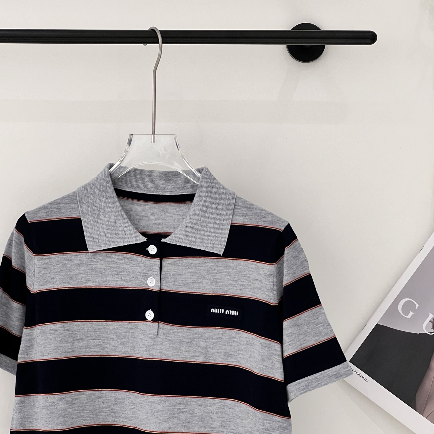 這款衣服是AAAAA 1:1 質量(非常棒). 使用了和原版一模一樣的材料. 商標部分也保持了和繆繆/Miu Miu一樣. 圖片拍攝是實物衣服拍攝, 您所收到的實物保證和我們圖片一模一樣.