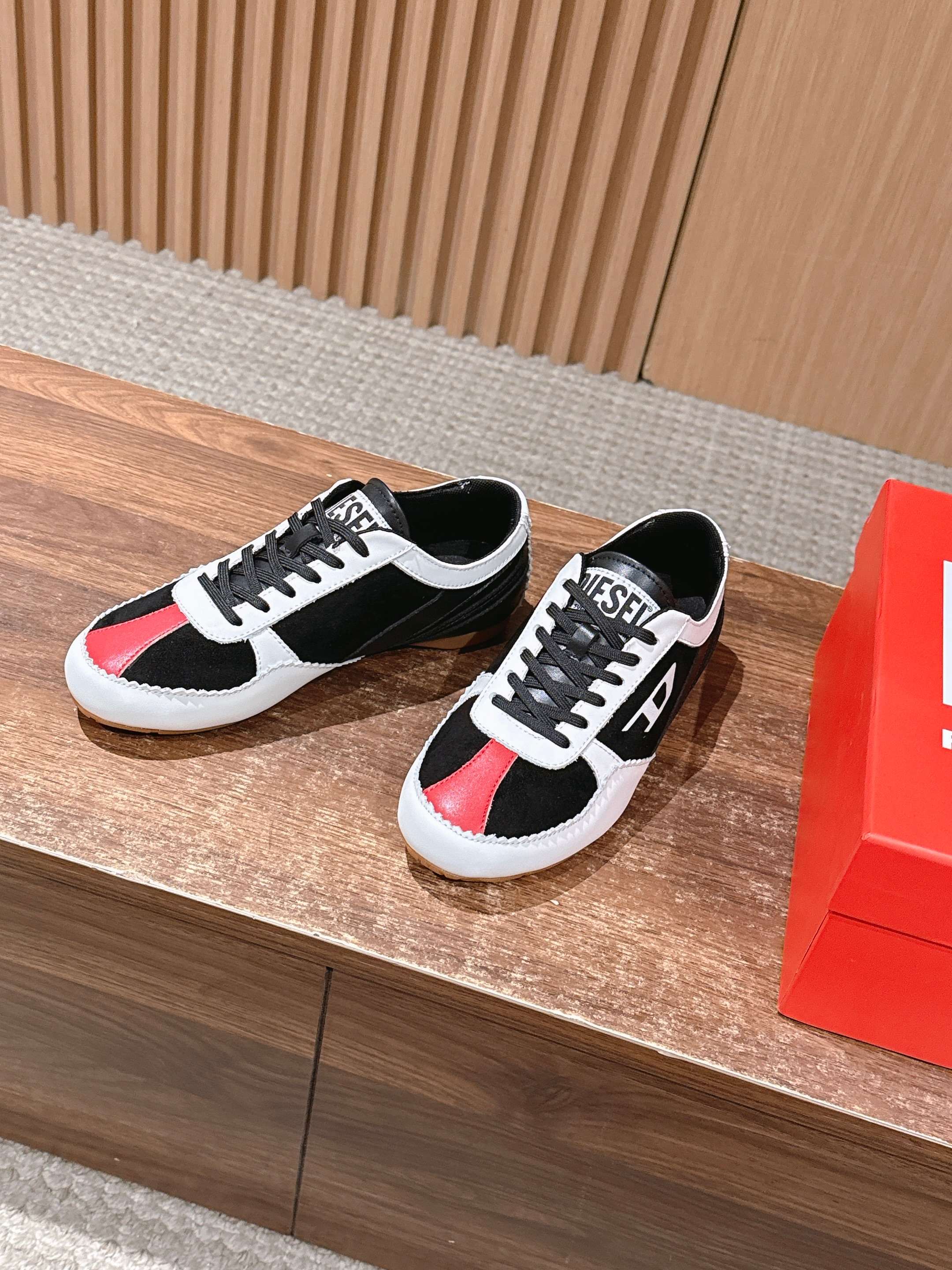 這款鞋子是AAAAA 1:1 質量(非常棒). 使用了和原版一模一樣的材料. 商標部分也保持了和DIESEL一樣. 圖片拍攝是實物鞋子拍攝, 您所收到的實物保證和我們圖片一模一樣.
