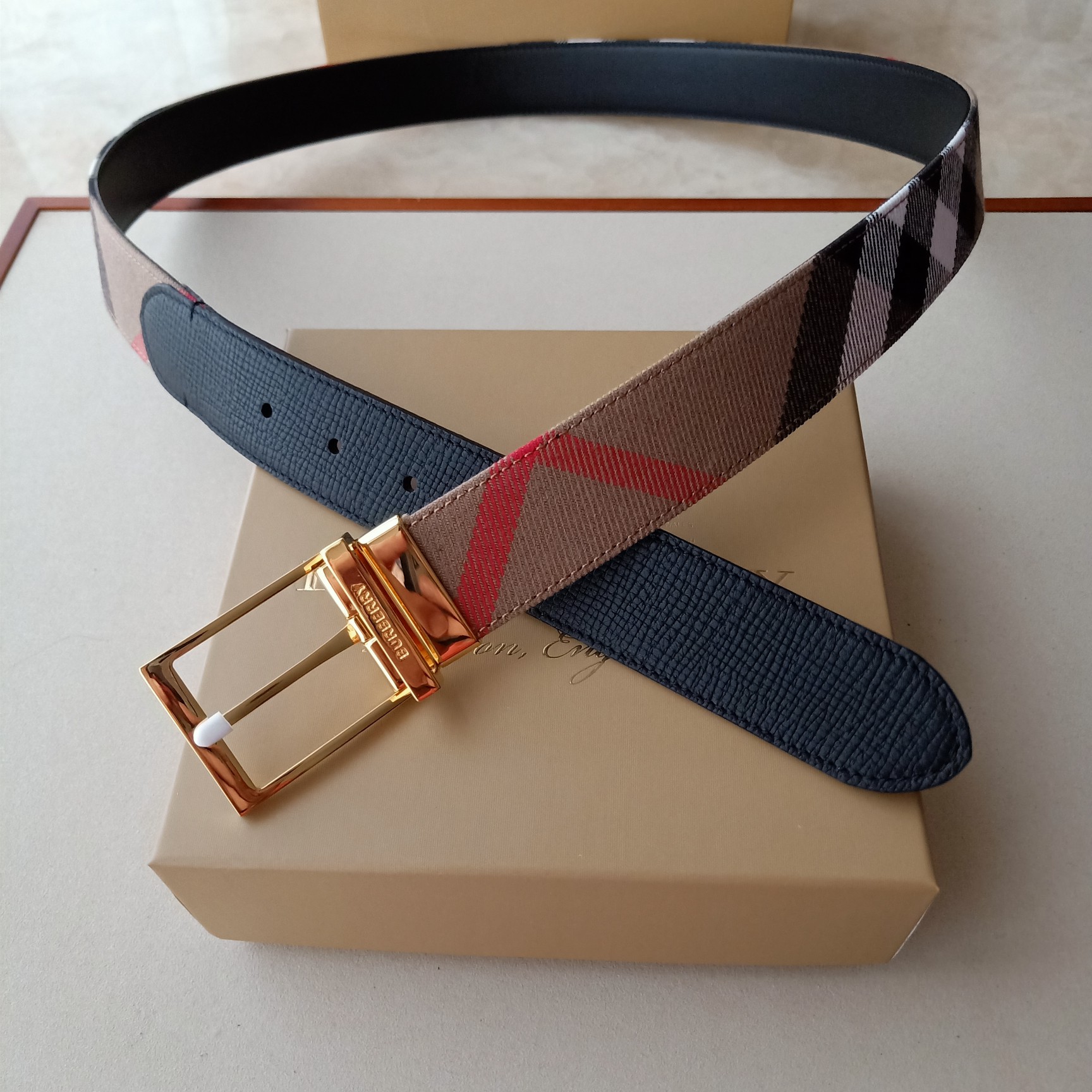 這款皮帶是AAAAA 1:1 質量(非常棒). 使用了和原版一模一樣的材料. 商標部分也保持了和巴寶莉/Burberry一樣. 圖片拍攝是實物皮帶拍攝, 您所收到的實物保證和我們圖片一模一樣.