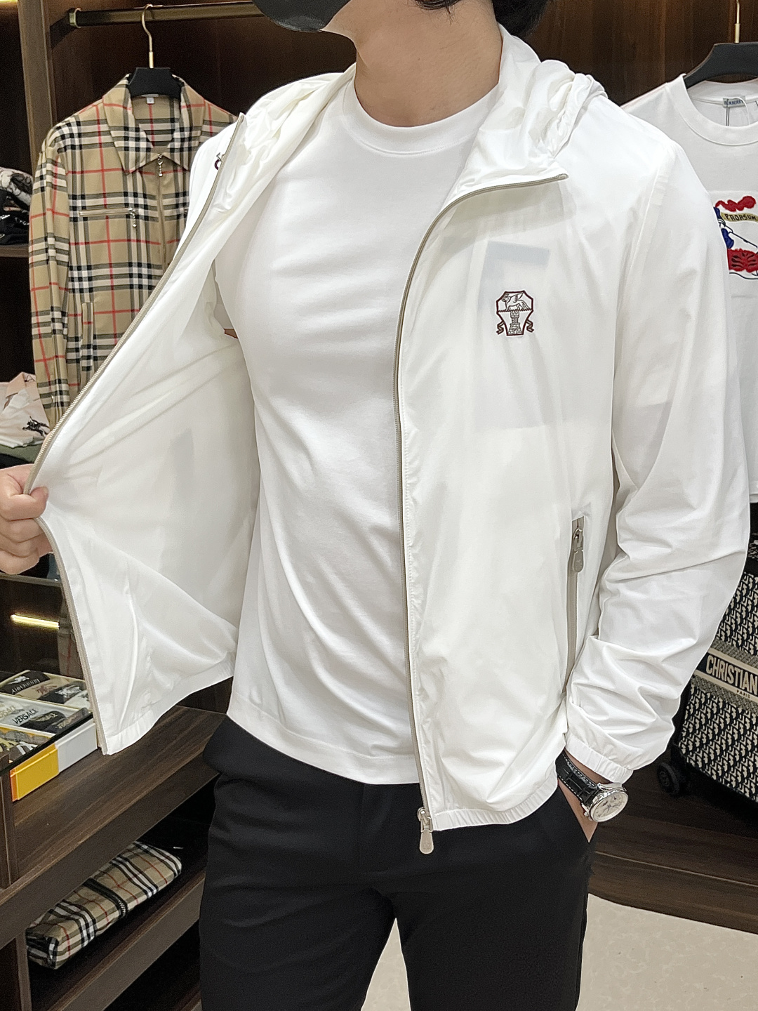 這款衣服是AAAAA 1:1 質量(非常棒). 使用了和原版一模一樣的材料. 商標部分也保持了和Brunello Cucinelli一樣. 圖片拍攝是實物衣服拍攝, 您所收到的實物保證和我們圖片一模一樣.