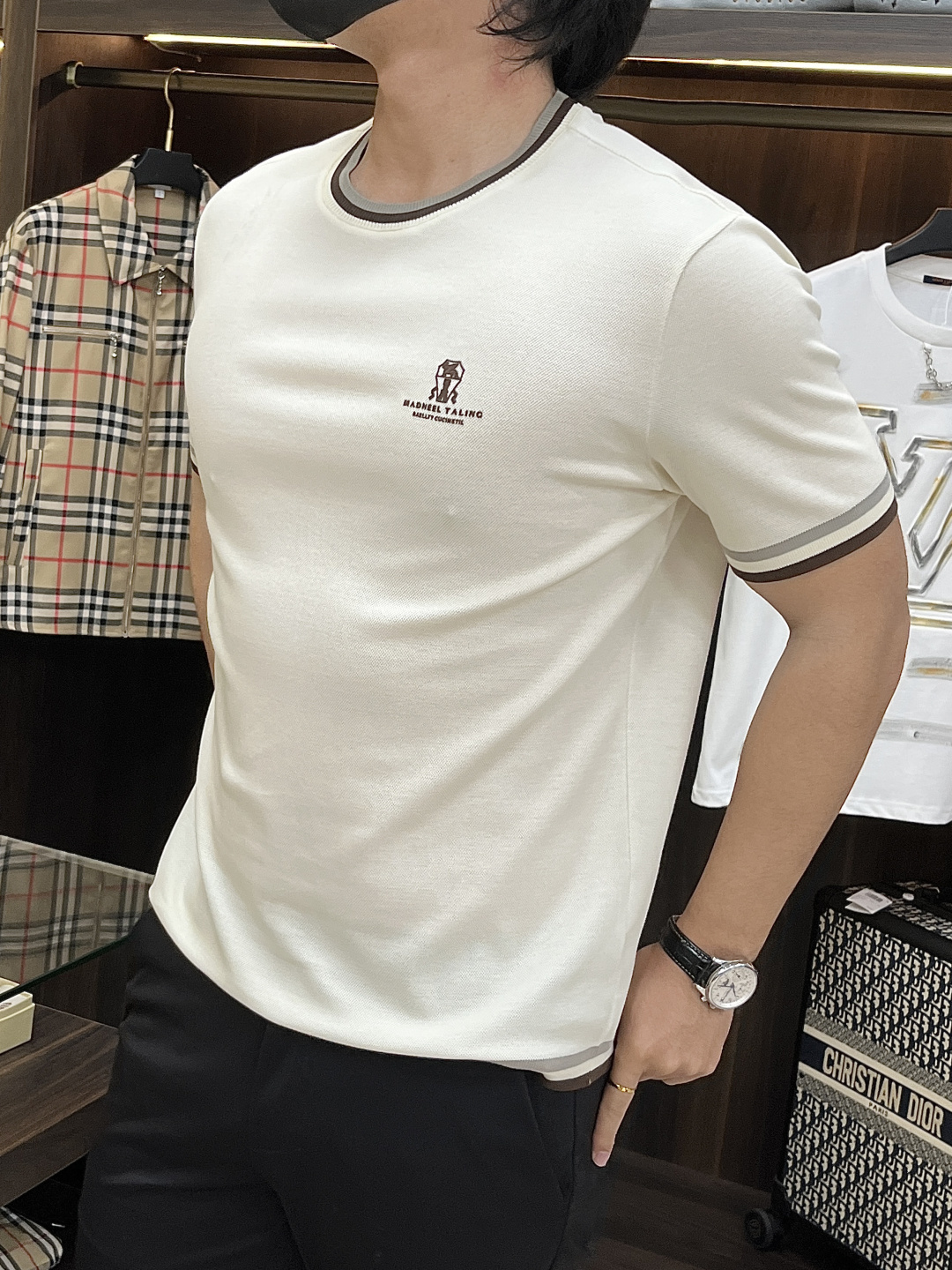 這款衣服是AAAAA 1:1 質量(非常棒). 使用了和原版一模一樣的材料. 商標部分也保持了和Brunello Cucinelli一樣. 圖片拍攝是實物衣服拍攝, 您所收到的實物保證和我們圖片一模一樣.