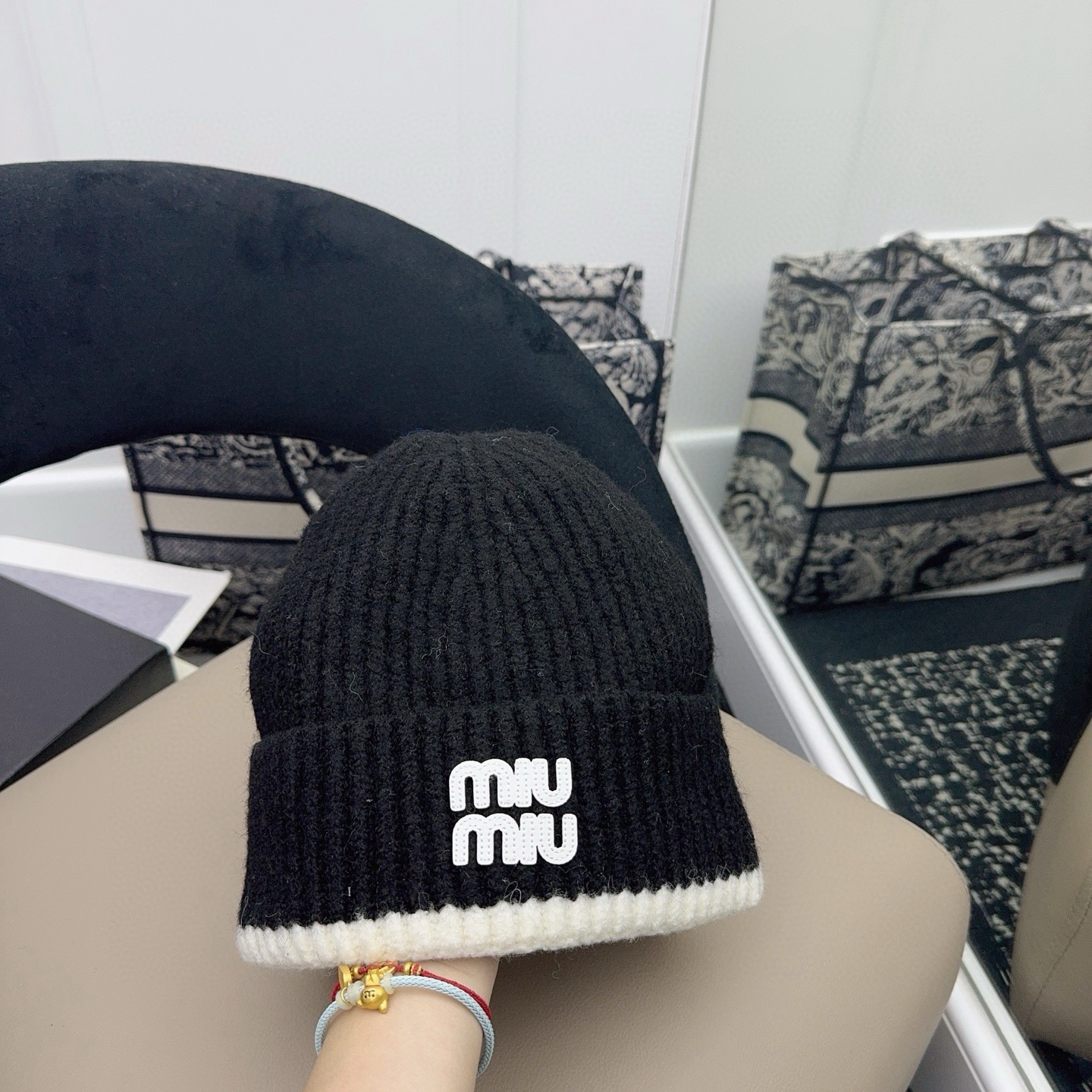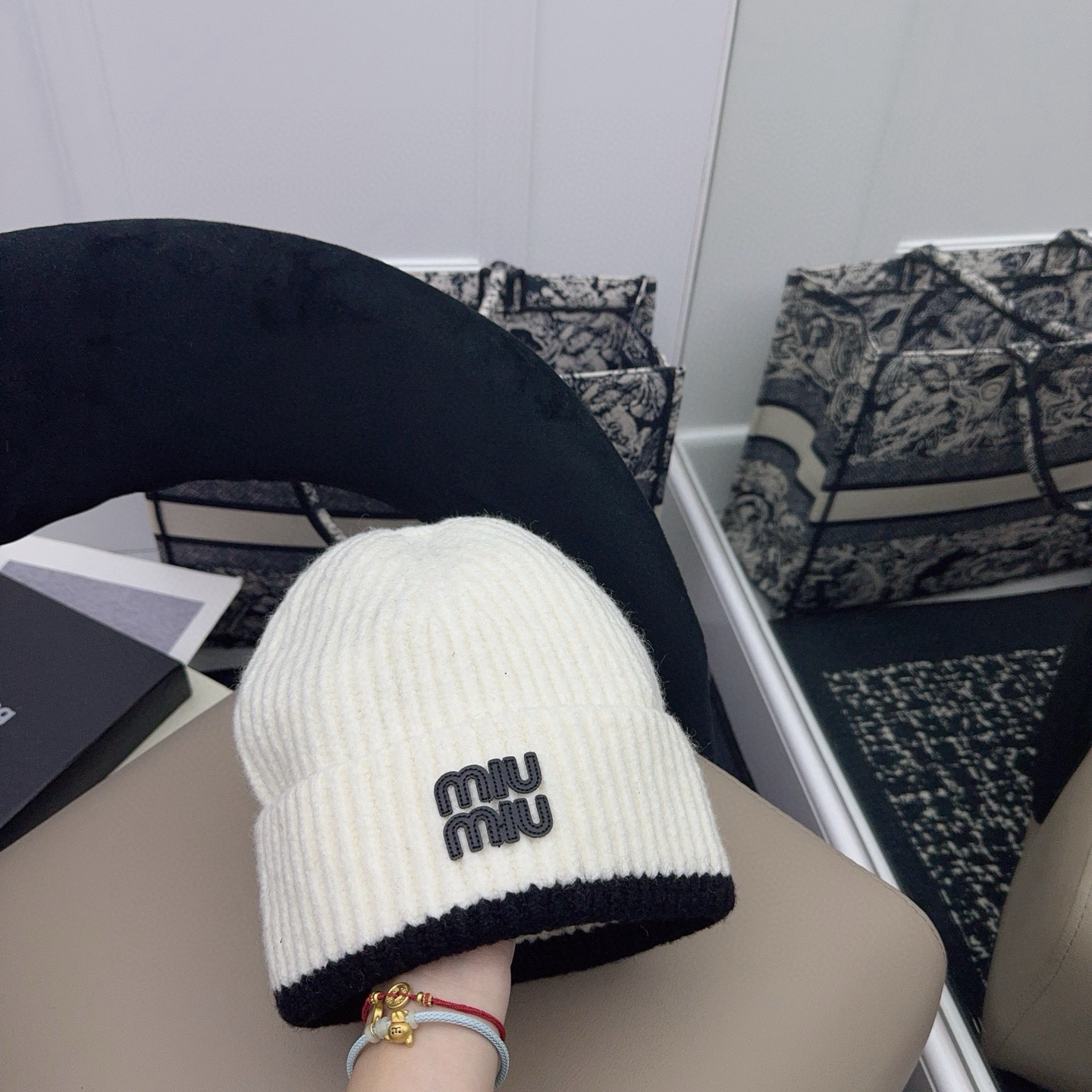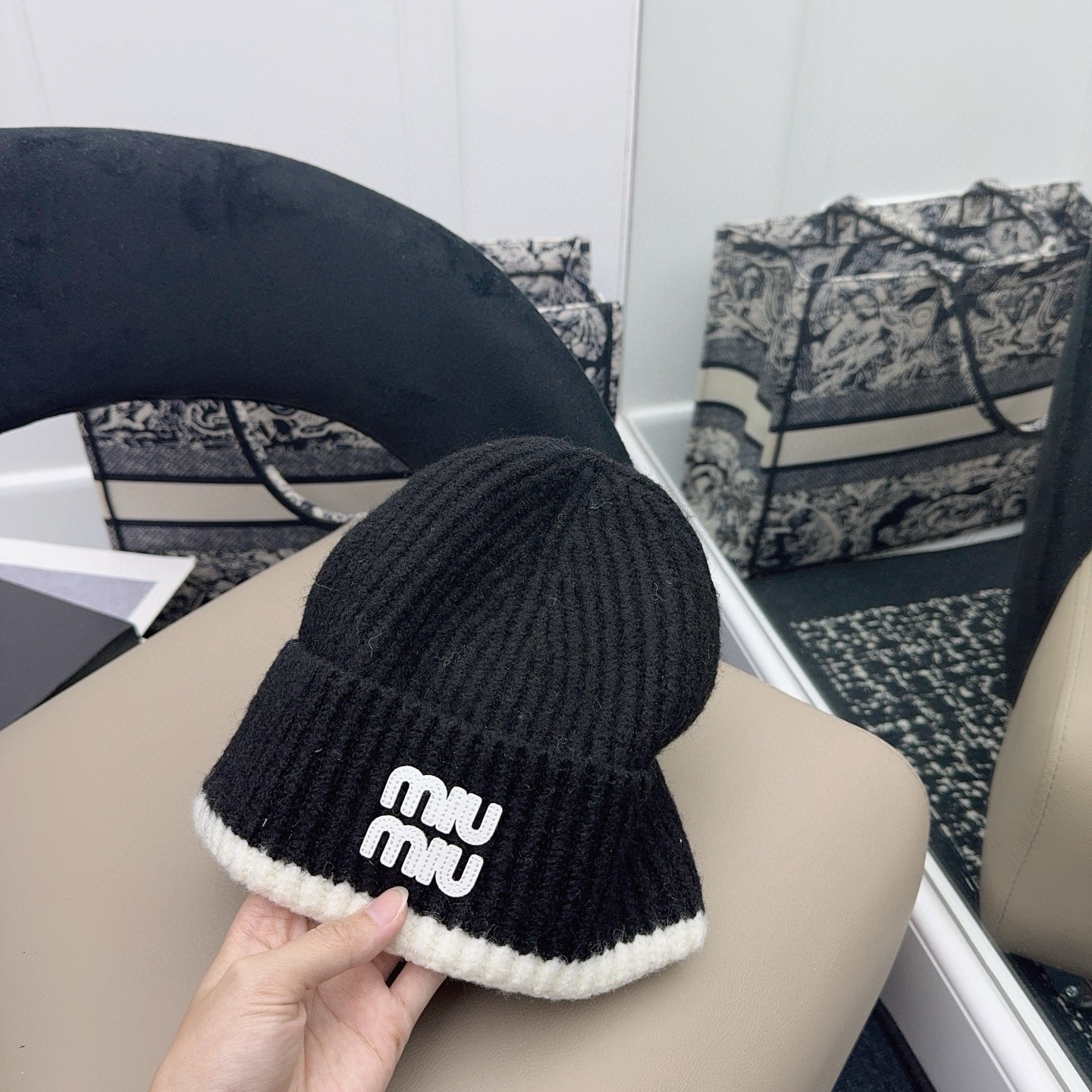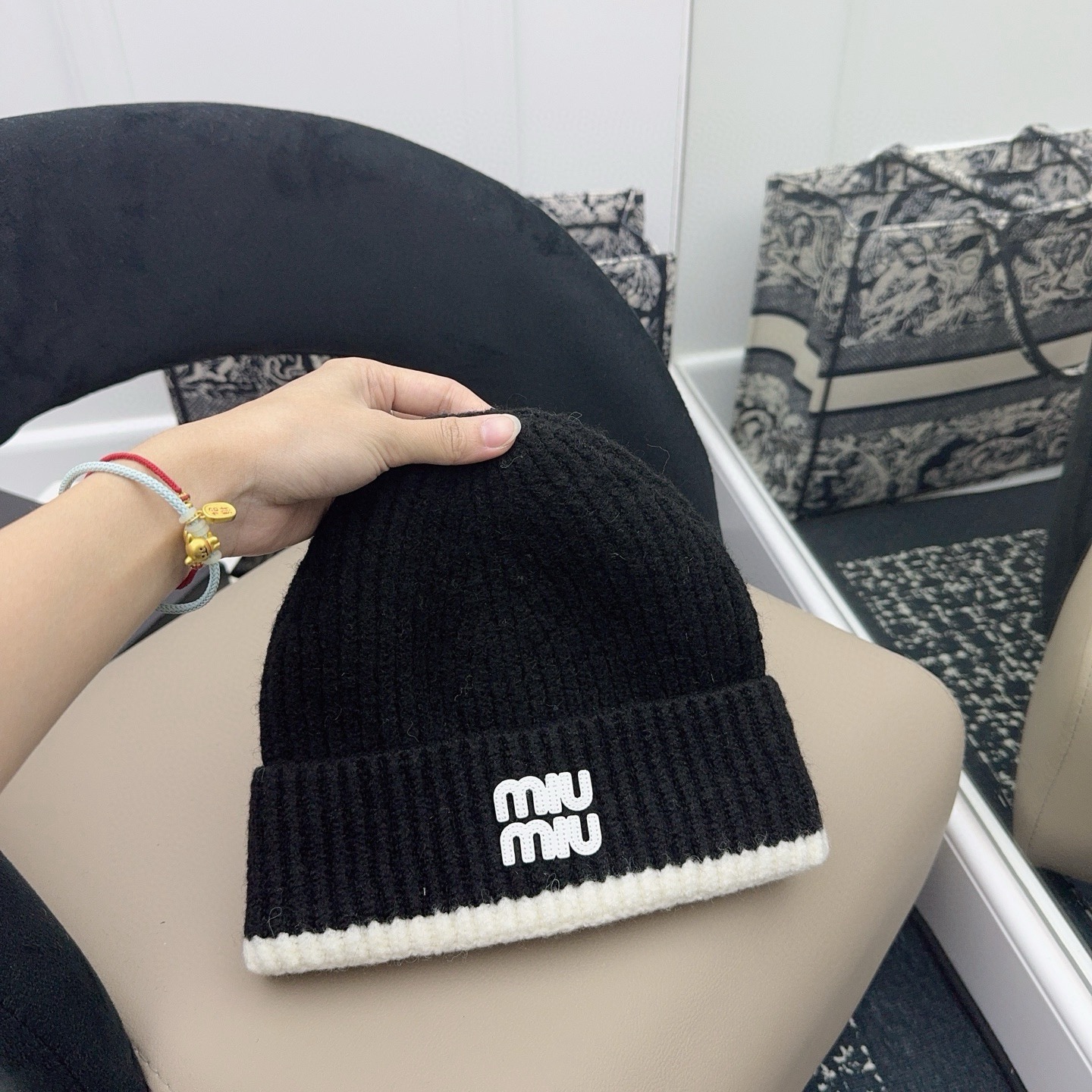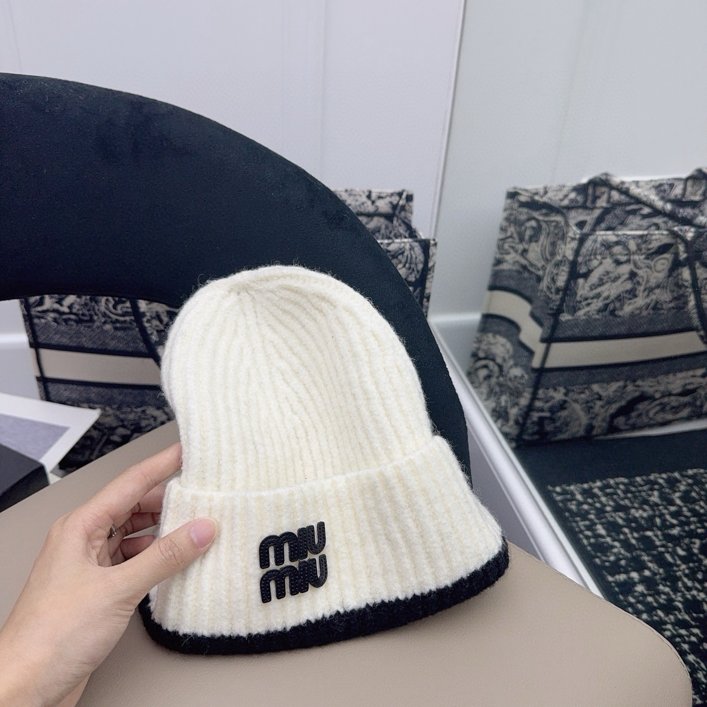 這款帽子是AAAAA 1:1 質量(非常棒). 使用了和原版一模一樣的材料. 商標部分也保持了和繆繆/Miu Miu一樣. 圖片拍攝是實物帽子拍攝, 您所收到的實物保證和我們圖片一模一樣.