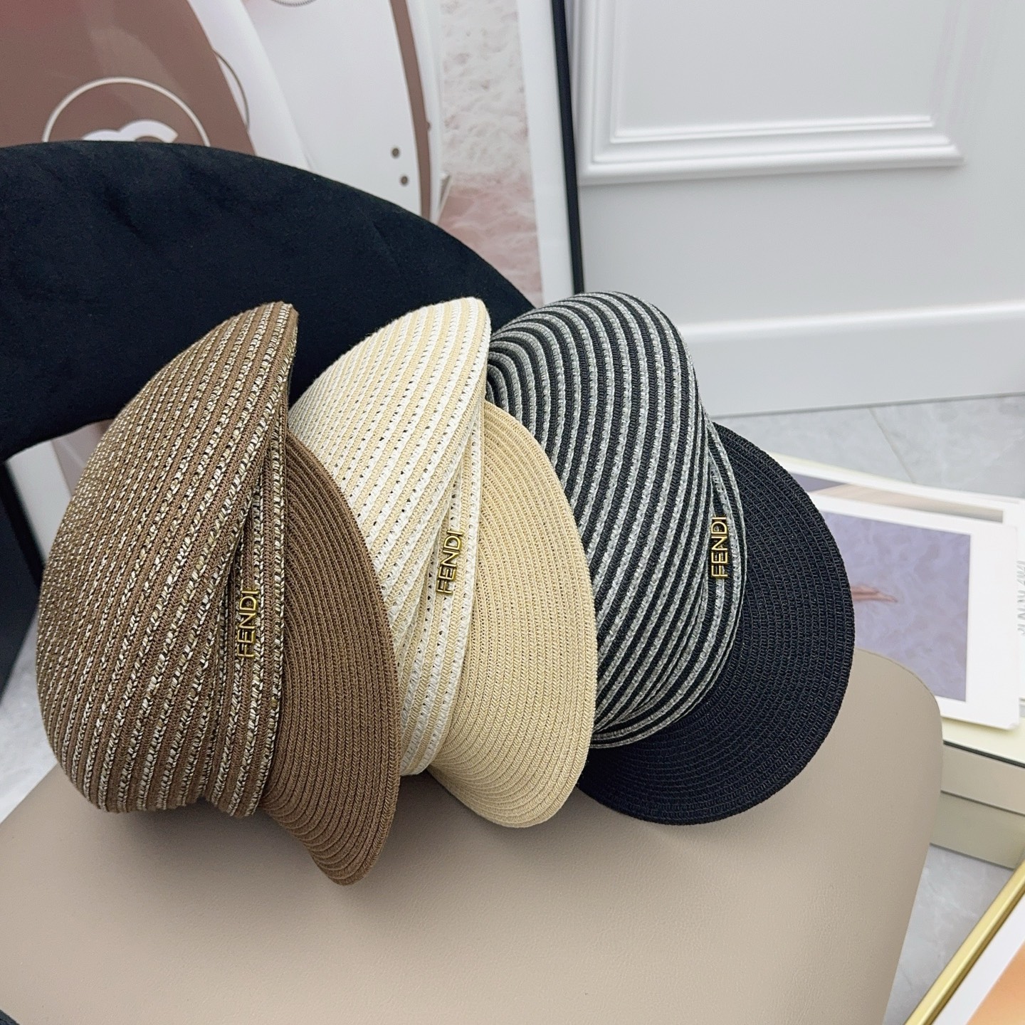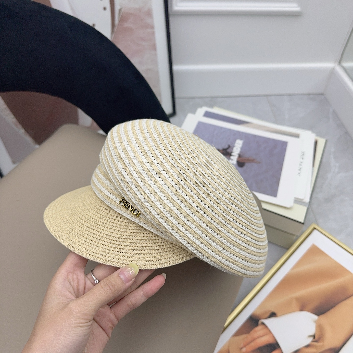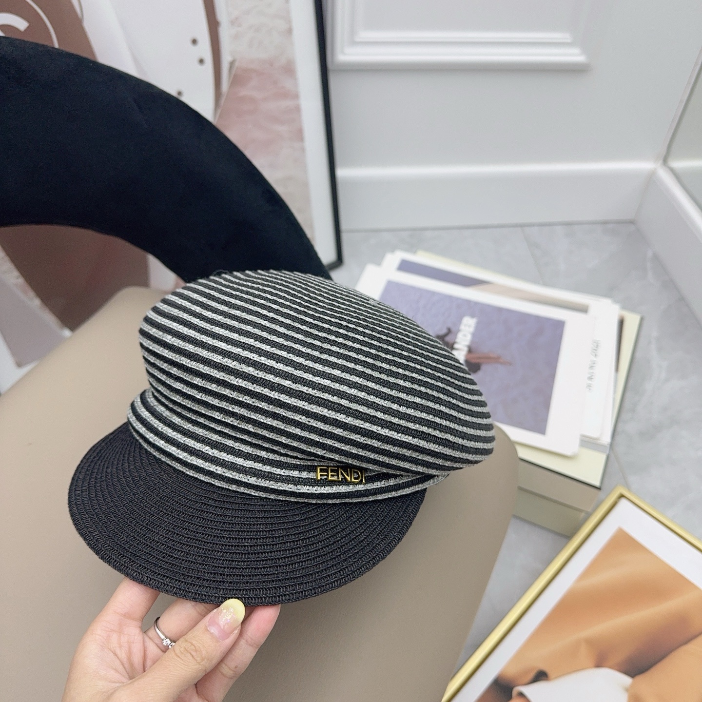 這款帽子是AAAAA 1:1 質量(非常棒). 使用了和原版一模一樣的材料. 商標部分也保持了和芬迪/Fendi一樣. 圖片拍攝是實物帽子拍攝, 您所收到的實物保證和我們圖片一模一樣.