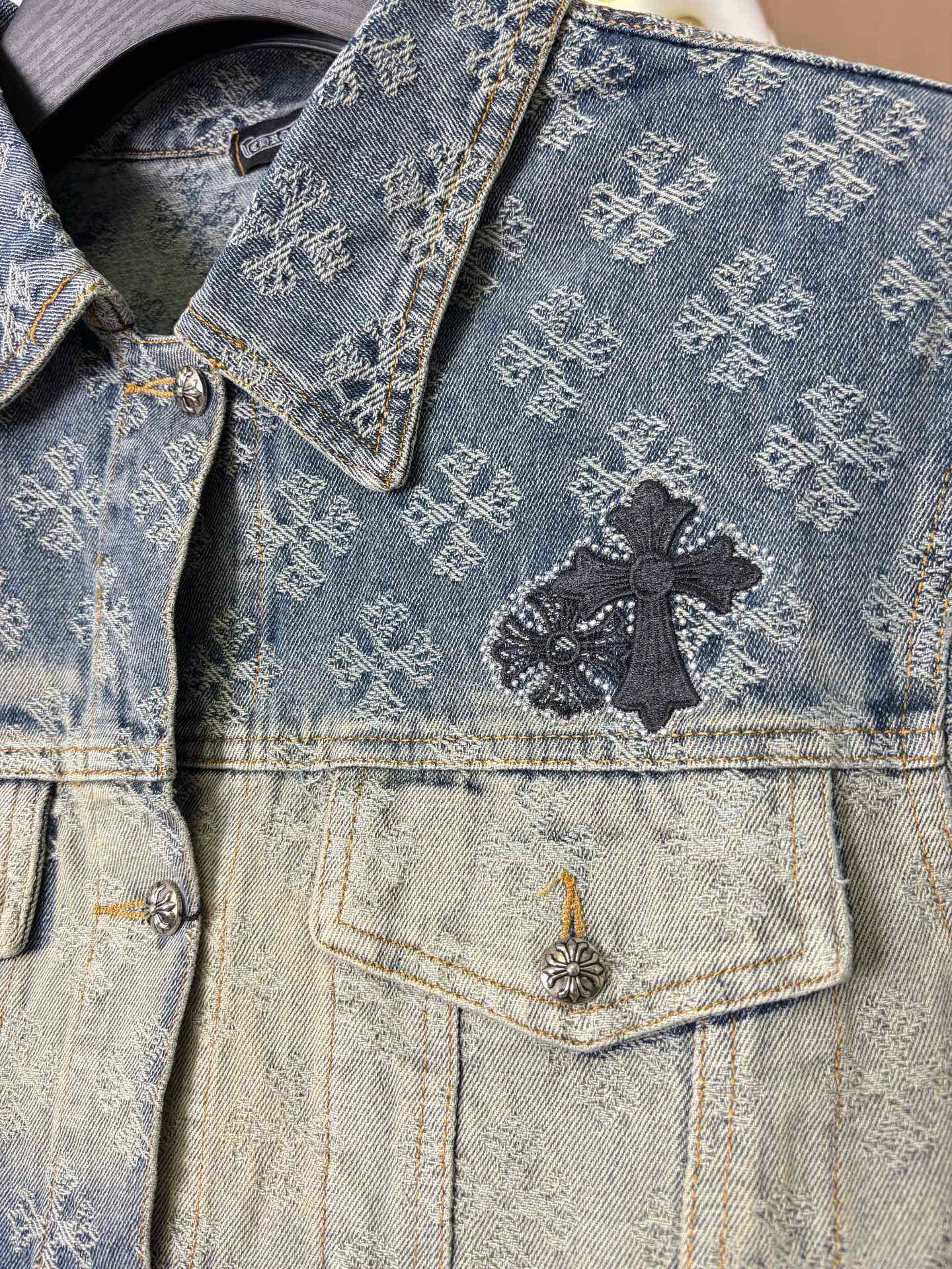 這款衣服是AAAAA 1:1 質量(非常棒). 使用了和原版一模一樣的材料. 商標部分也保持了和鉻心/Chrome Hearts一樣. 圖片拍攝是實物衣服拍攝, 您所收到的實物保證和我們圖片一模一樣.