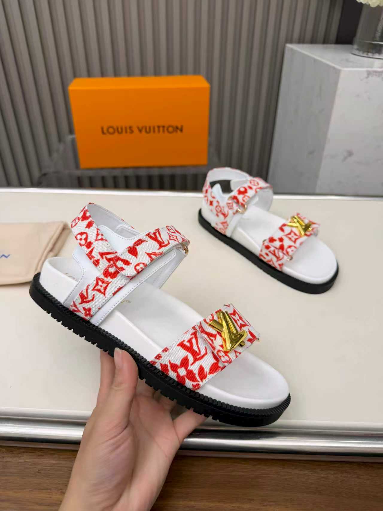 這款鞋子是AAAAA 1:1 質量(非常棒). 使用了和原版一模一樣的材料. 商標部分也保持了和路易威登/Louis Vuitton一樣. 圖片拍攝是實物鞋子拍攝, 您所收到的實物保證和我們圖片一模一樣.