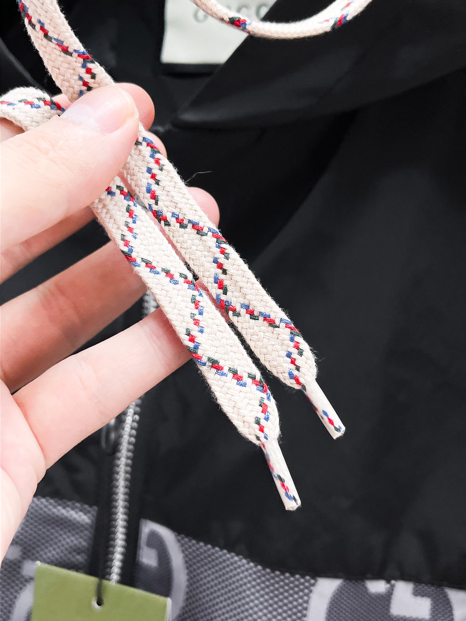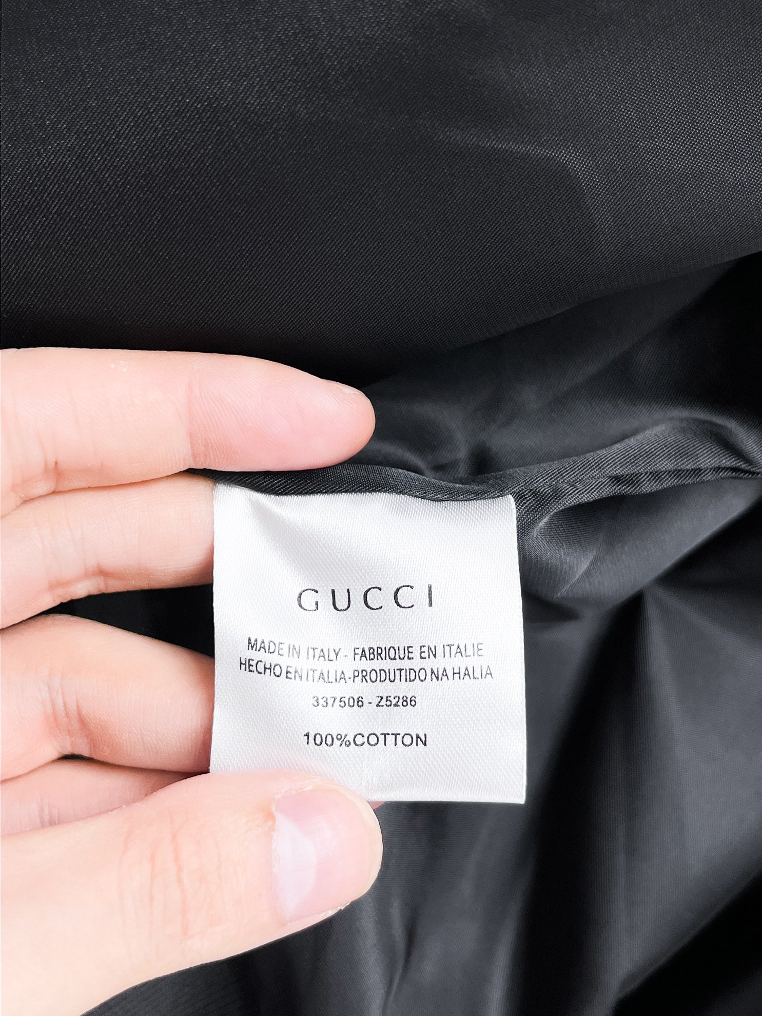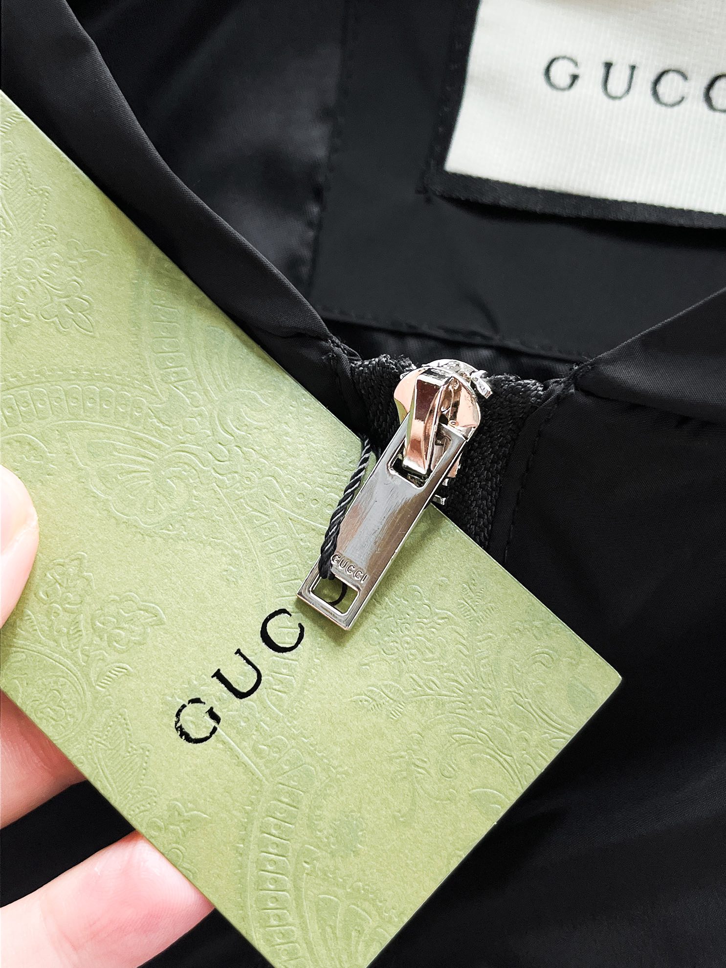 這款衣服是AAAAA 1:1 質量(非常棒). 使用了和原版一模一樣的材料. 商標部分也保持了和古奇/Gucci一樣. 圖片拍攝是實物衣服拍攝, 您所收到的實物保證和我們圖片一模一樣.