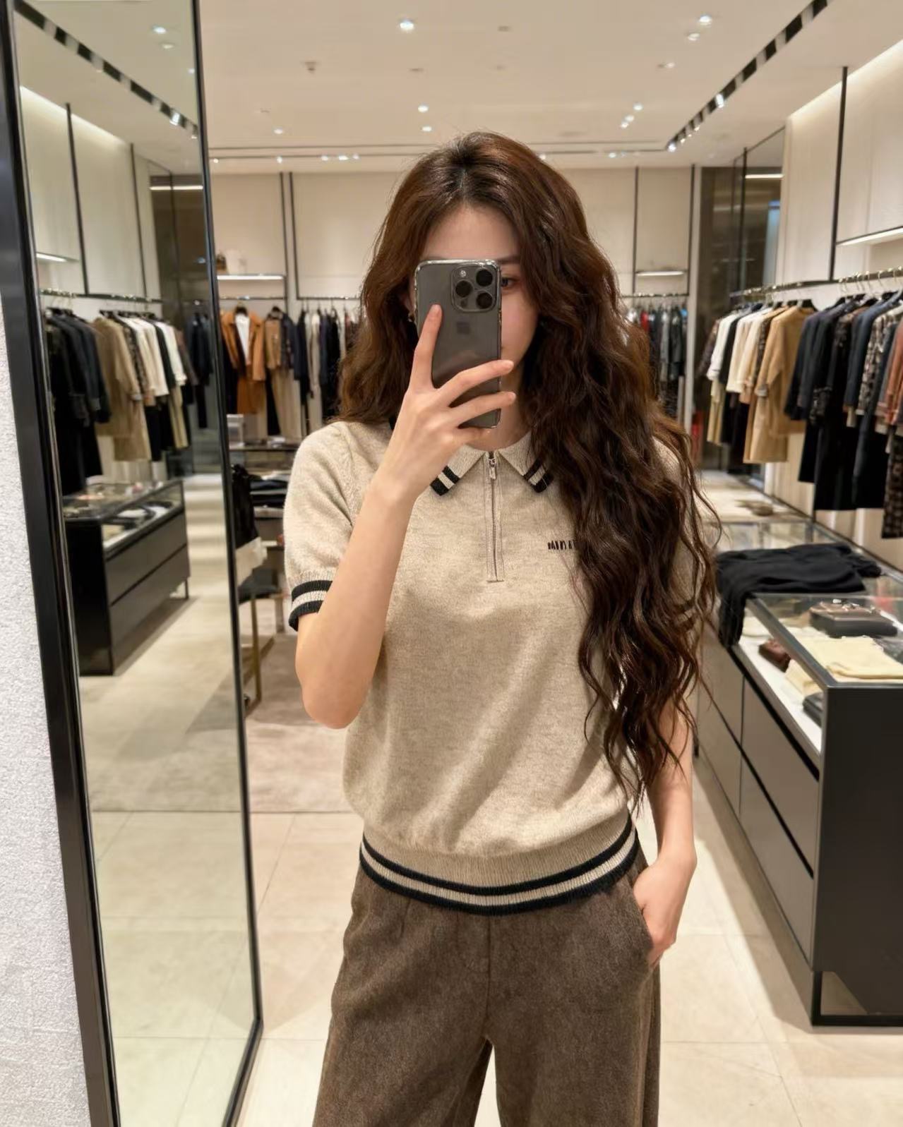 這款衣服是AAAAA 1:1 質量(非常棒). 使用了和原版一模一樣的材料. 商標部分也保持了和繆繆/Miu Miu一樣. 圖片拍攝是實物衣服拍攝, 您所收到的實物保證和我們圖片一模一樣.