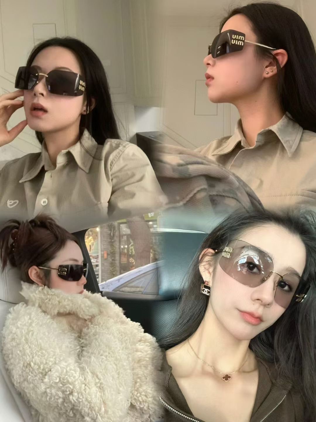 這款太陽眼鏡是AAAAA 1:1 質量(非常棒). 使用了和原版一模一樣的材料. 商標部分也保持了和繆繆/Miu Miu一樣. 圖片拍攝是實物太陽眼鏡拍攝, 您所收到的實物保證和我們圖片一模一樣.