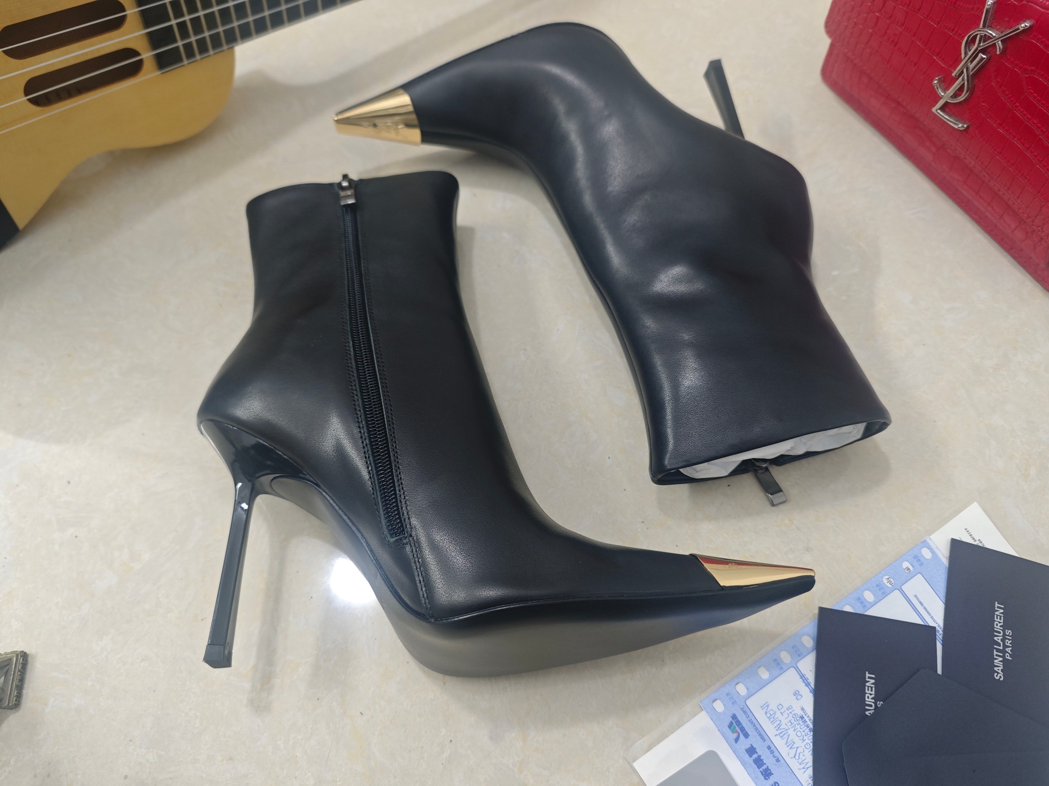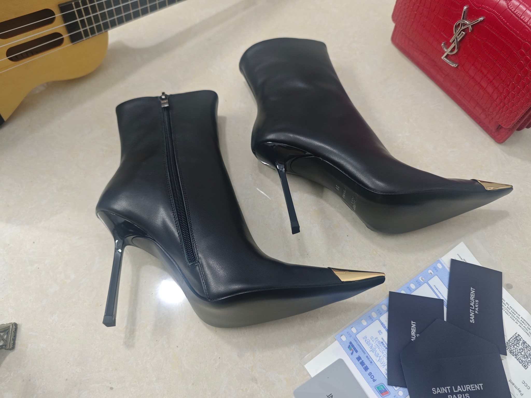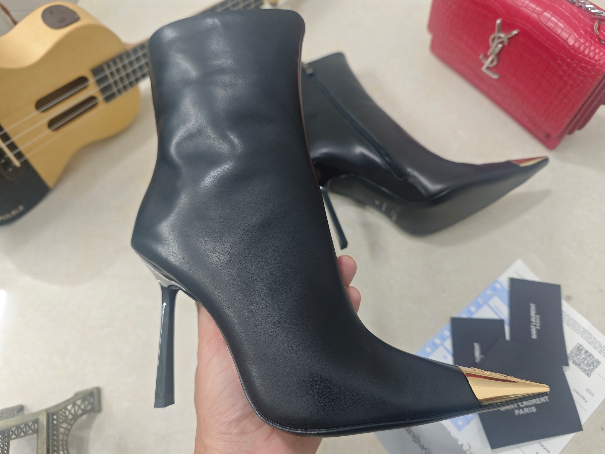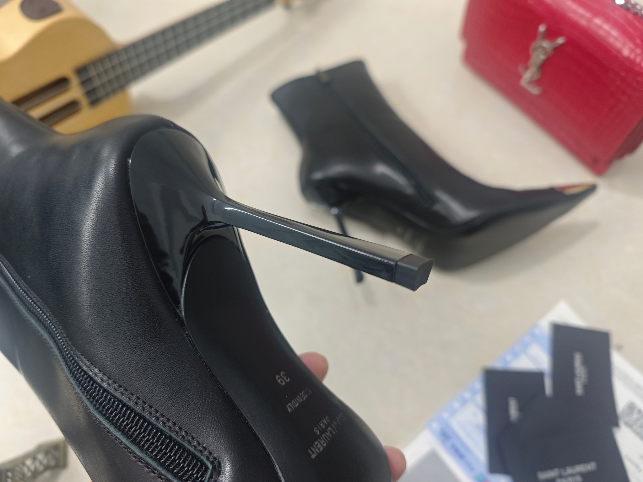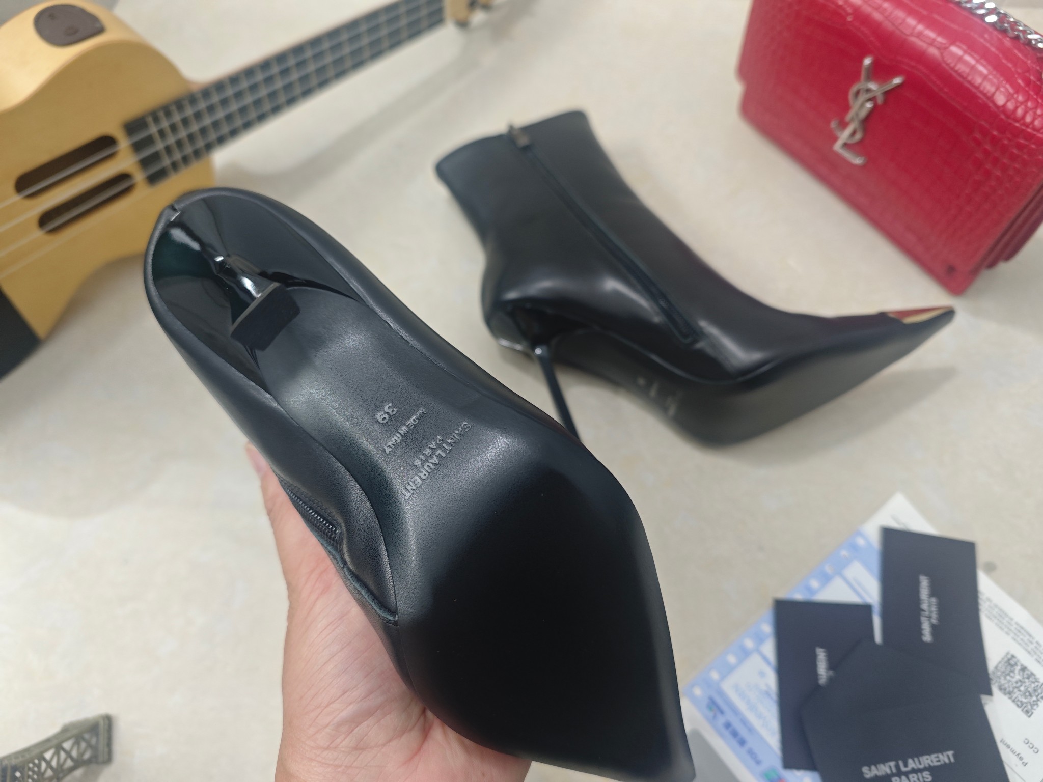 這款鞋子是AAAAA 1:1 質量(非常棒). 使用了和原版一模一樣的材料. 商標部分也保持了和聖羅蘭/Saint Laurent一樣. 圖片拍攝是實物鞋子拍攝, 您所收到的實物保證和我們圖片一模一樣.